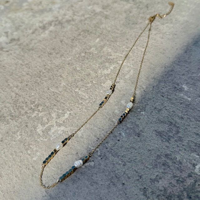 stainless Pearl block necklace