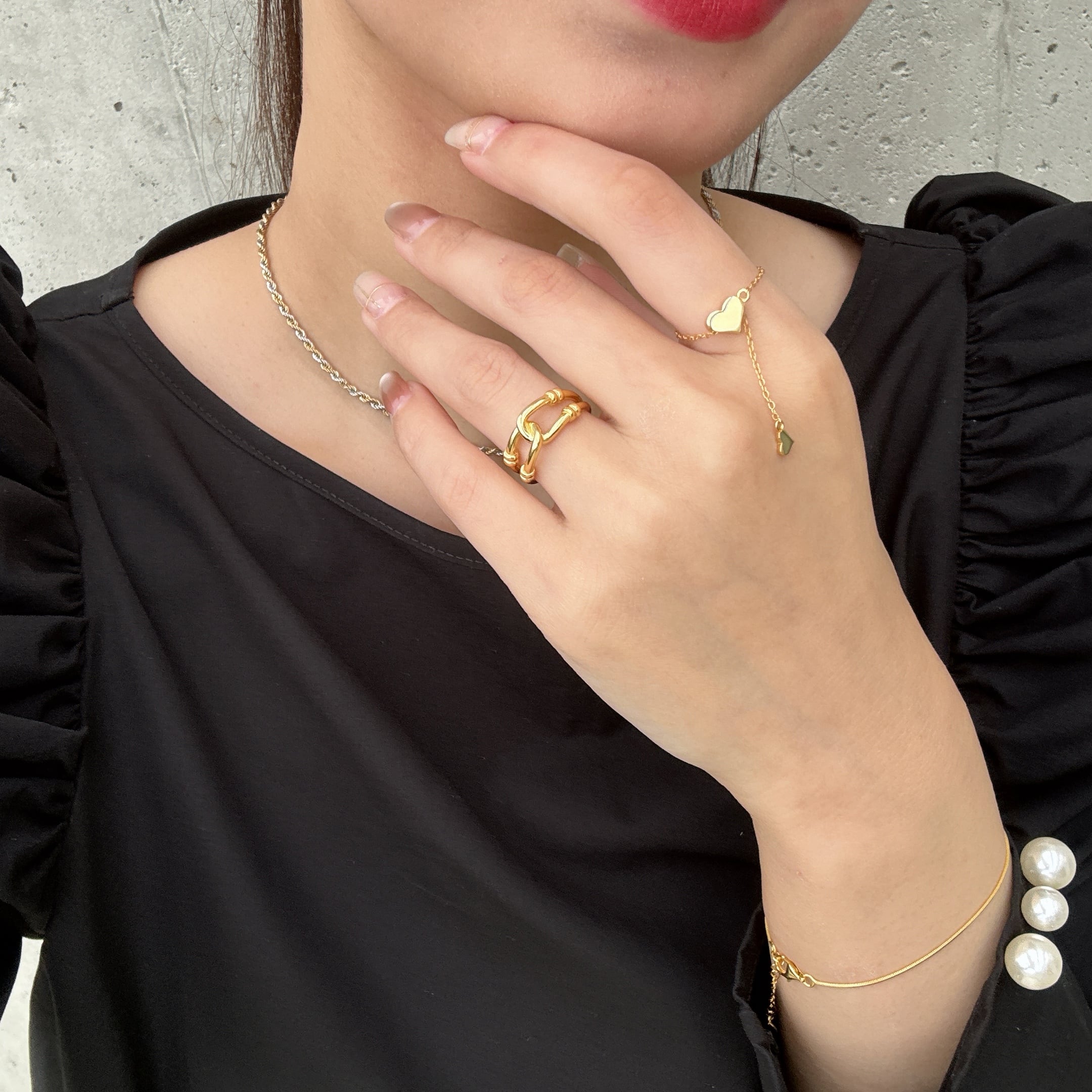 チェーンを引っ張ることによってサイズの調整が可能なので、どの指にもつけることができる優秀アイテムです!