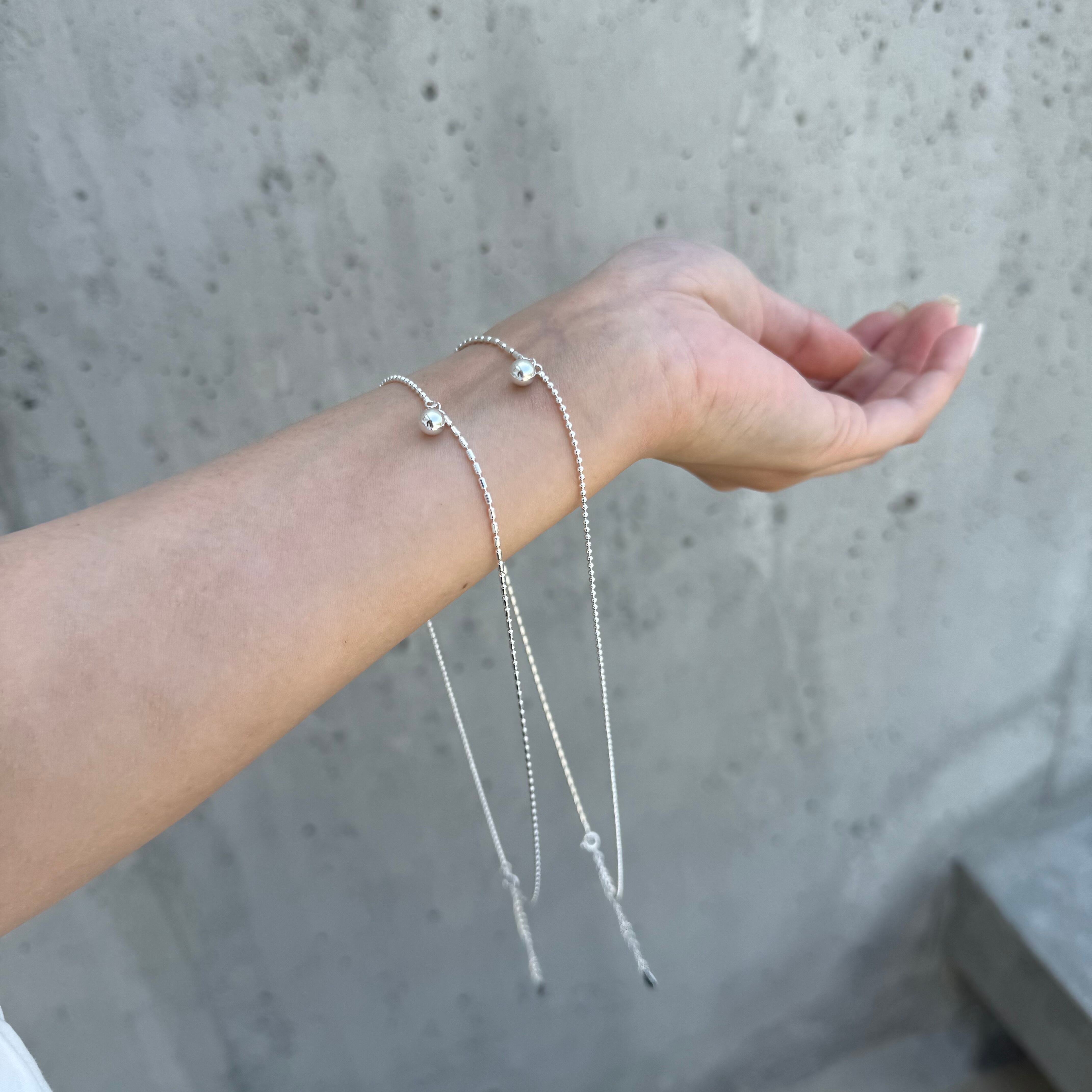 左右でデザインの異なるチェーンによって動きを楽しむことができるアイテムです