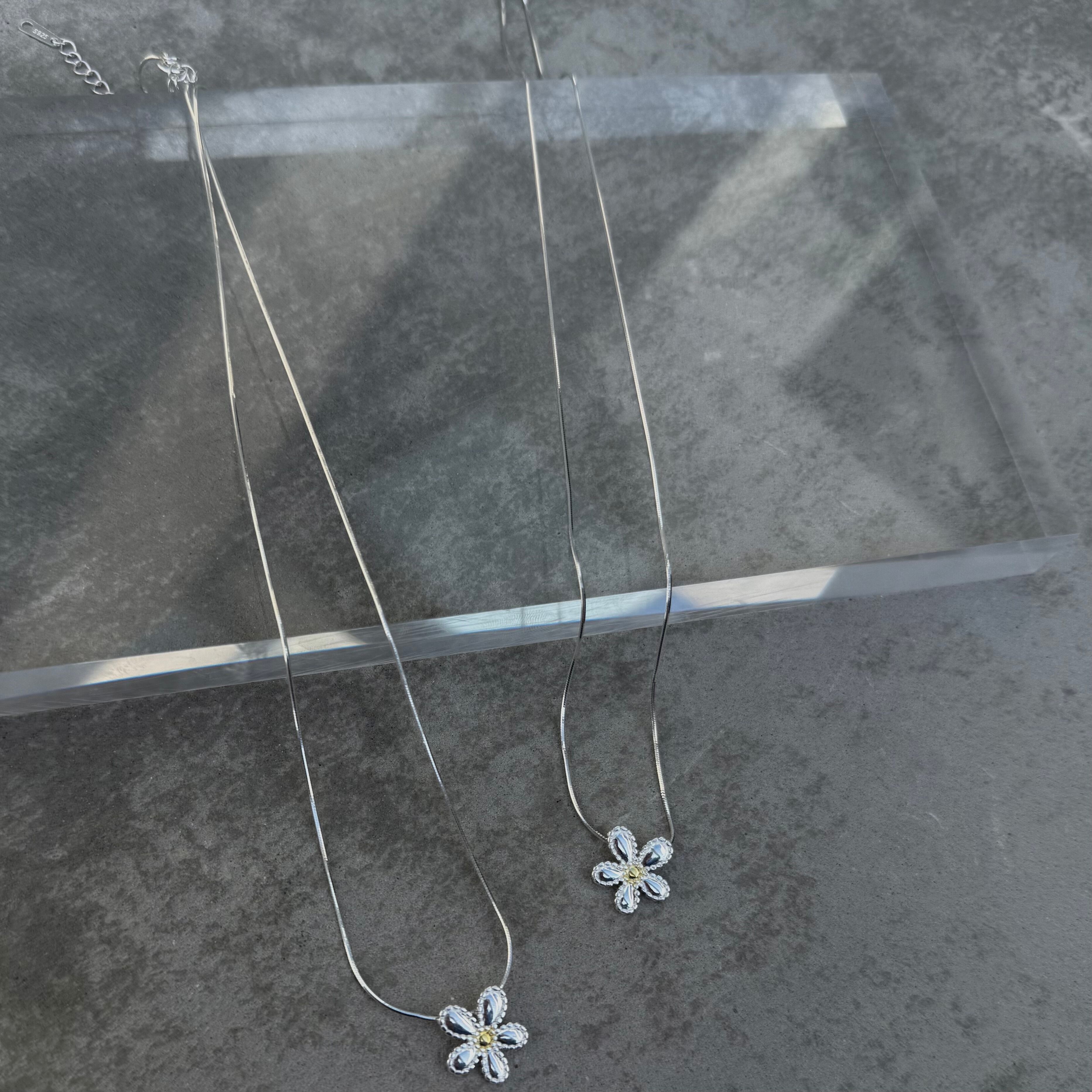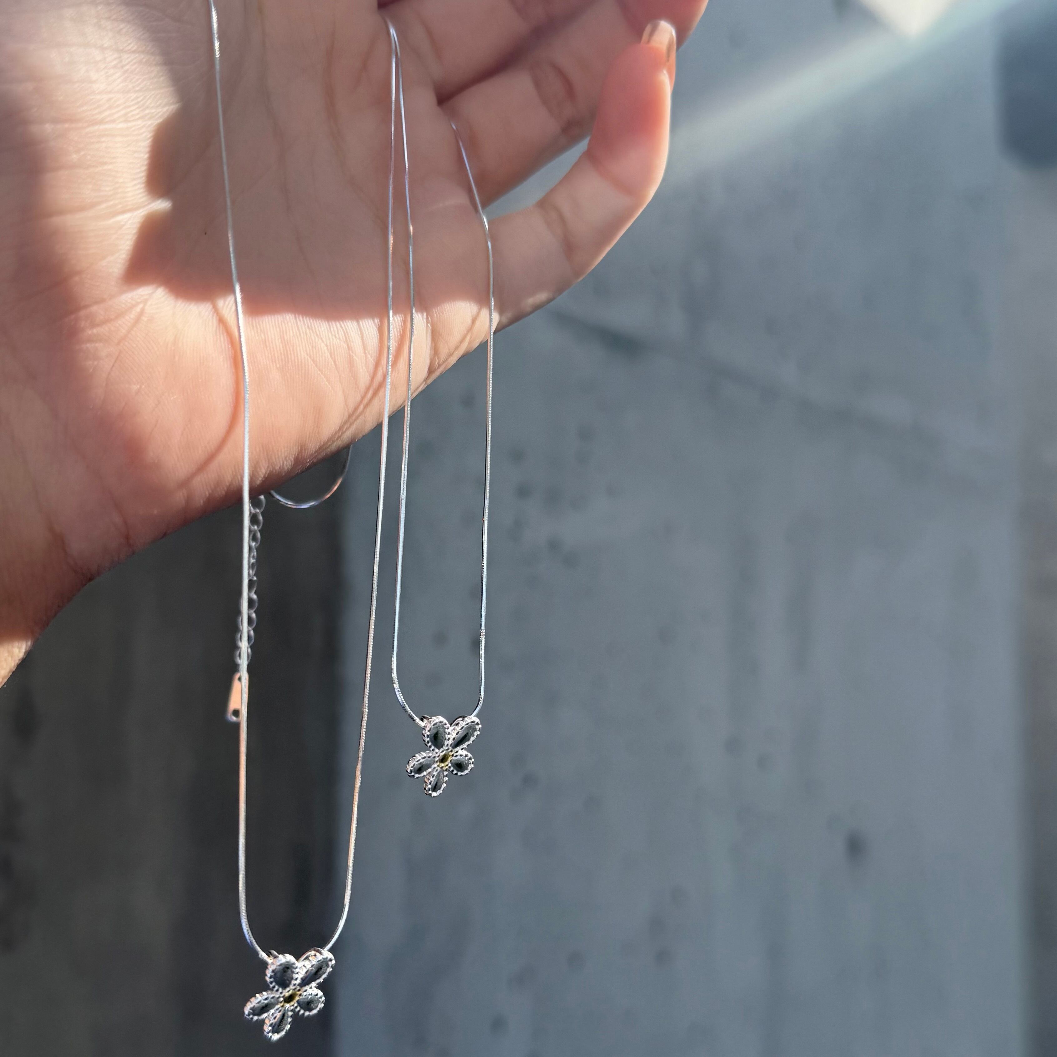 上品なスネークチェーンとフラワーチャームが魅力的なネックレス