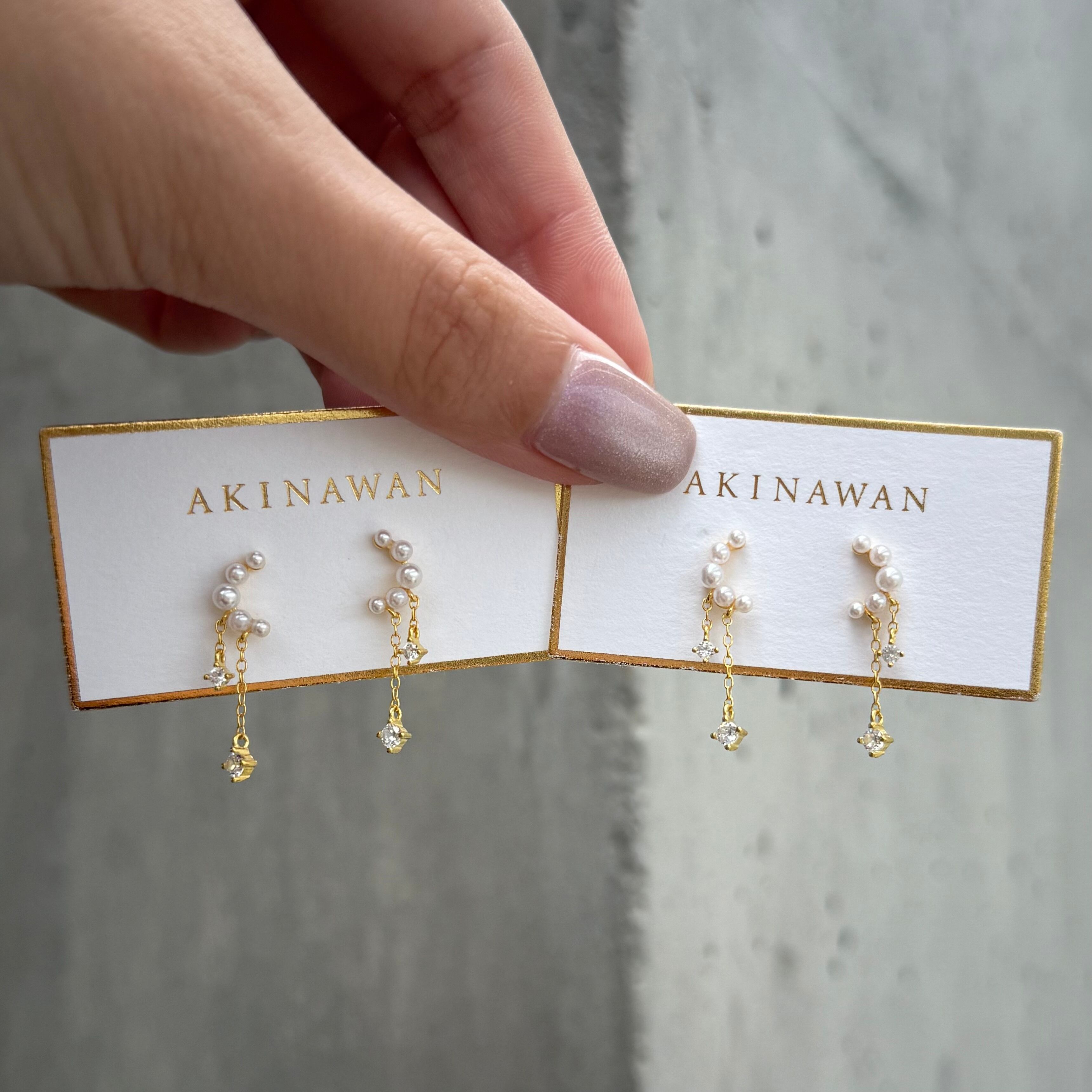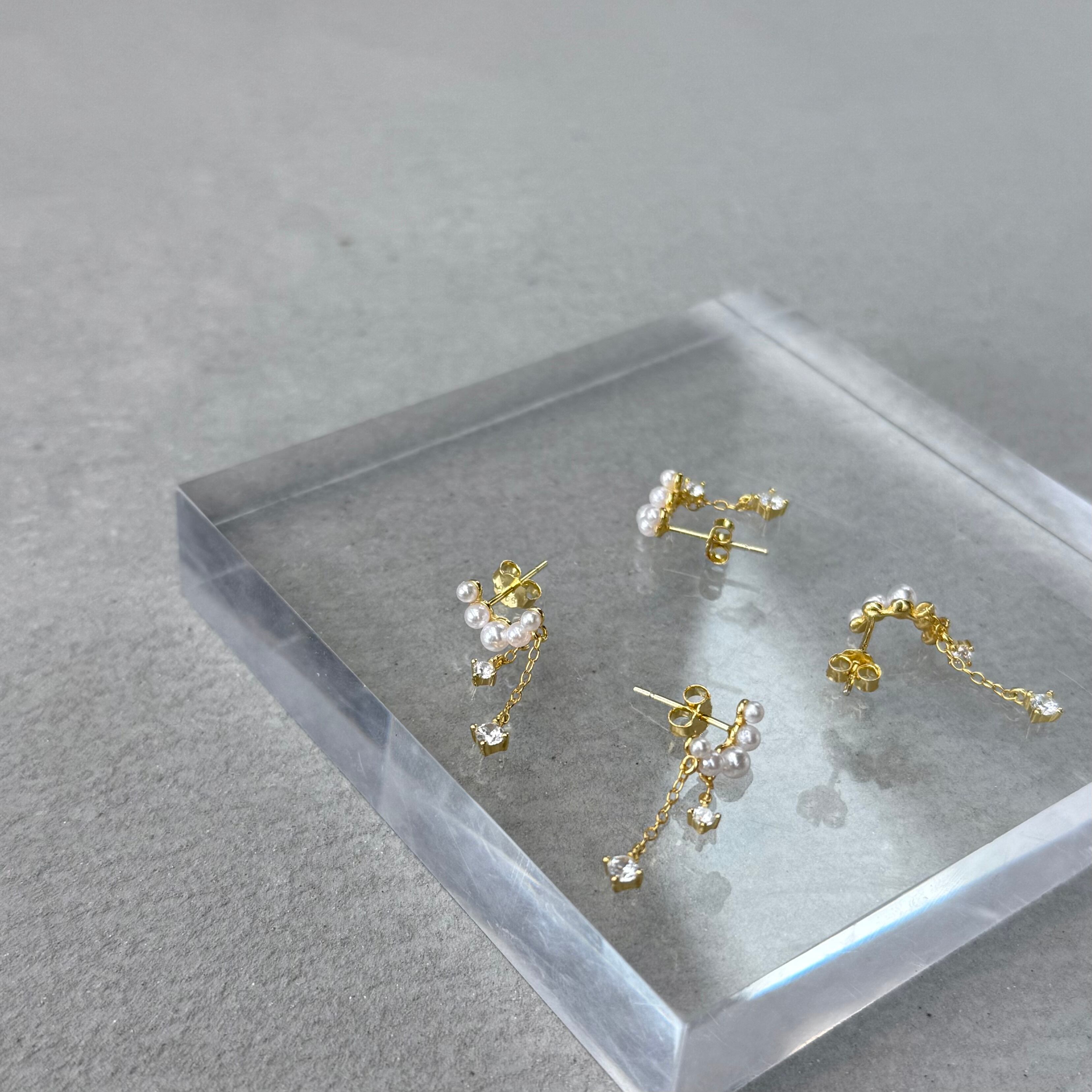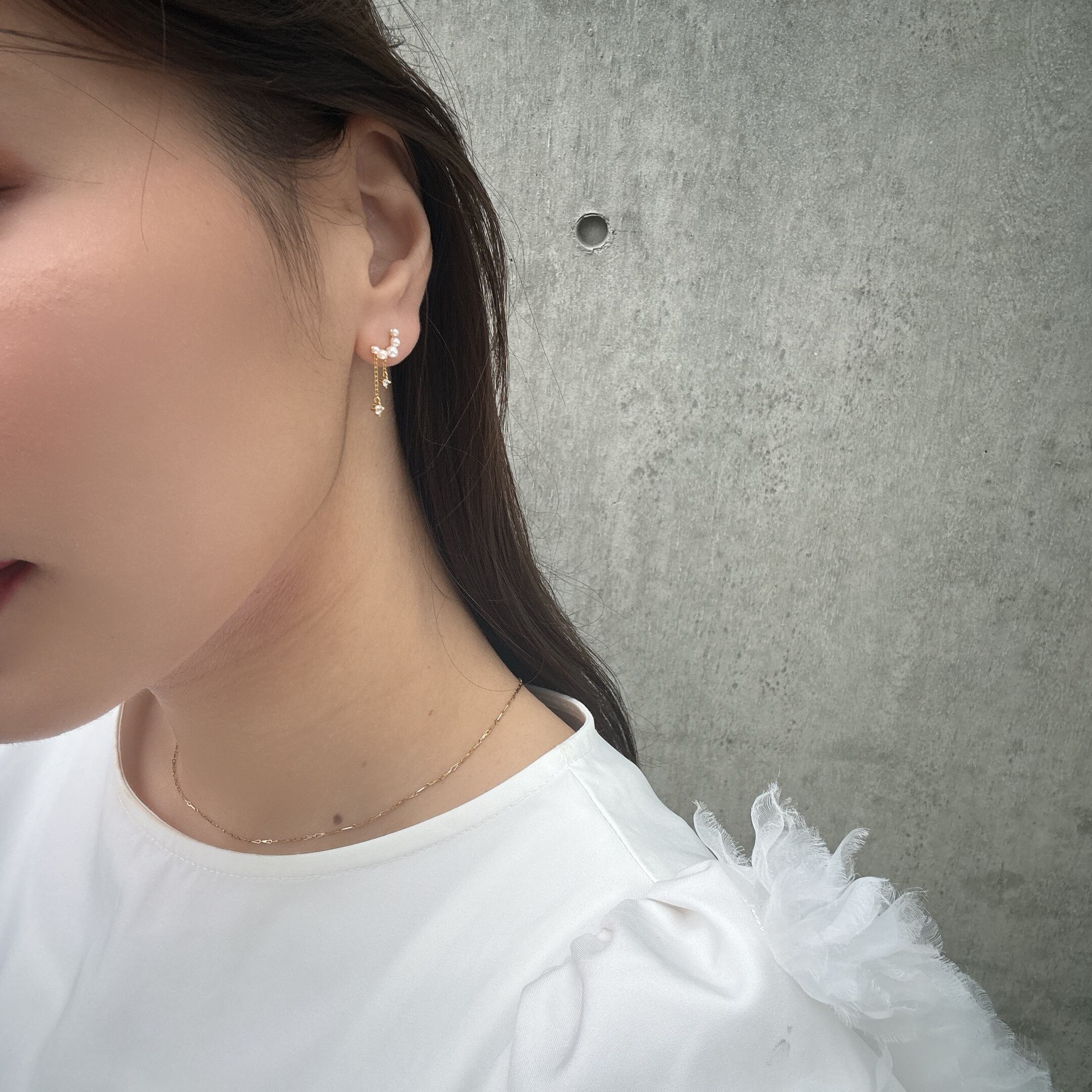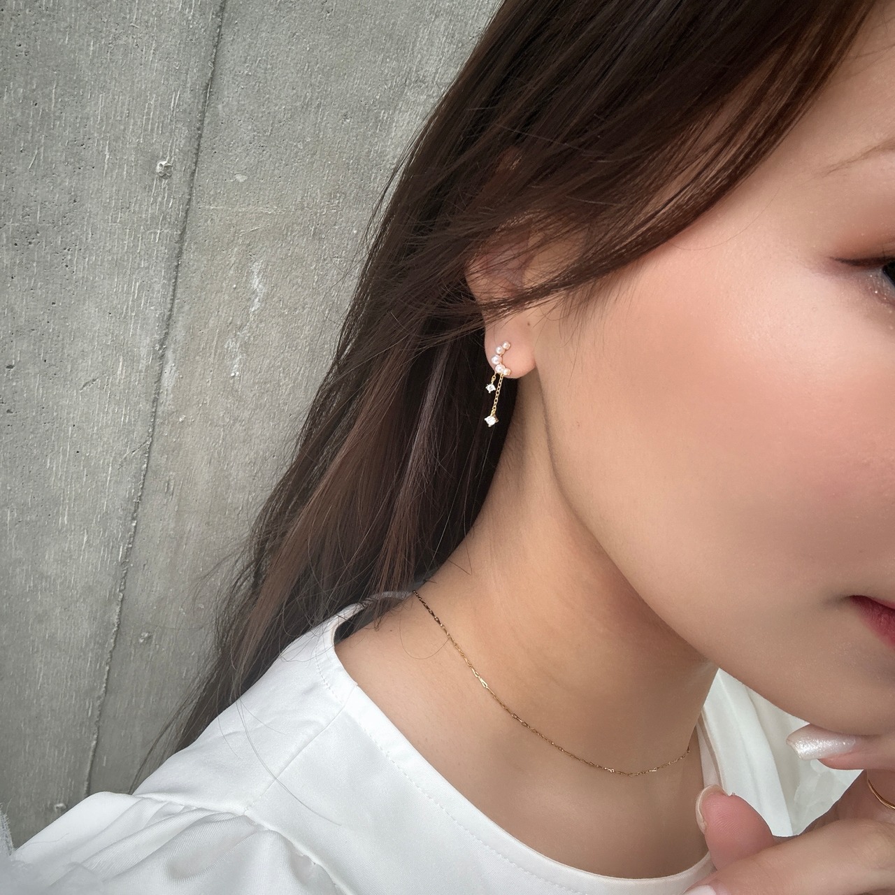 月モチーフの下にはパールとジルコニアがゆらっと揺れる大人可愛いピアス