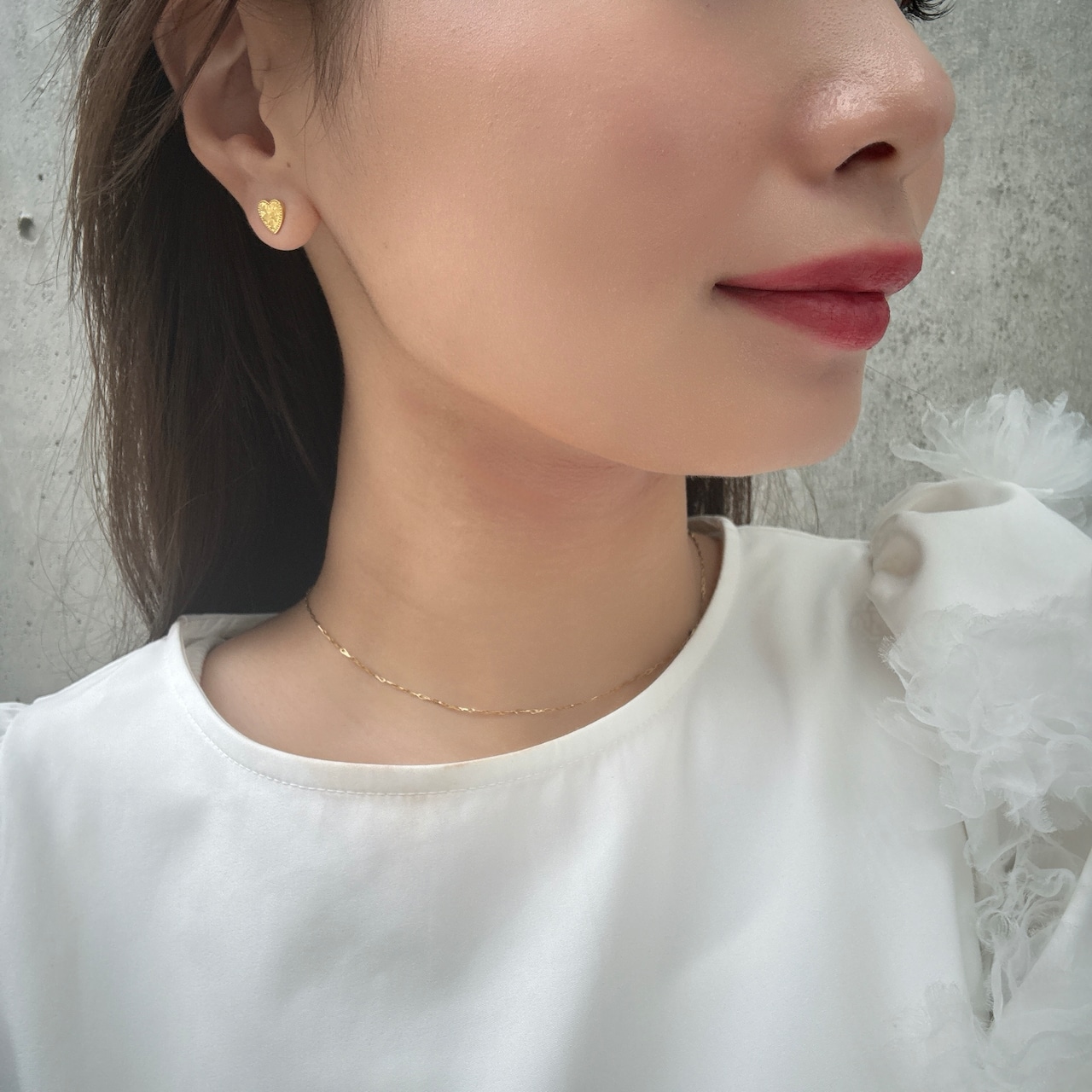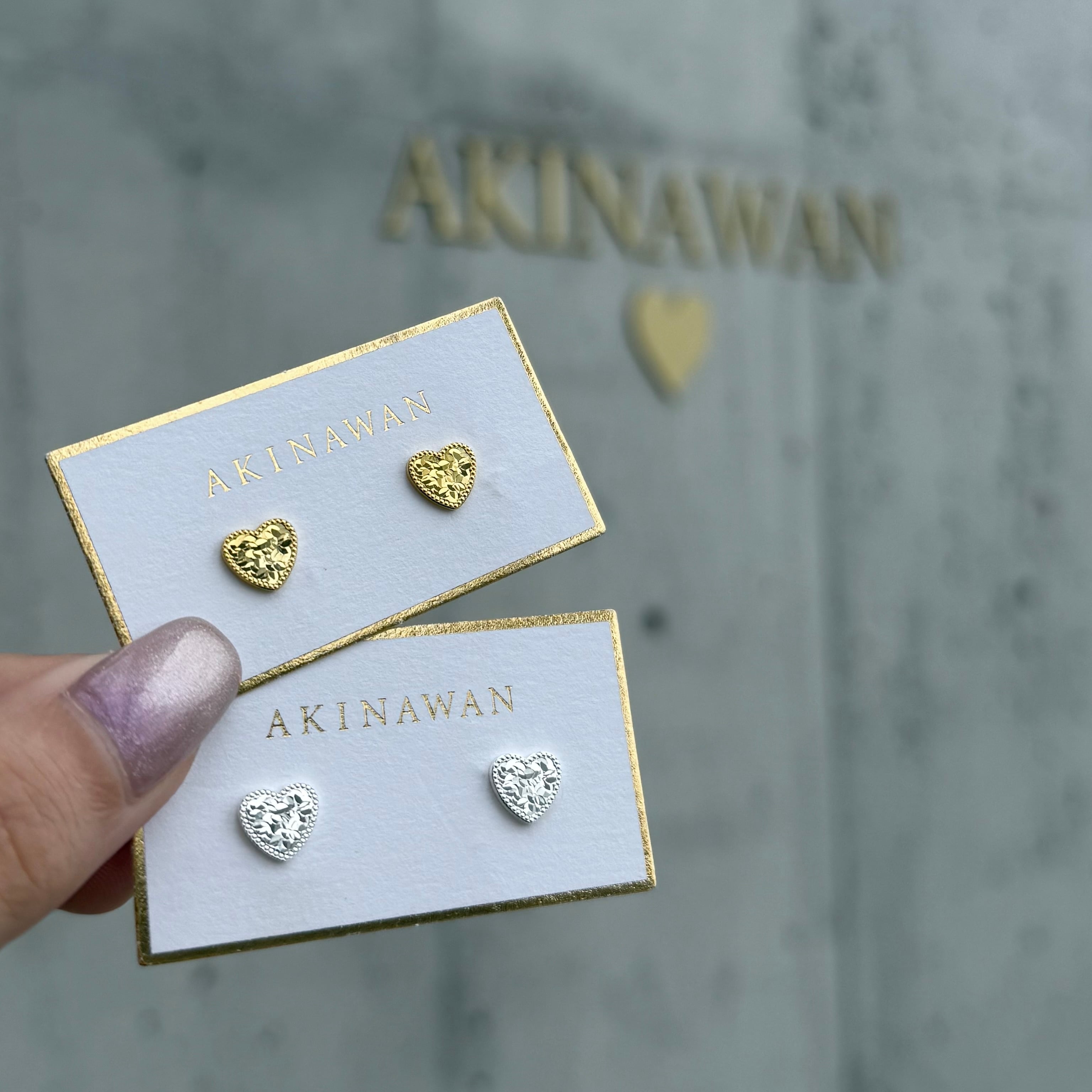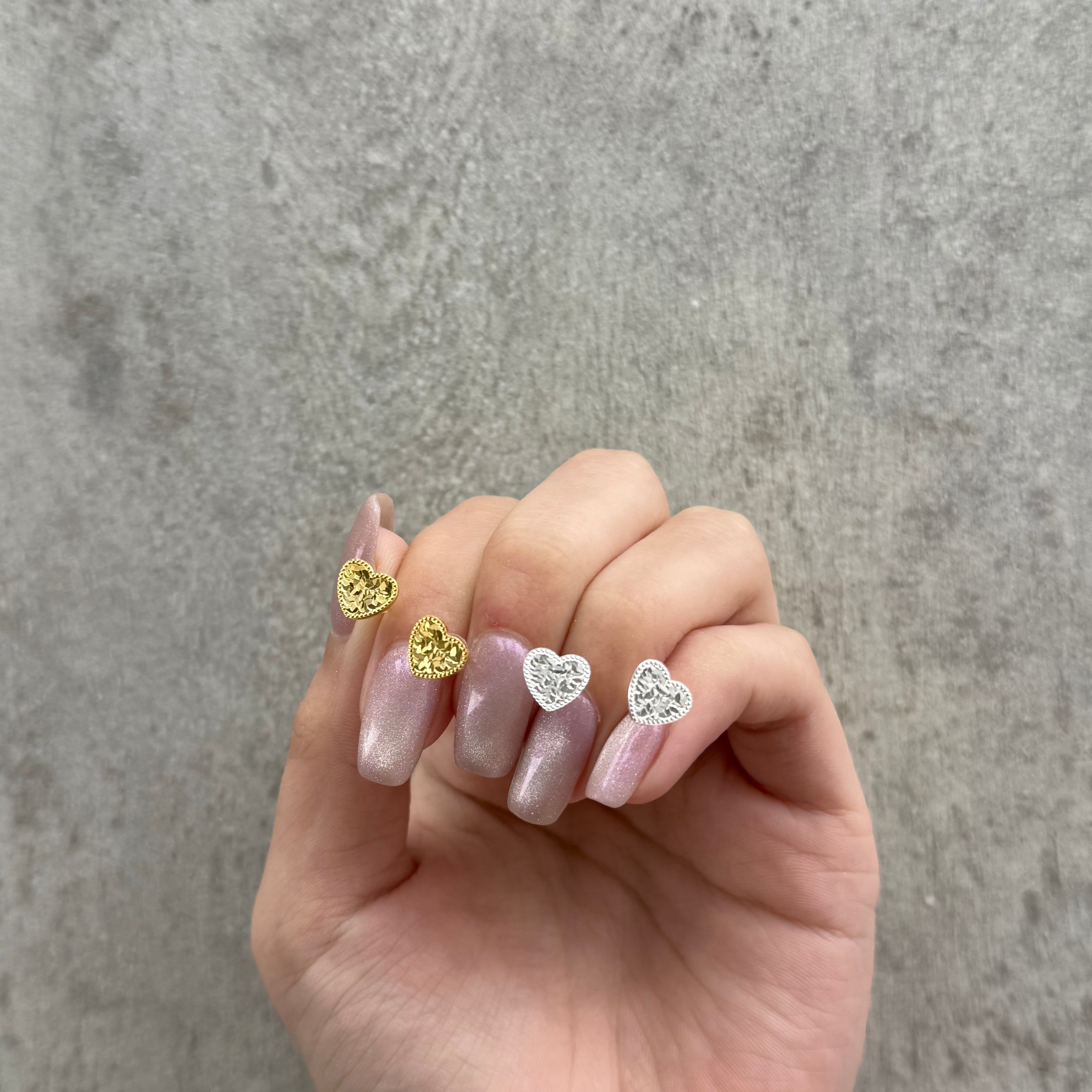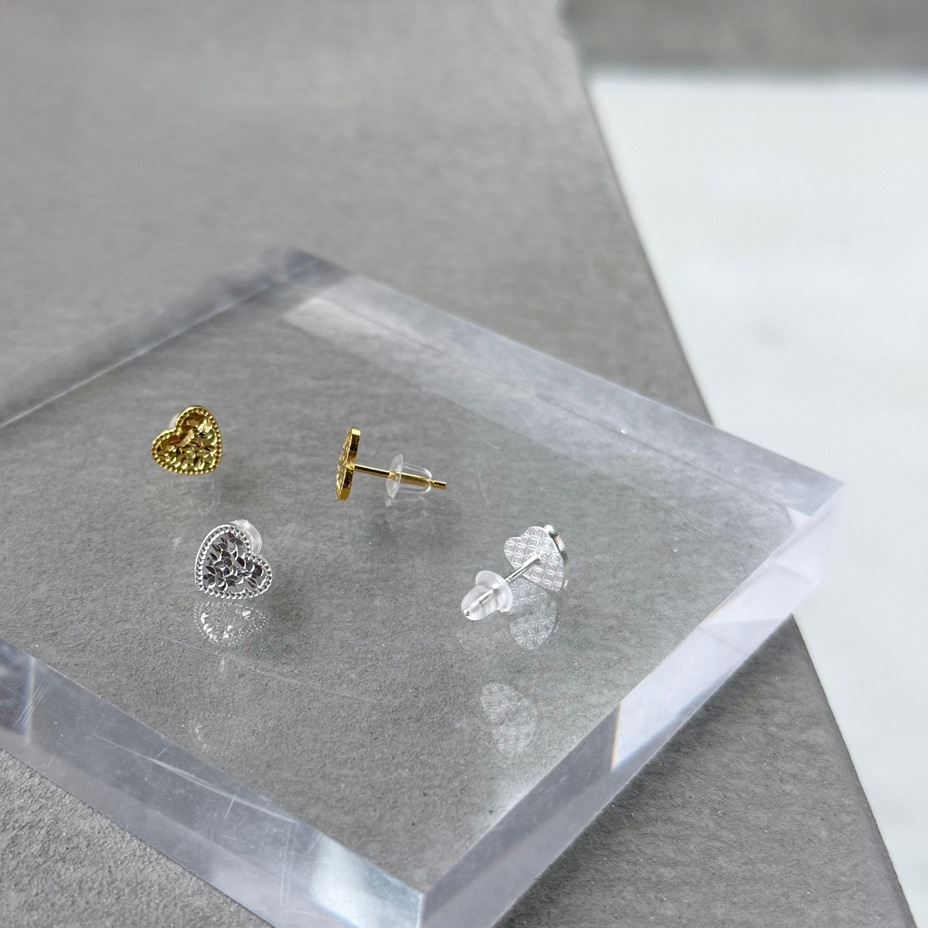 光の反射で表面の凹凸がキラキラと輝くハートピアス