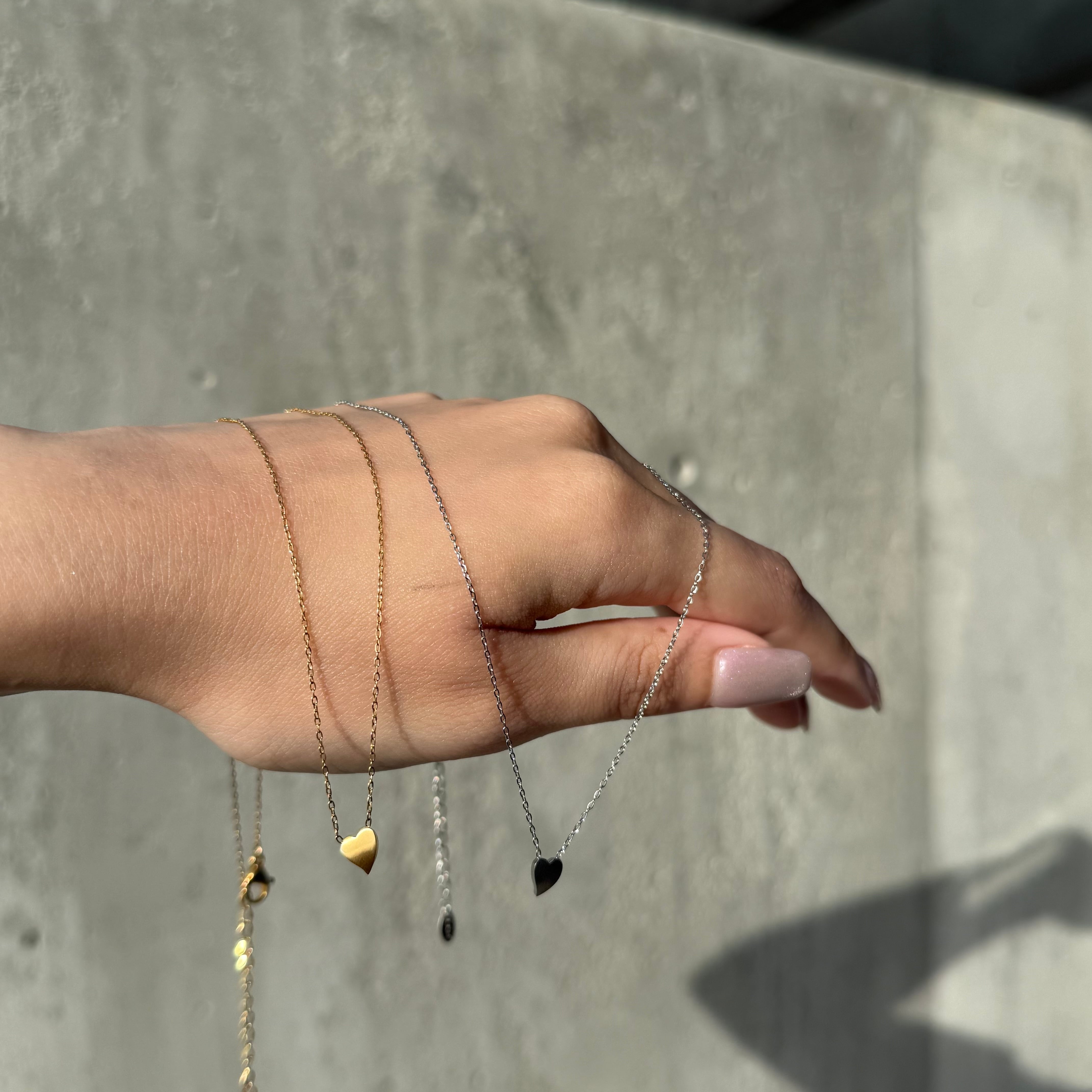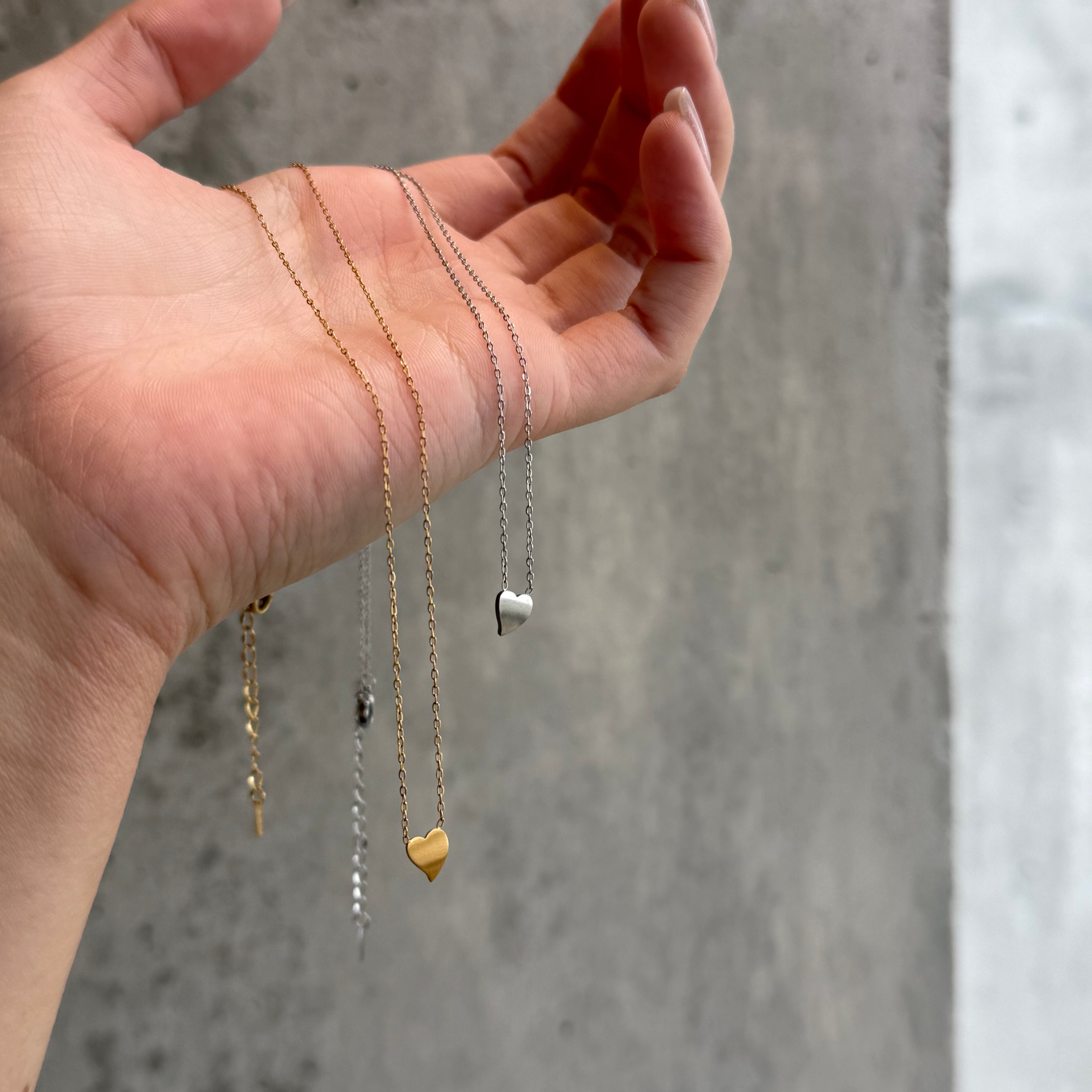 細めな肌馴染みの良いチェーンと、シャープなハートが甘くなりすぎず、大人レディにオススメなアイテムです