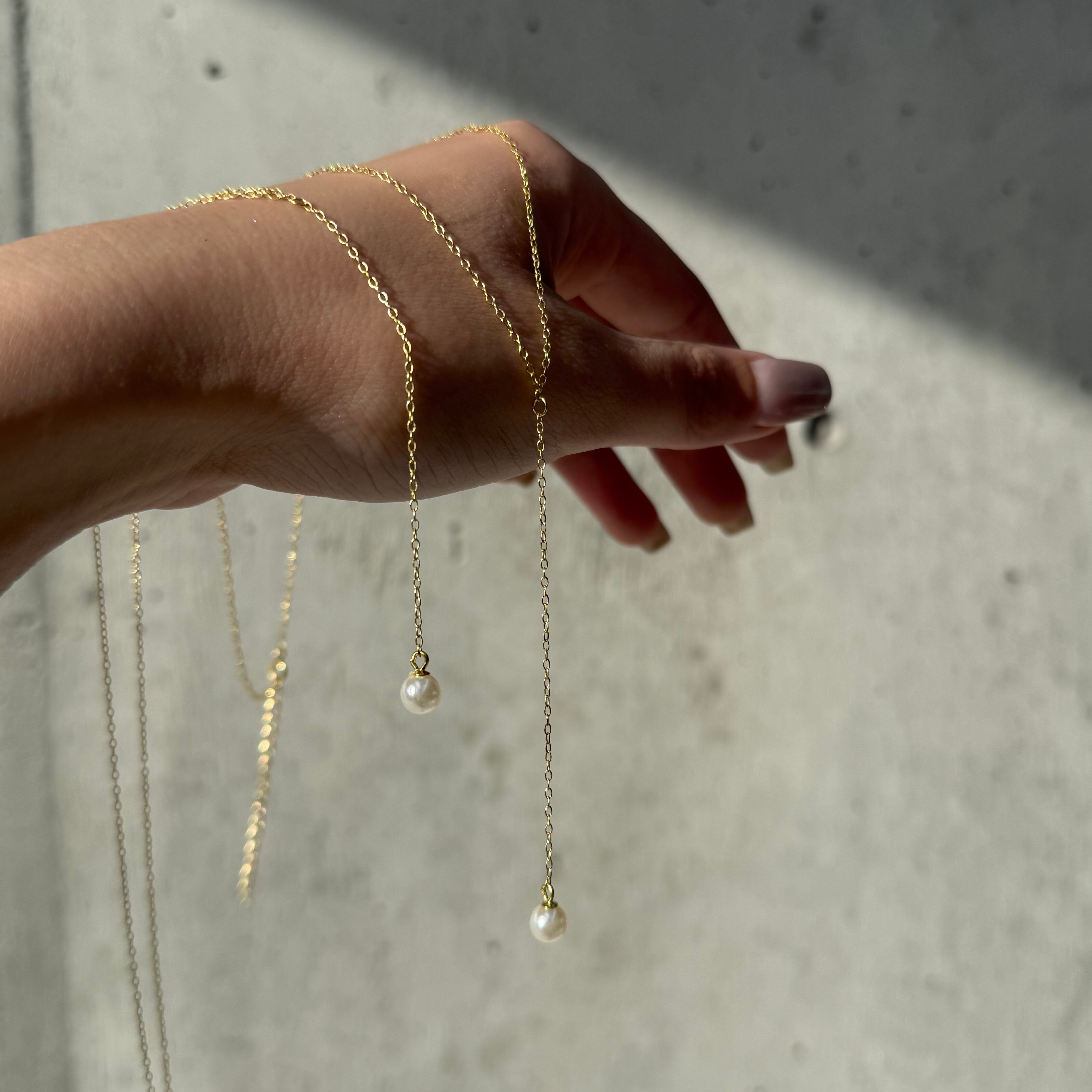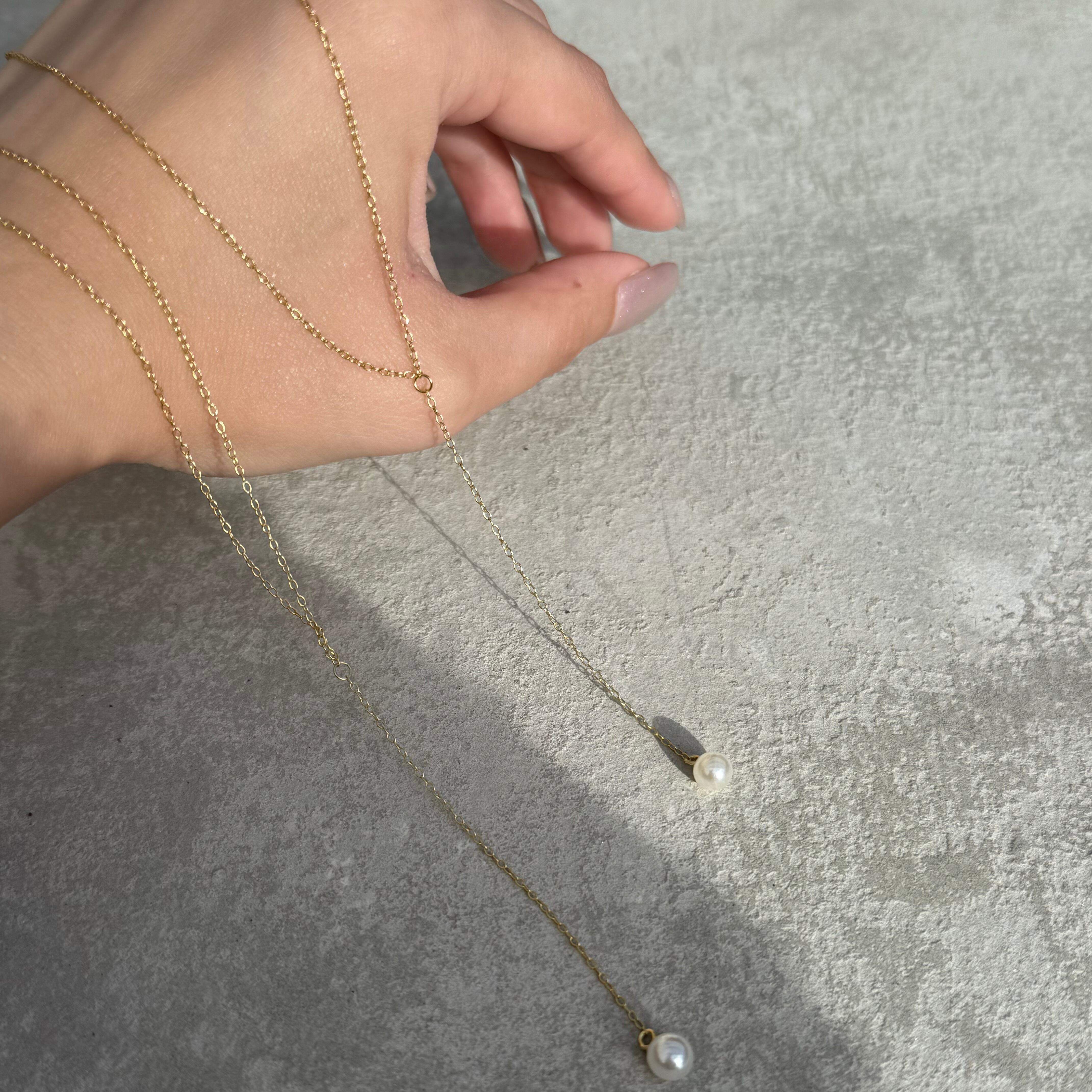 Y字チェーンにパールが施されたネックレス