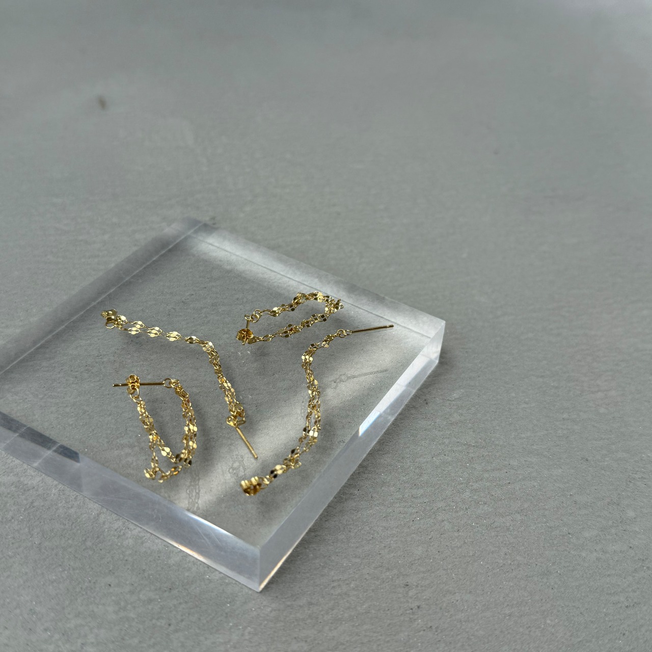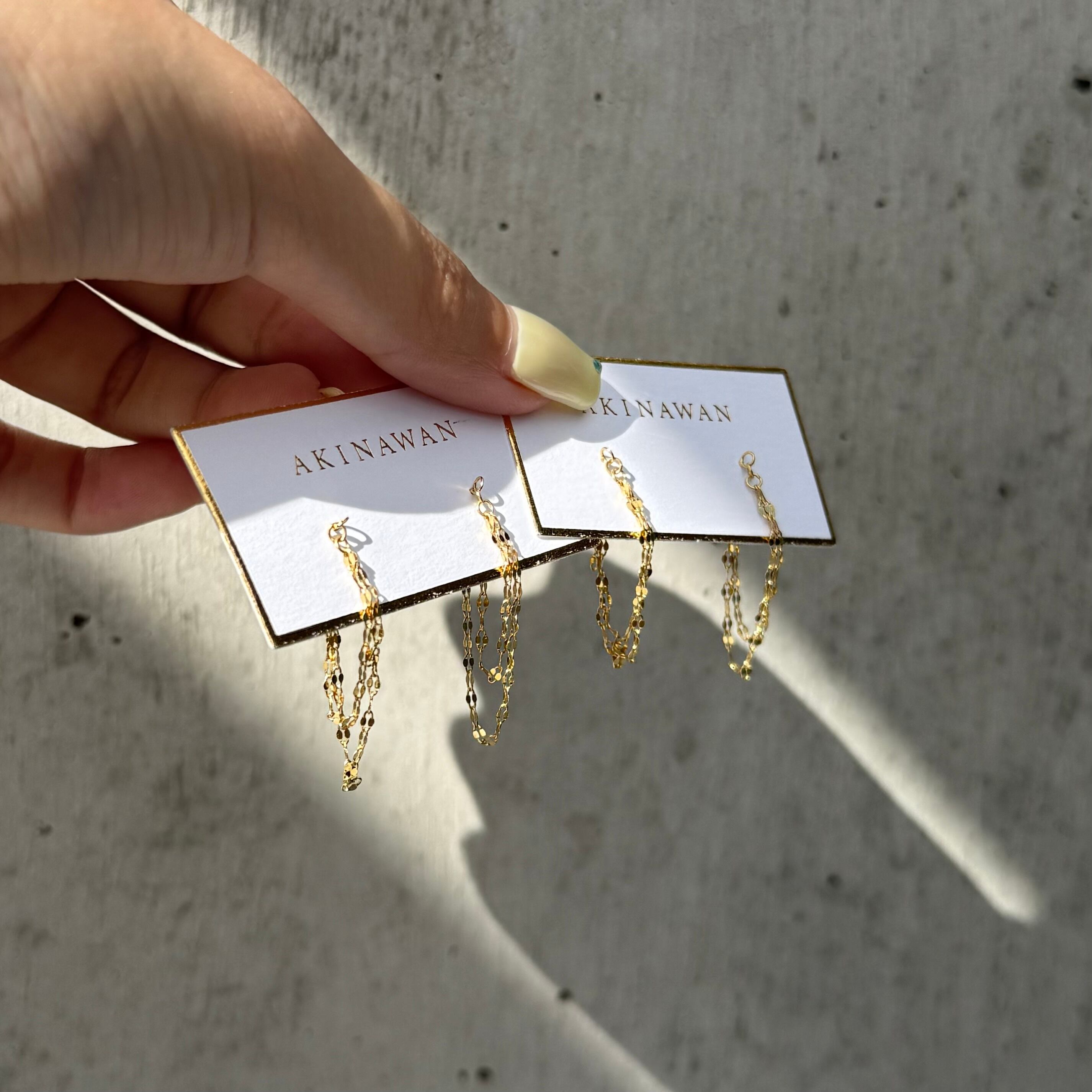 2本のチェーンが耳元で上品に揺れ動く、大人可愛いおすすめなピアスです
