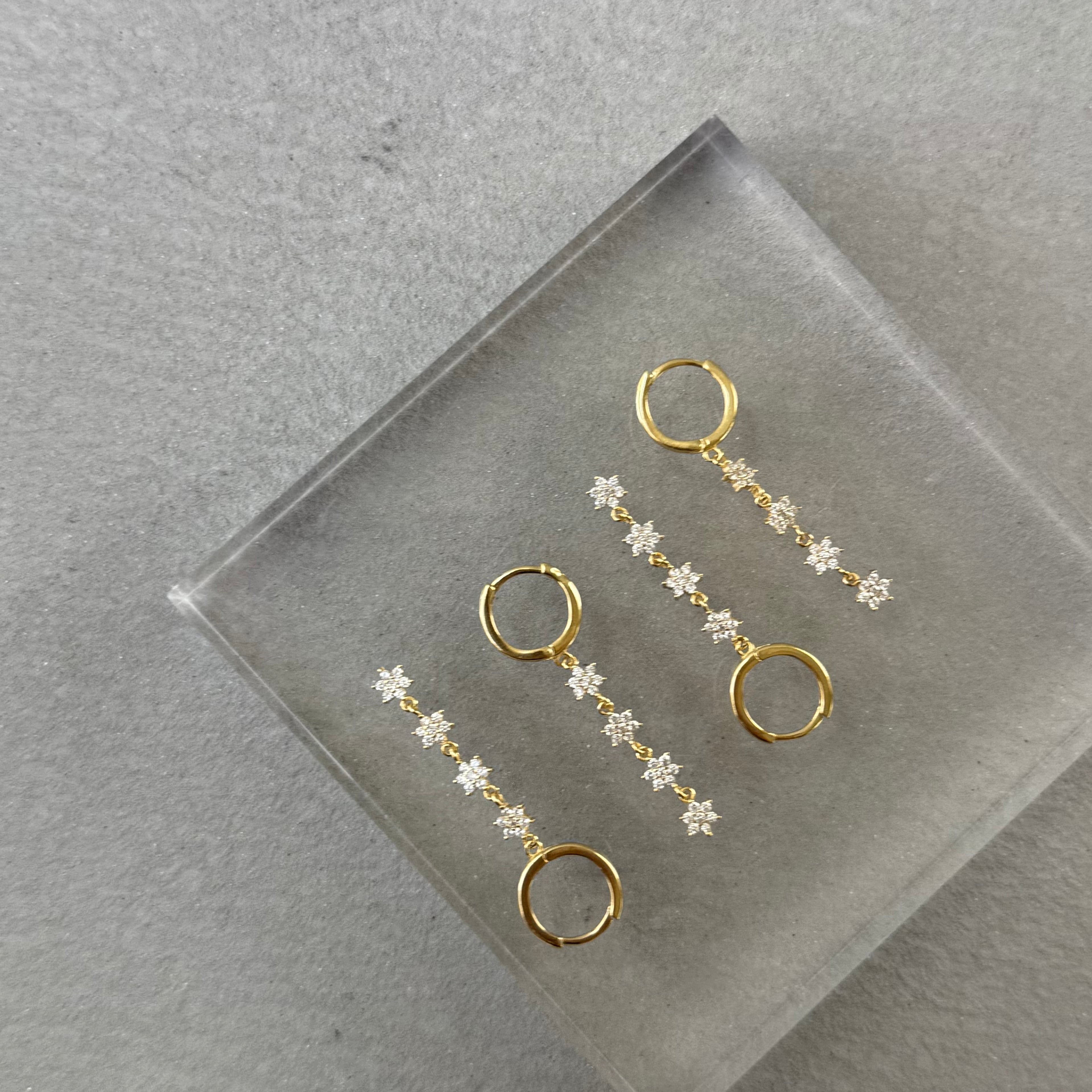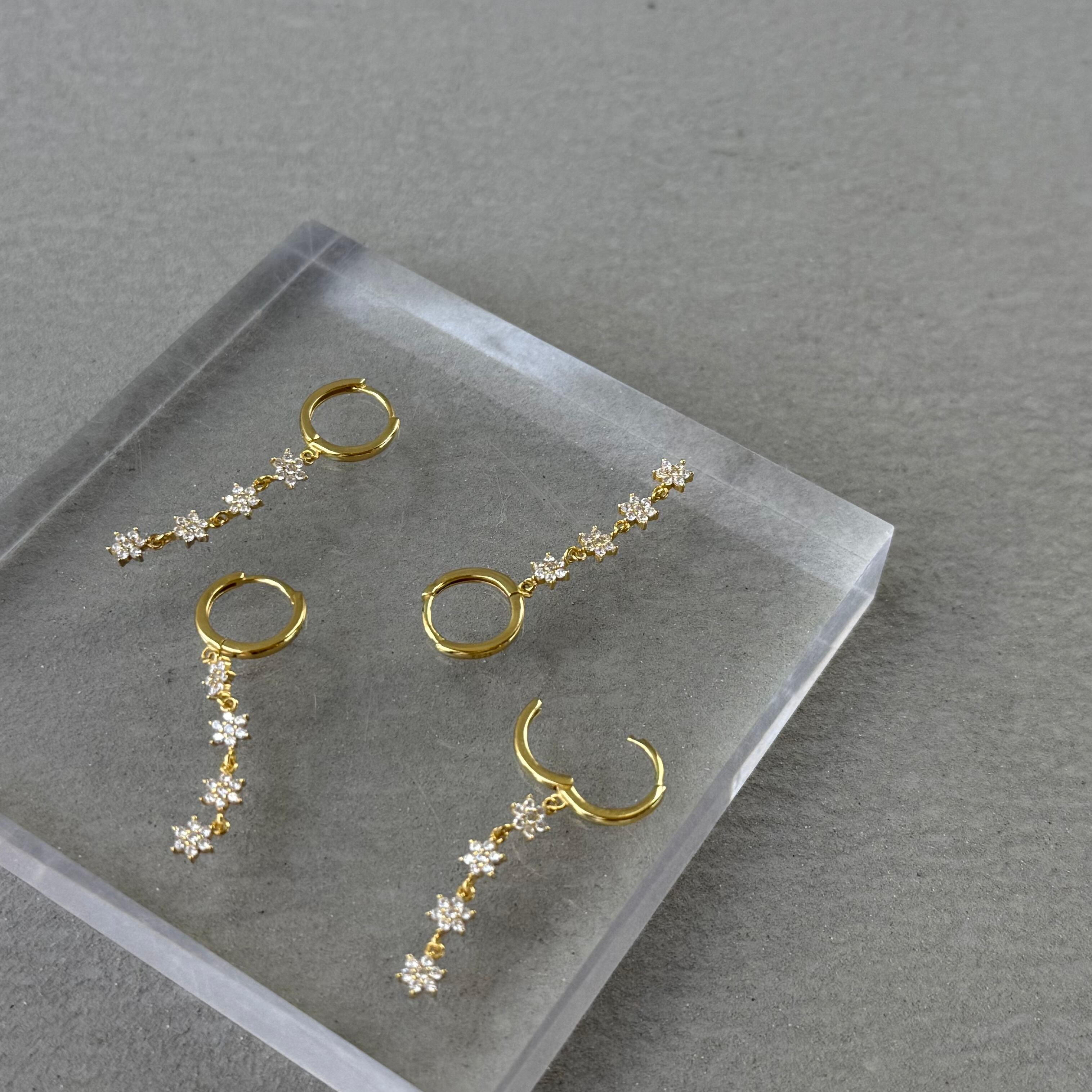 ジルコニア煌めくチャームが上品に揺れるフープピアス