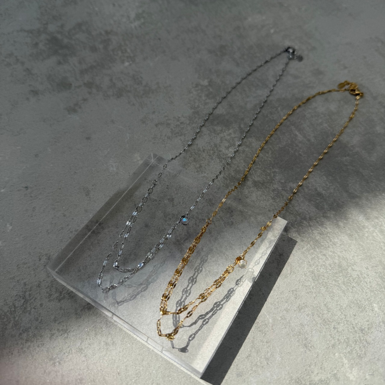 ダブルに着いたチェーンにオーロラクリスタルがポイントの大人可愛いアイテム