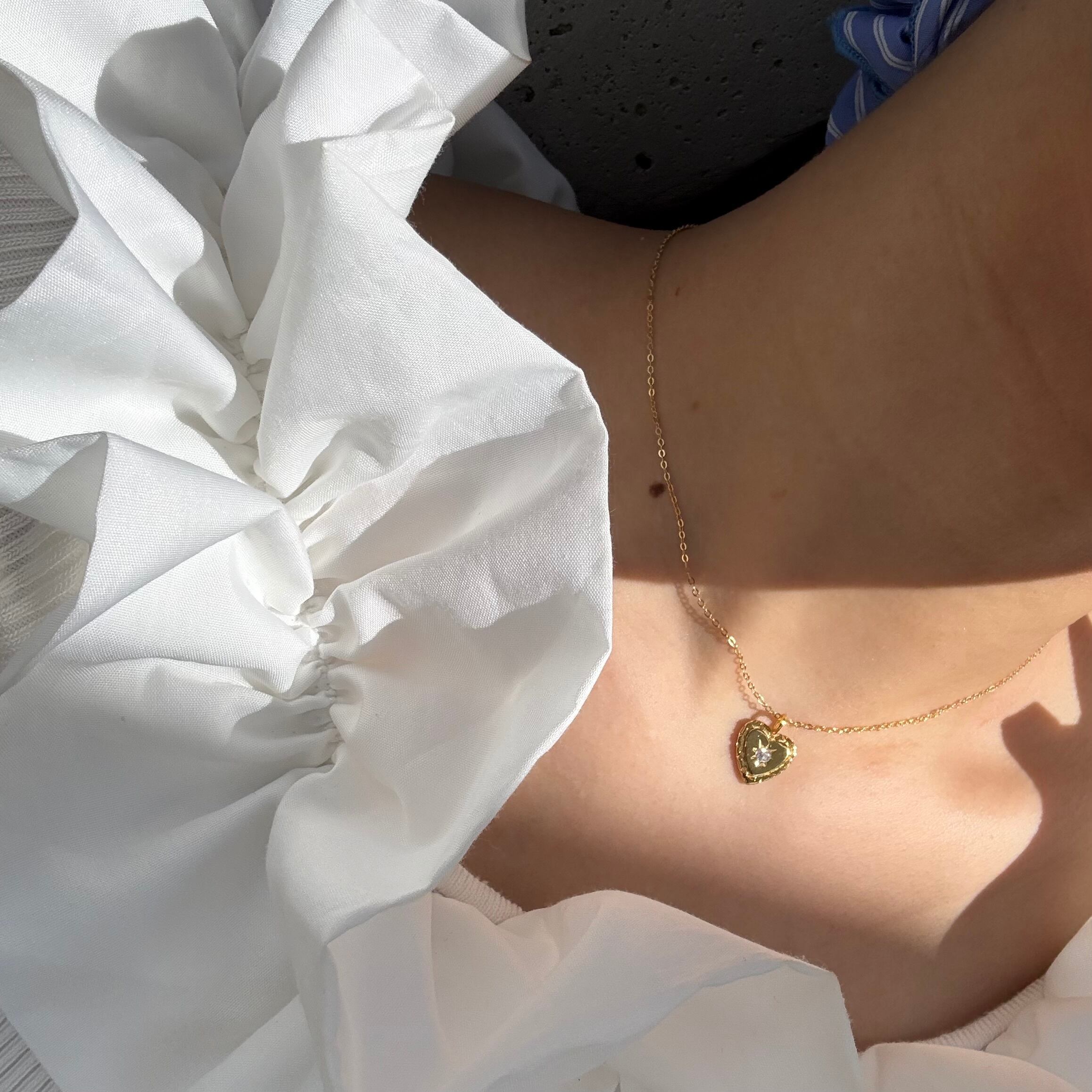 可愛くなりすぎずに使える大人可愛いハートチャームネックレス