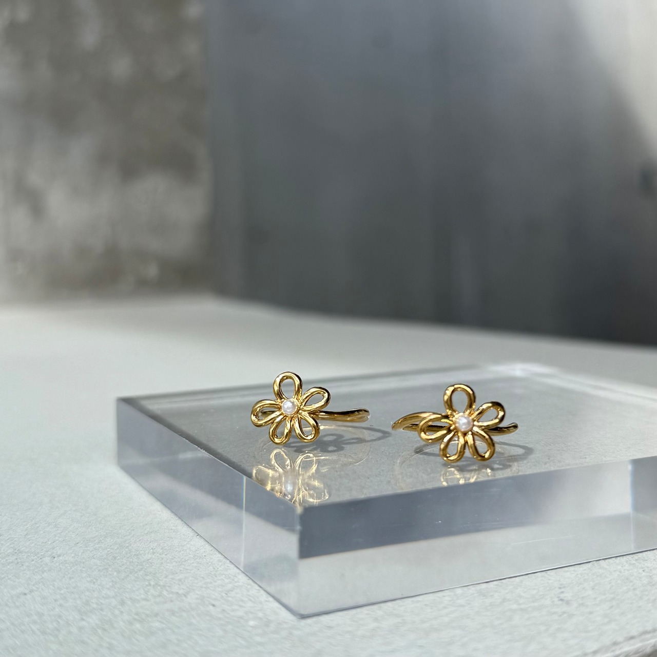 お花モチーフにパールが組み合わさったかわいいデザインリング