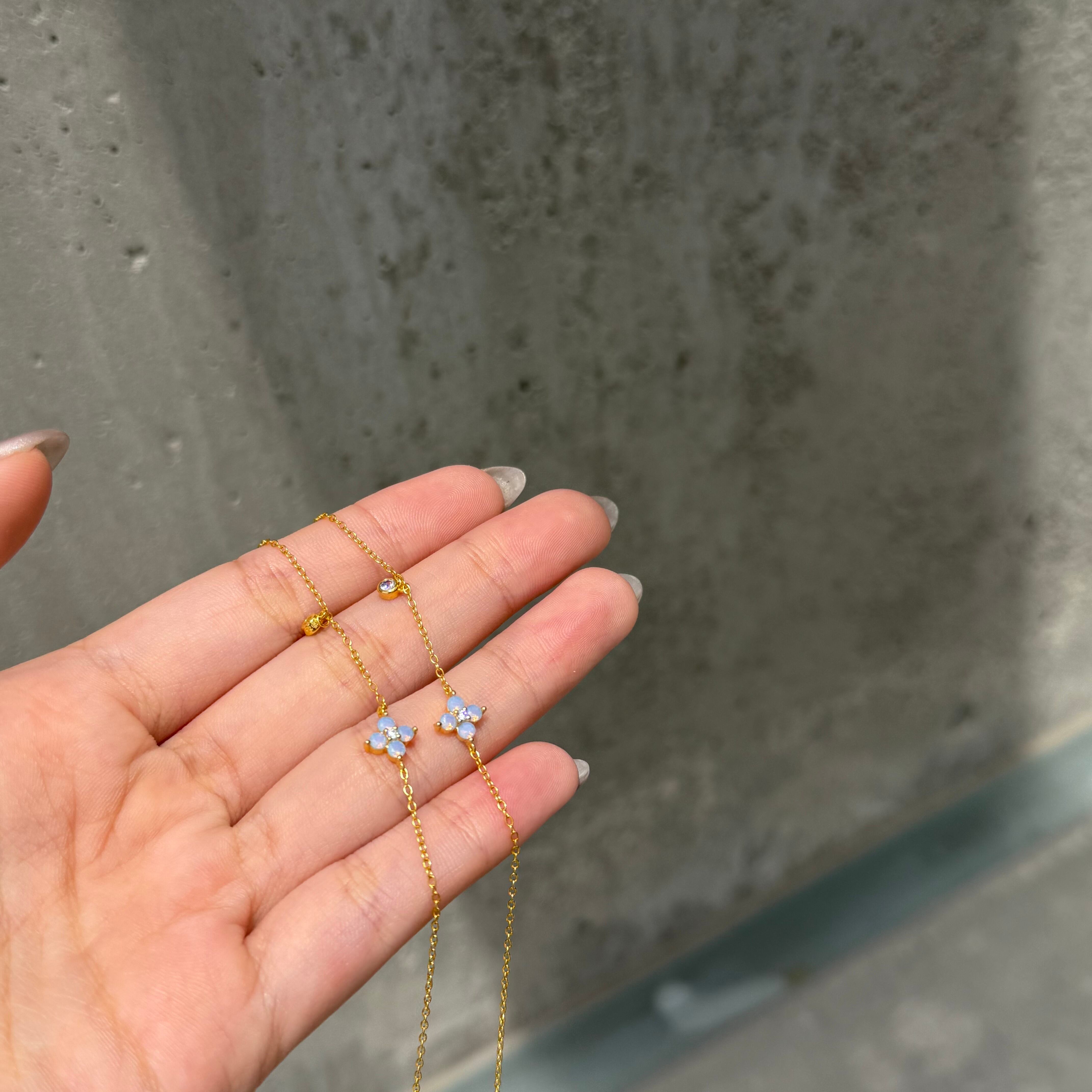 淡いブルーカラーが爽やかな印象を与えてくれるブレスレット
