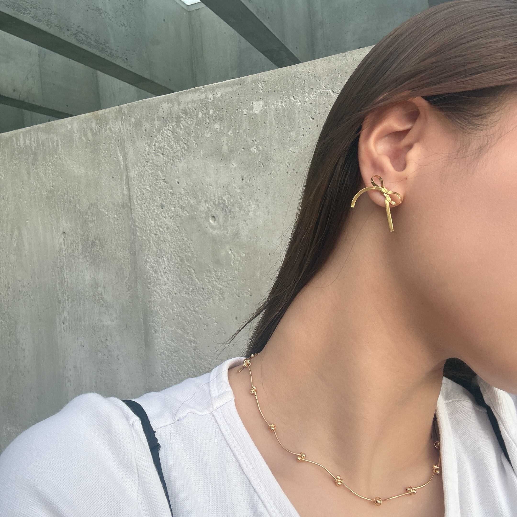 流れるようなフォルムが耳元で美しく、シンプルなコーディネートにも華やかさをプラスするアイテムです
