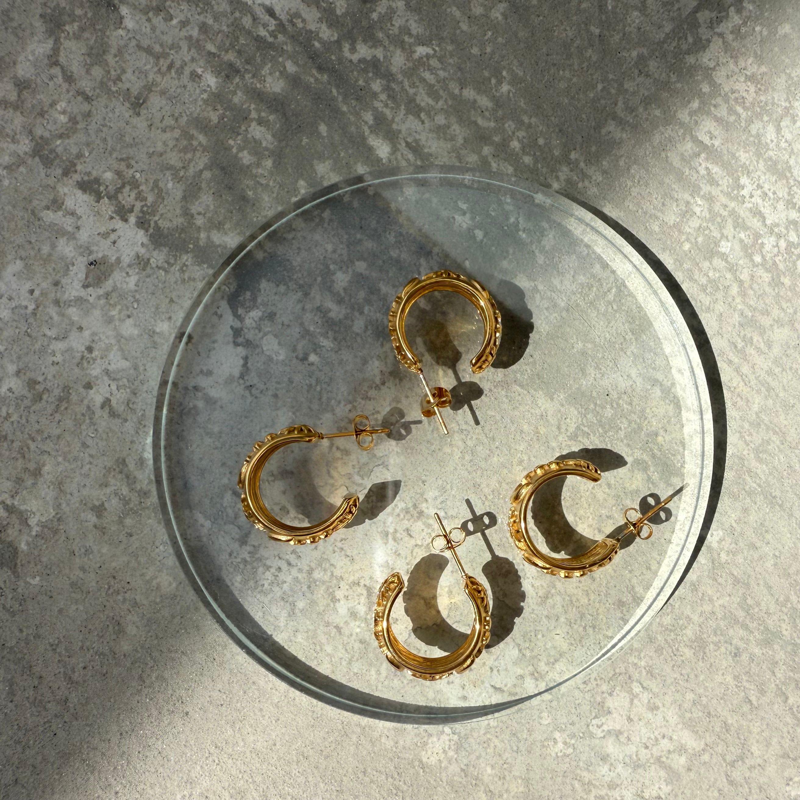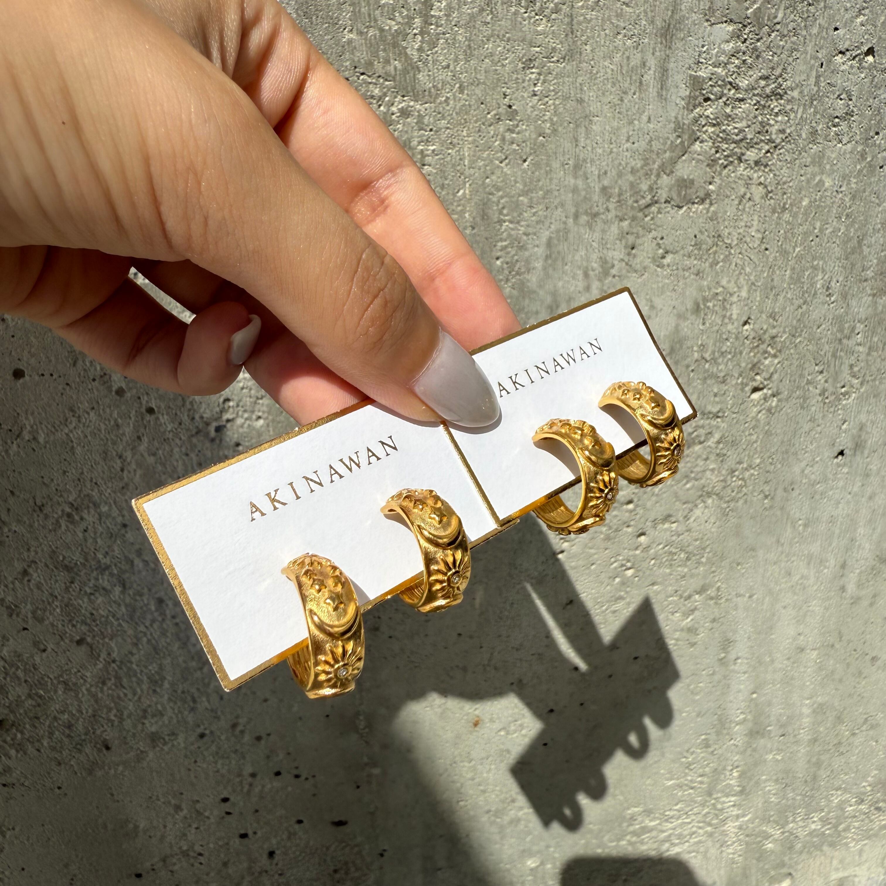 月と太陽の繊細なデザインが美しいフープピアス