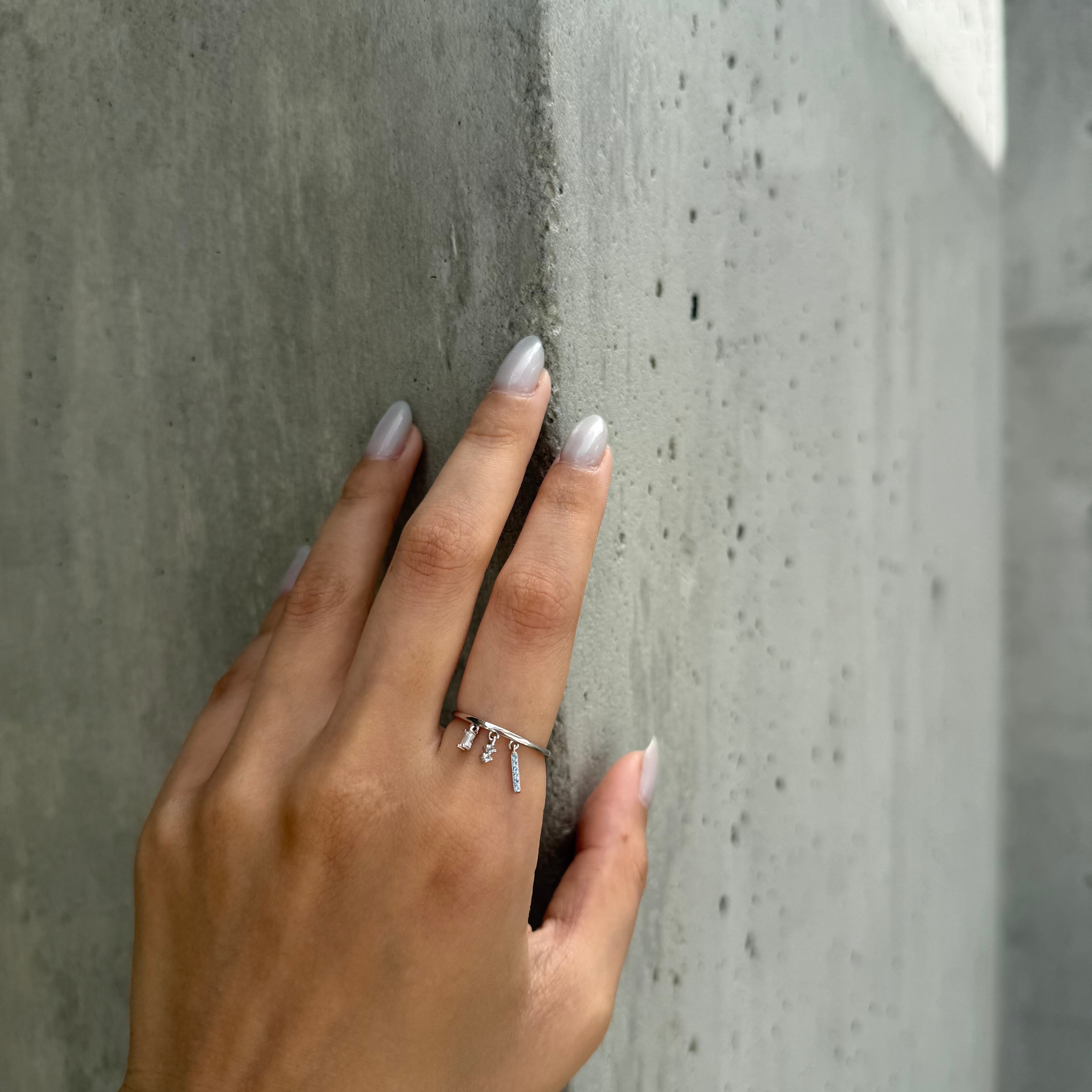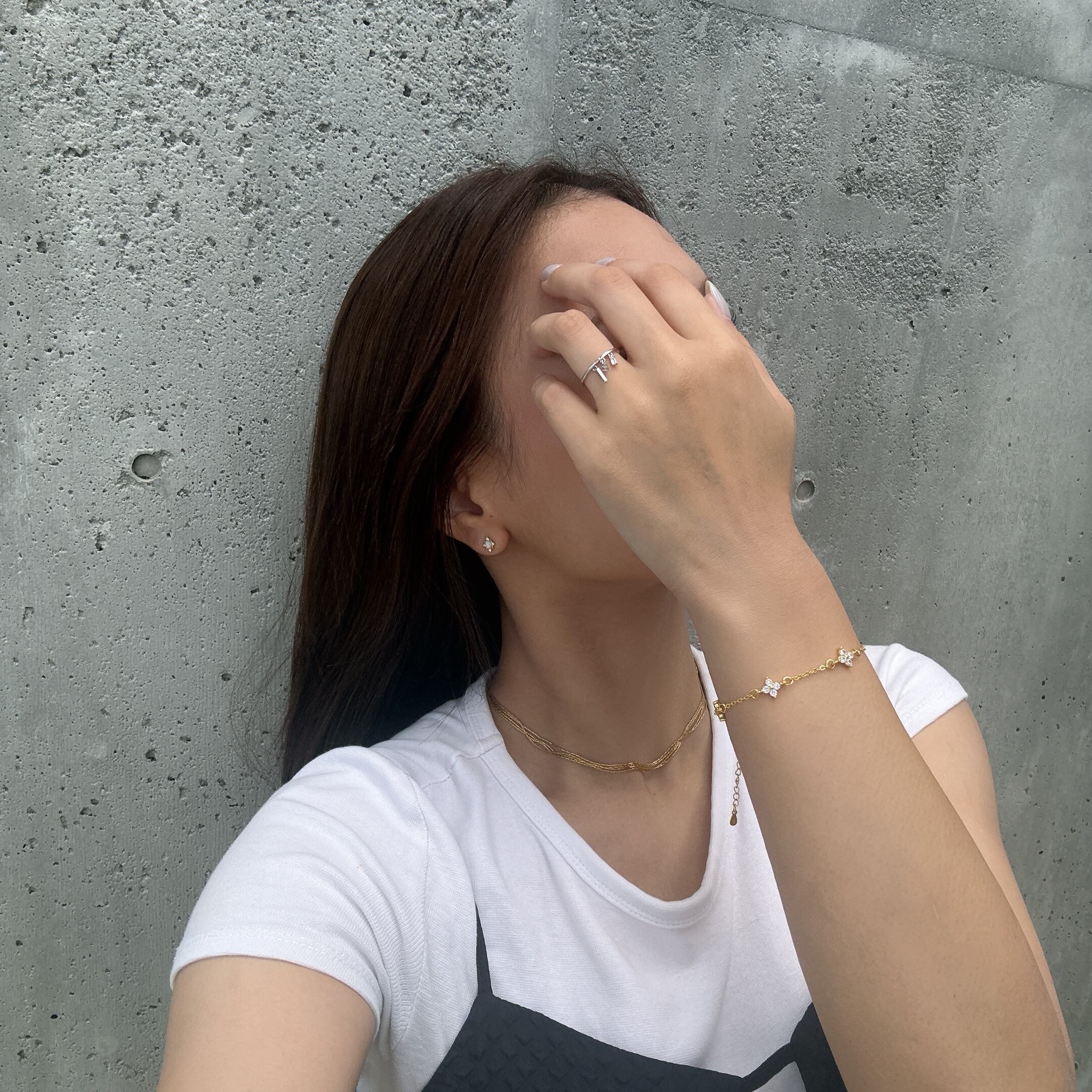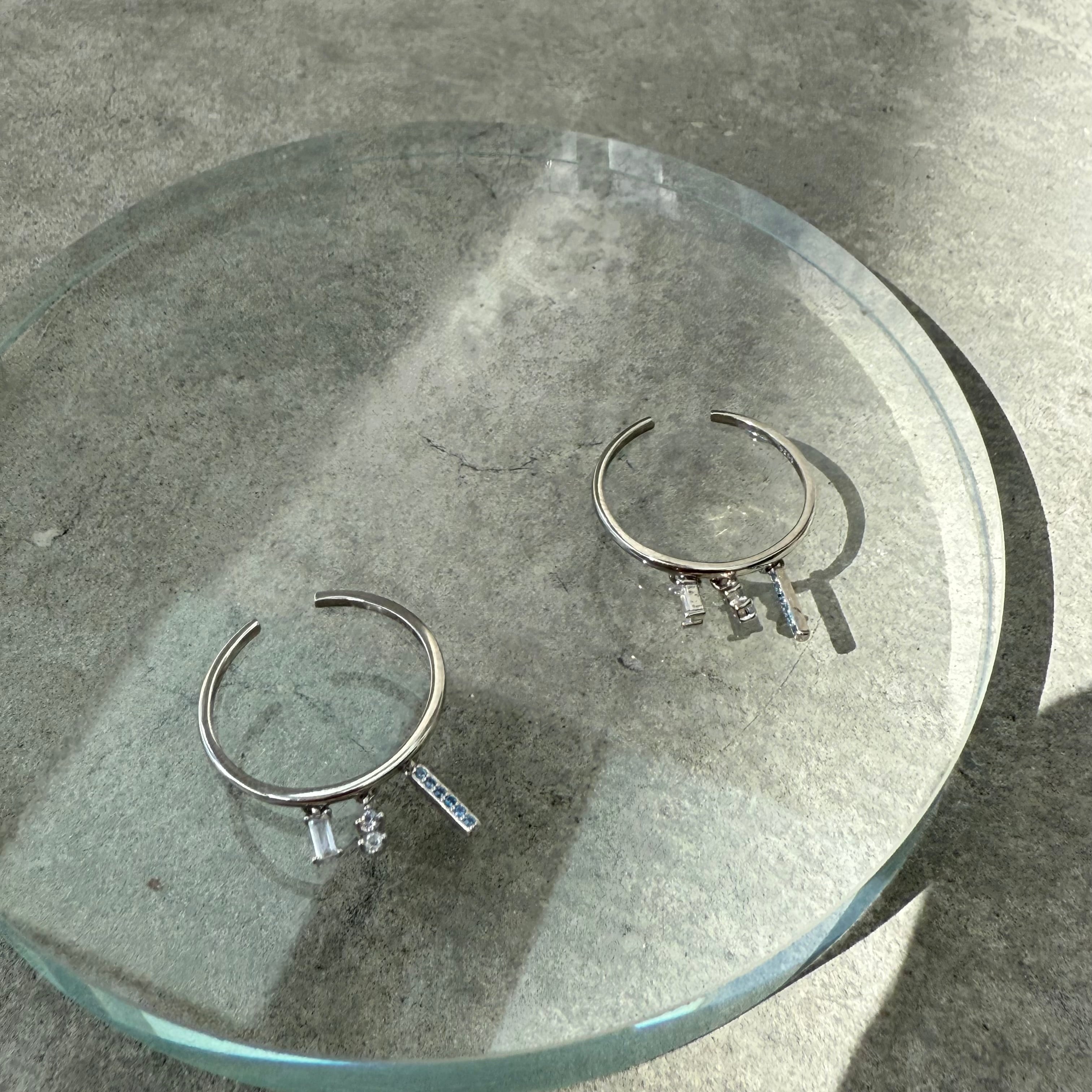 揺れるチャームが手元のアクセントになり、さり気ないブルーカラーのジルコニアが