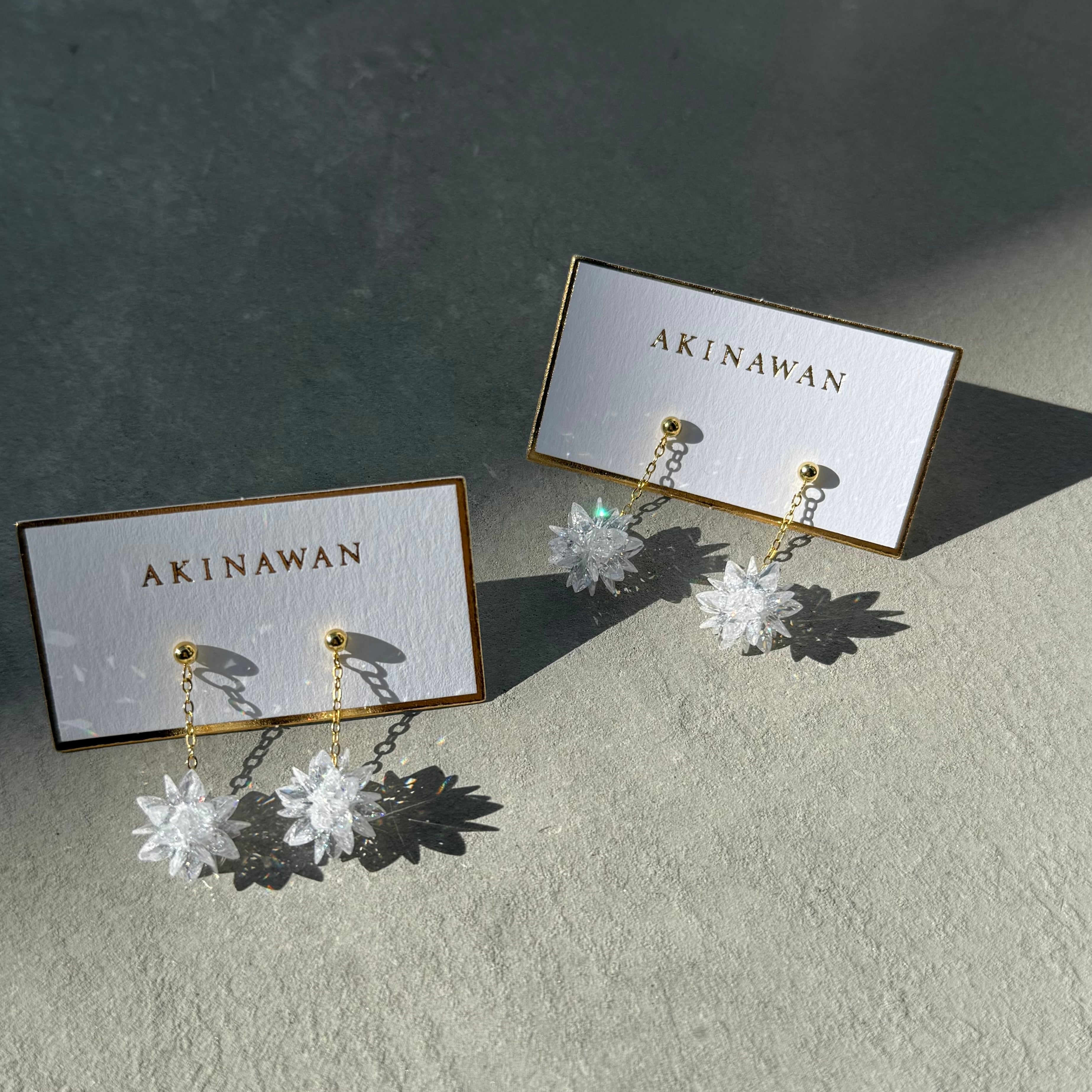 雪の結晶のようなチャームがゆらゆら美しいピアス