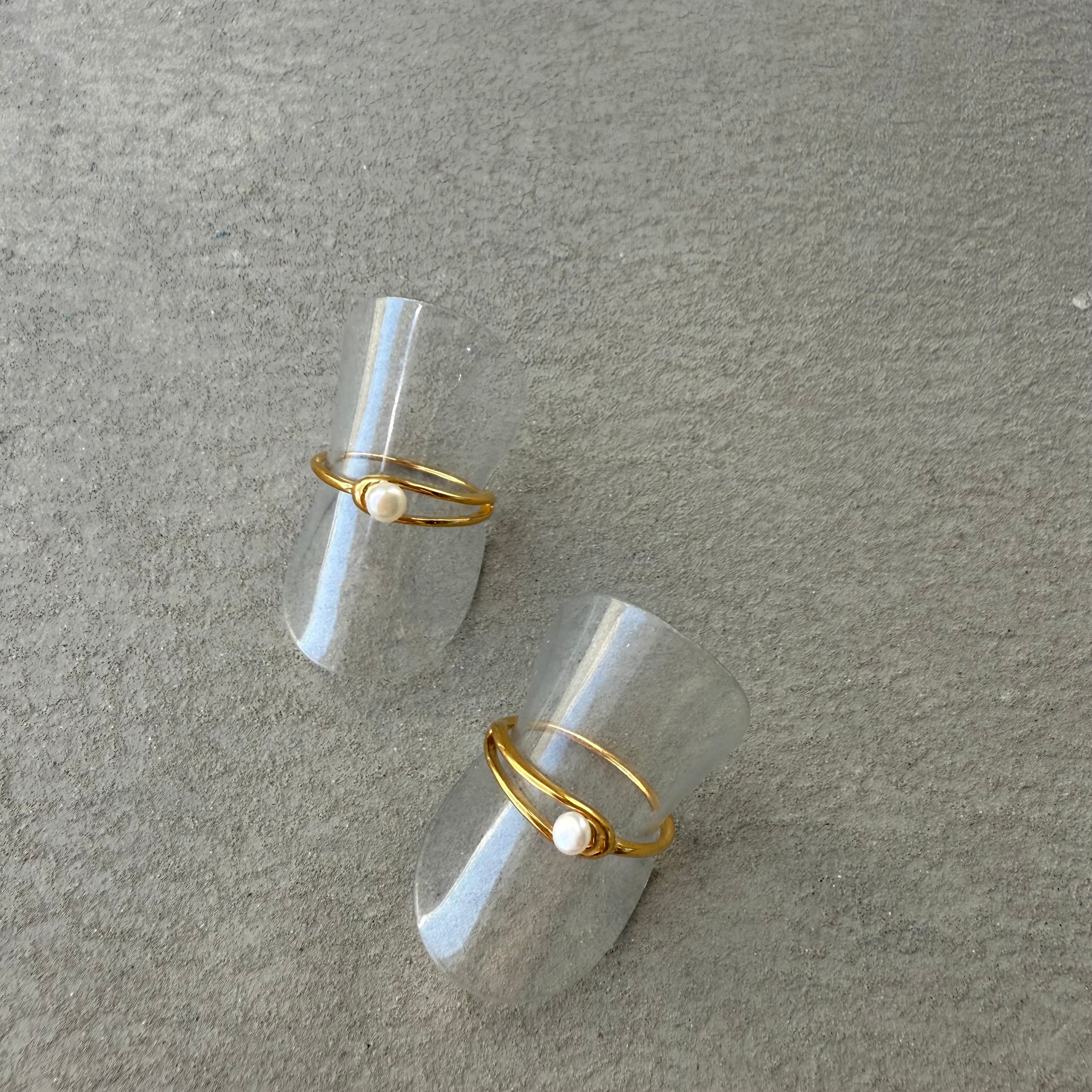 パールが施されたワンポイントデザインリング