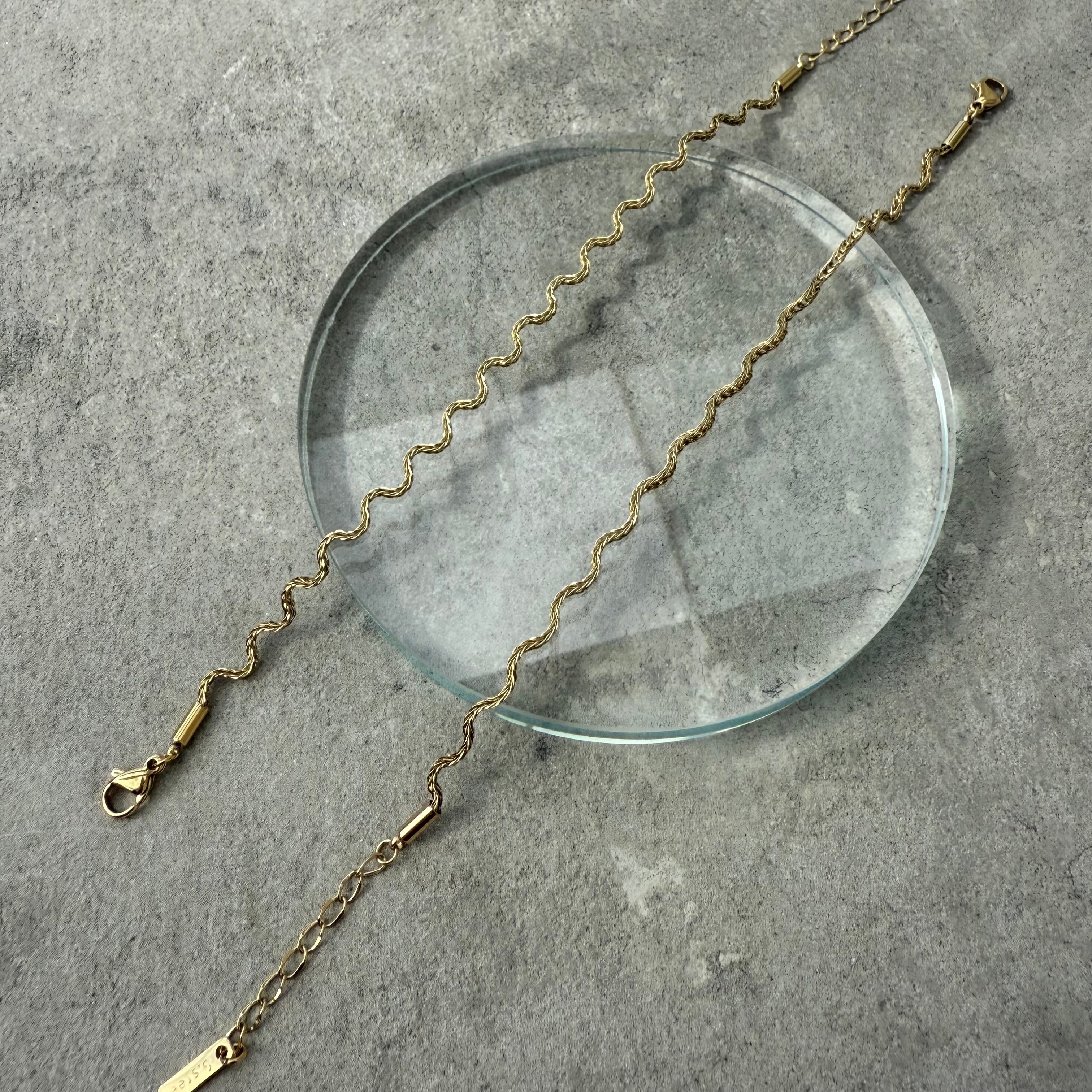 ウェーブしたチェーンが魅力的な遊び心あるブレスレット
