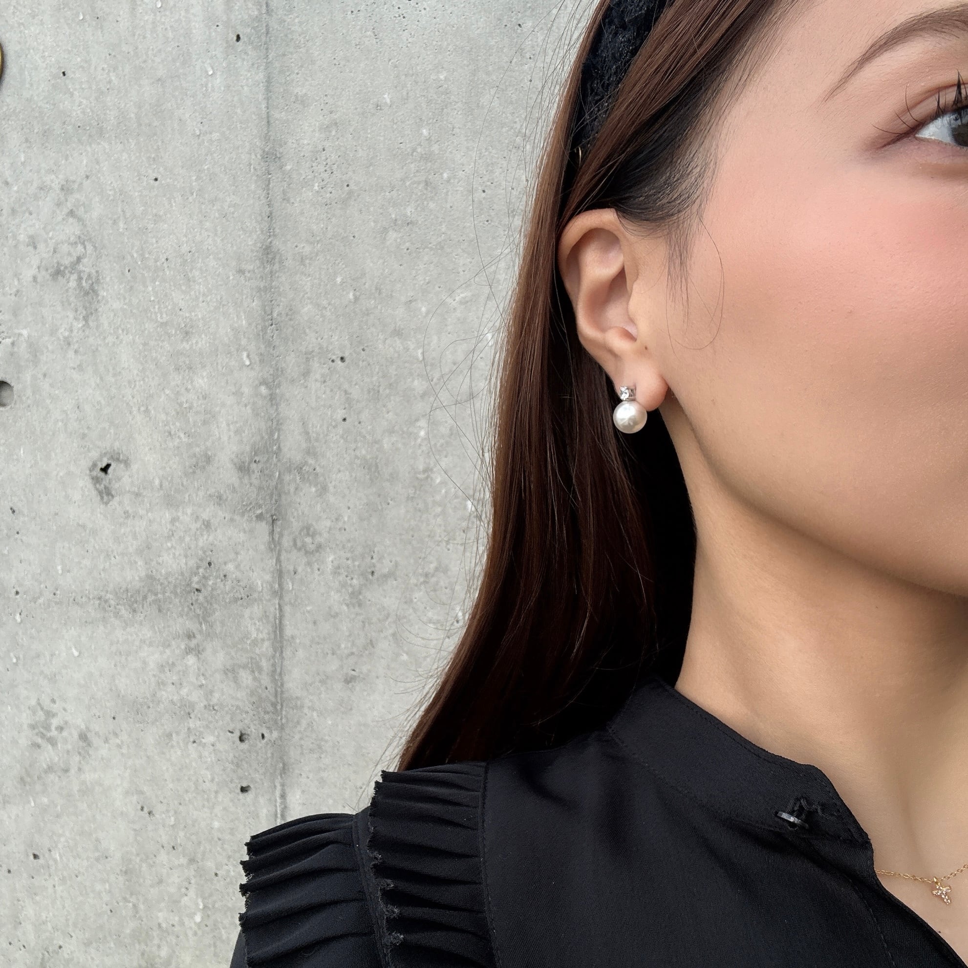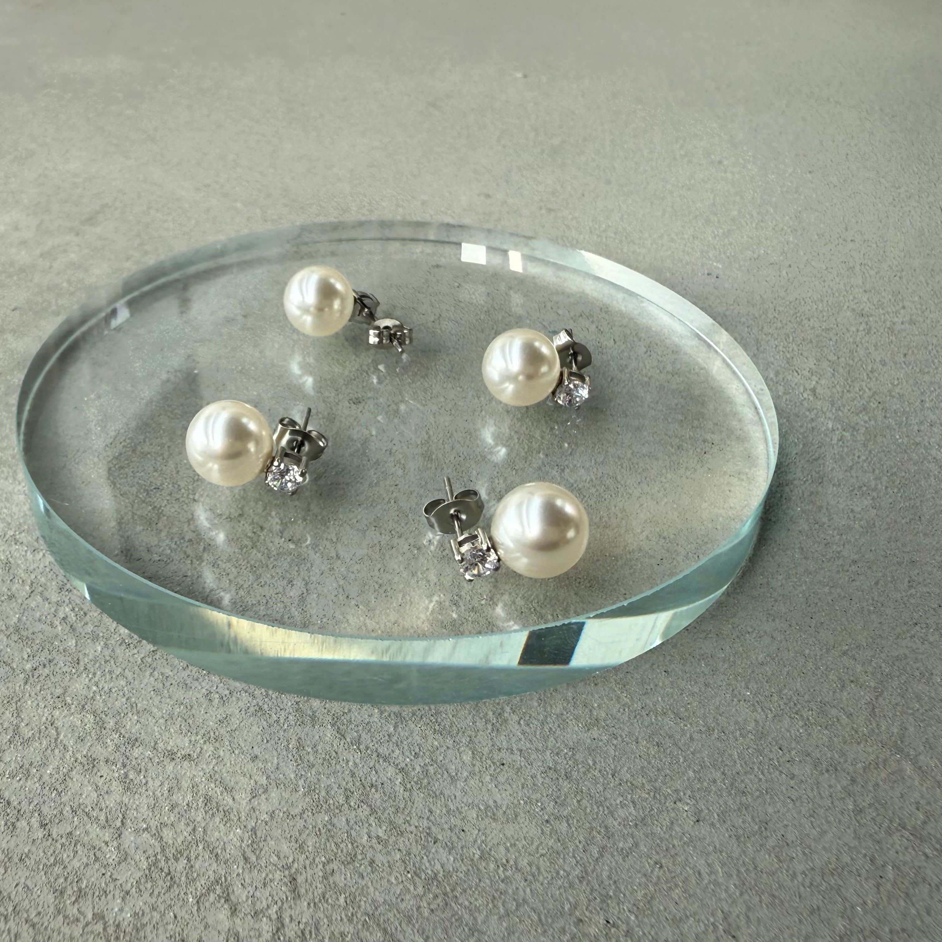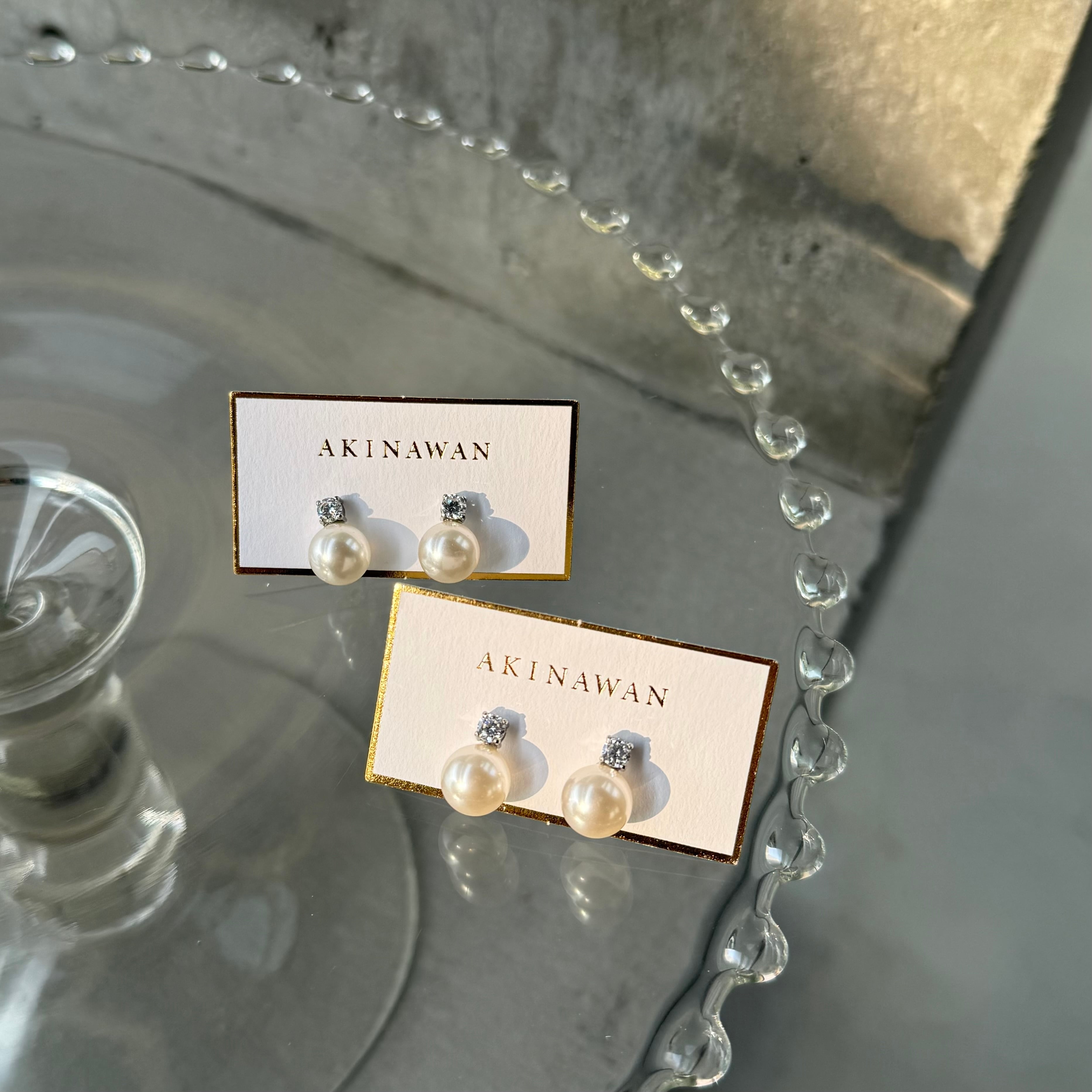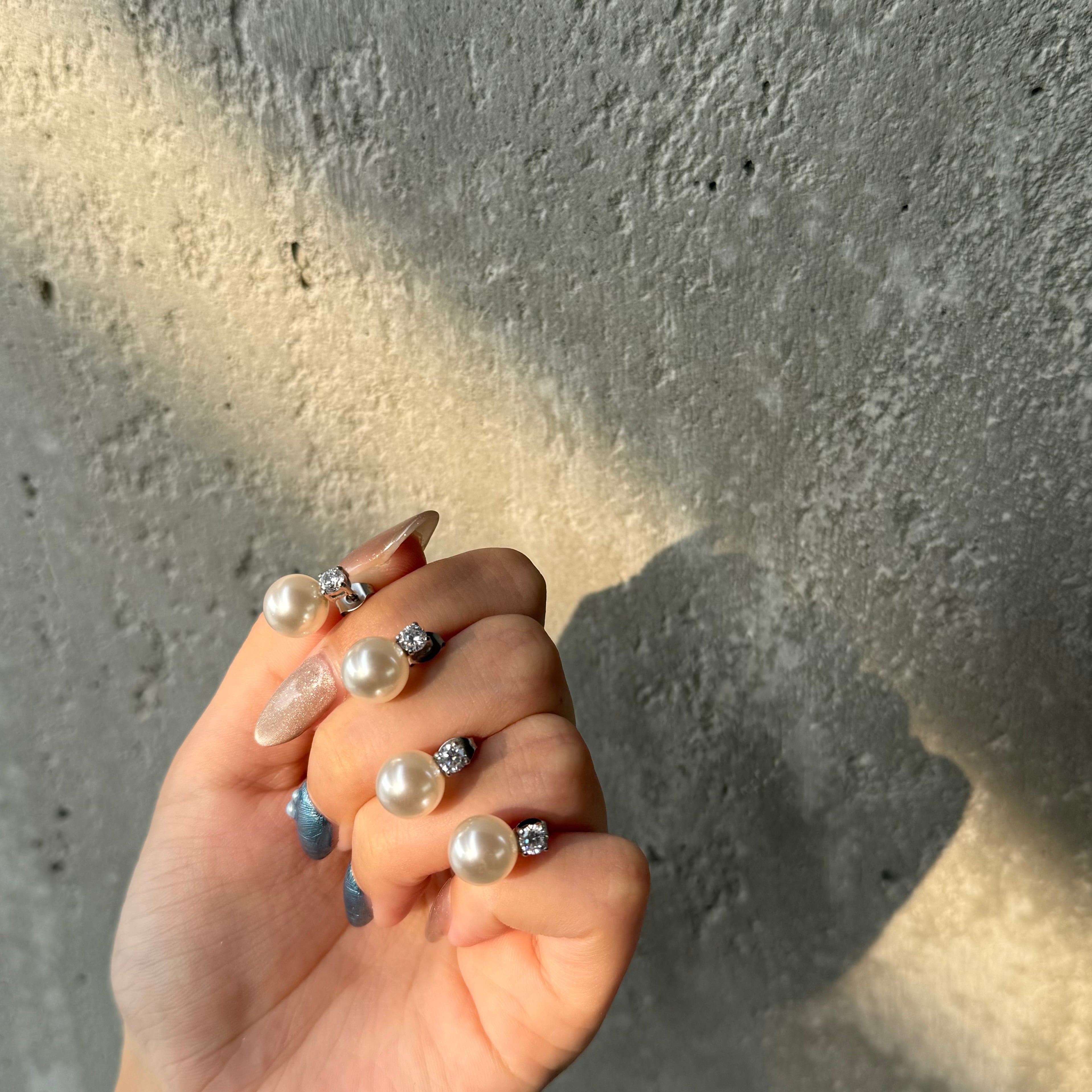パールとジルコニアが輝くシンプルピアス