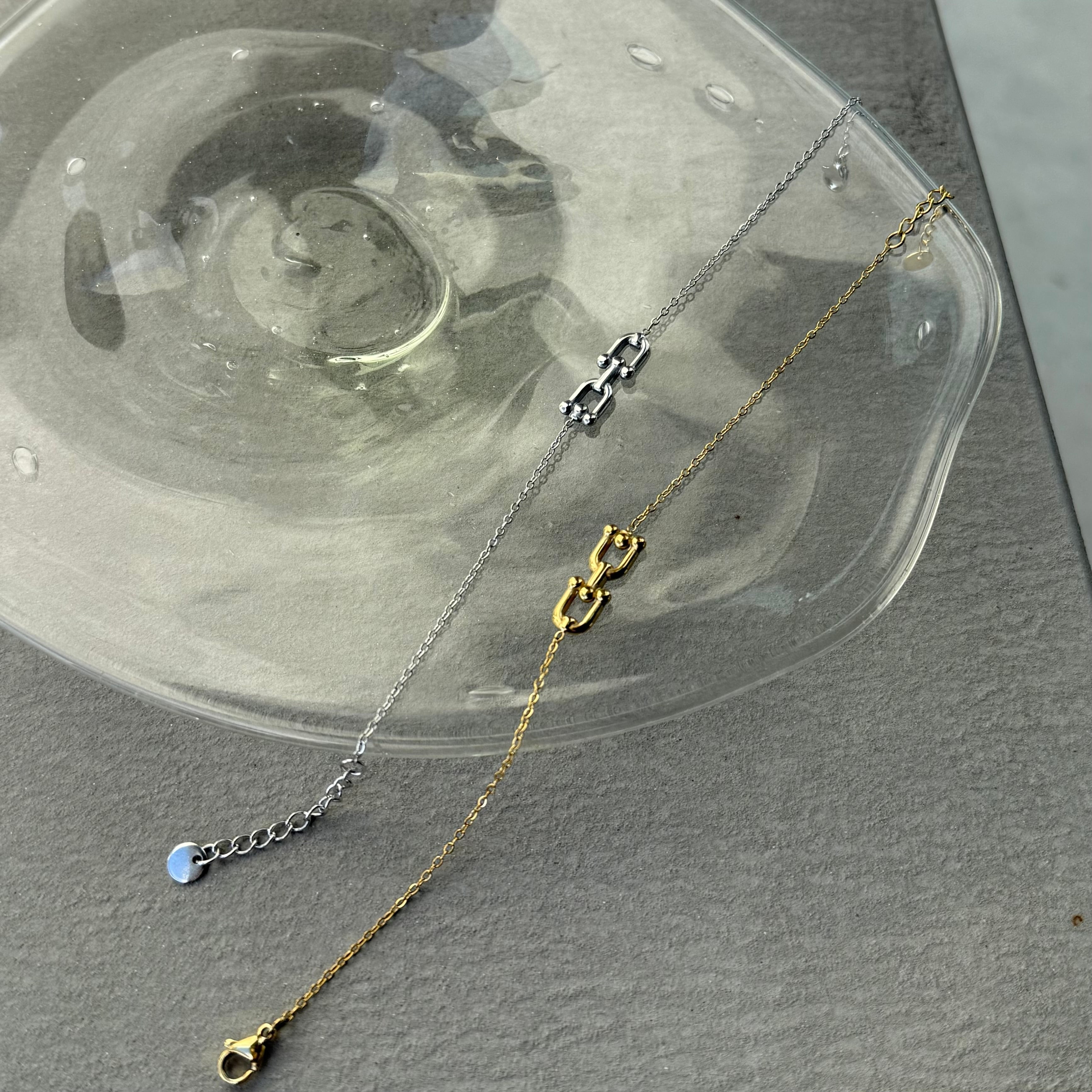 繋ぎ目のようなU字モチーフがワンポイント