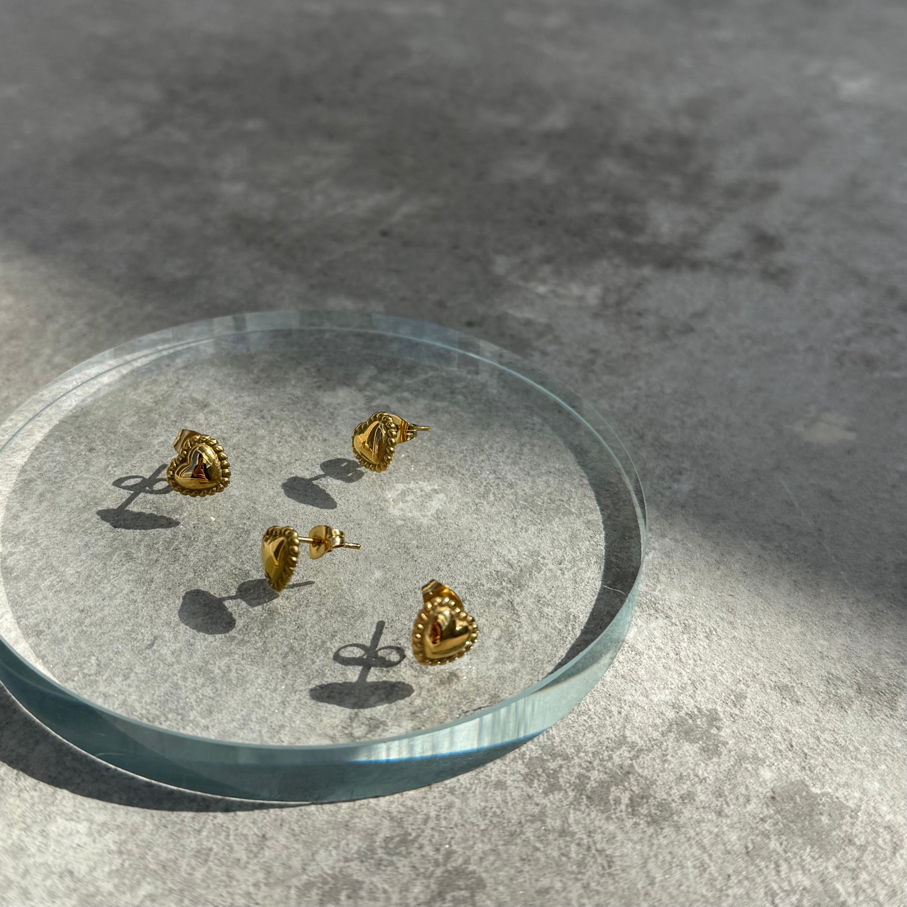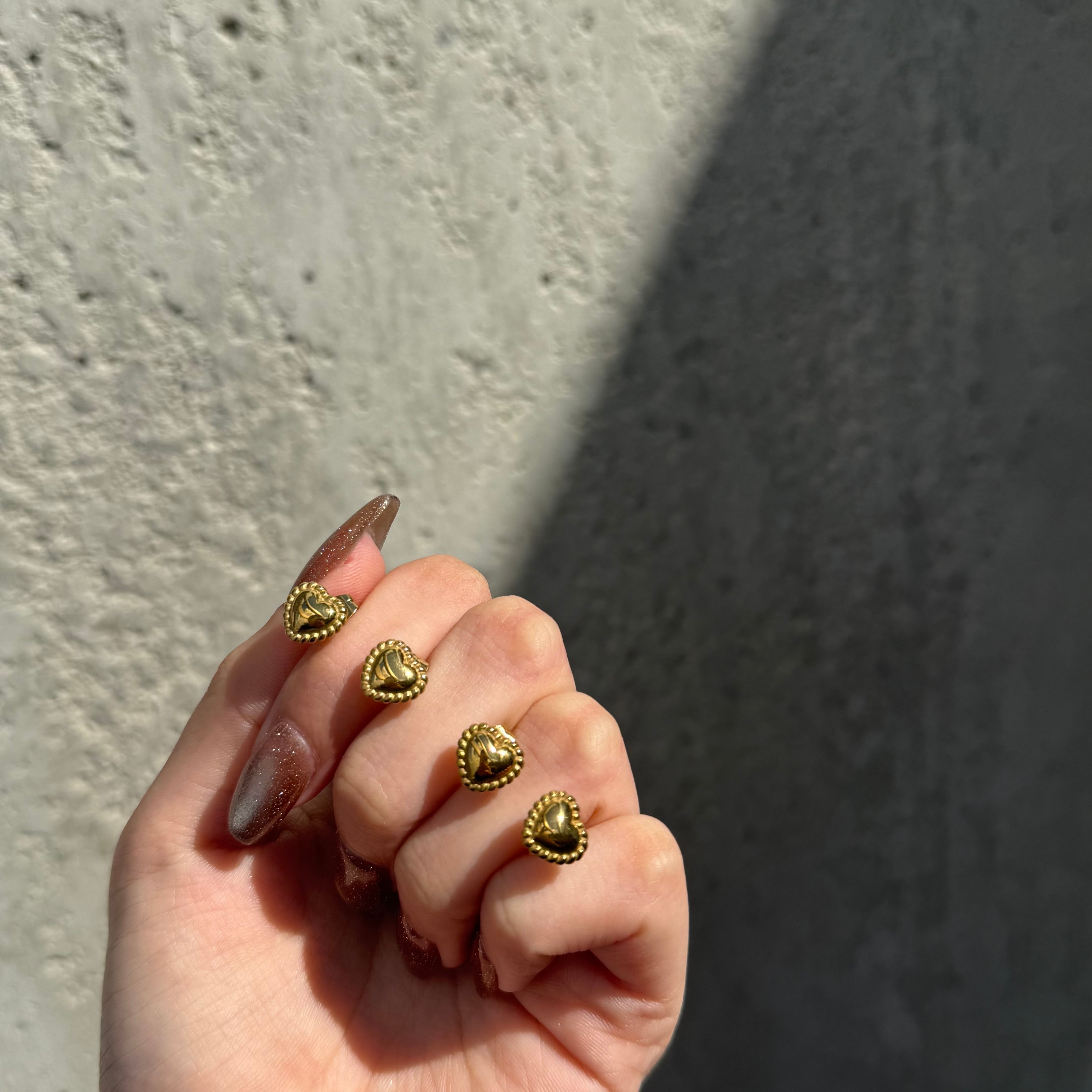 さり気なく控えめなハートデザインが大人かわいく顔まわりに彩りを与えてくれます