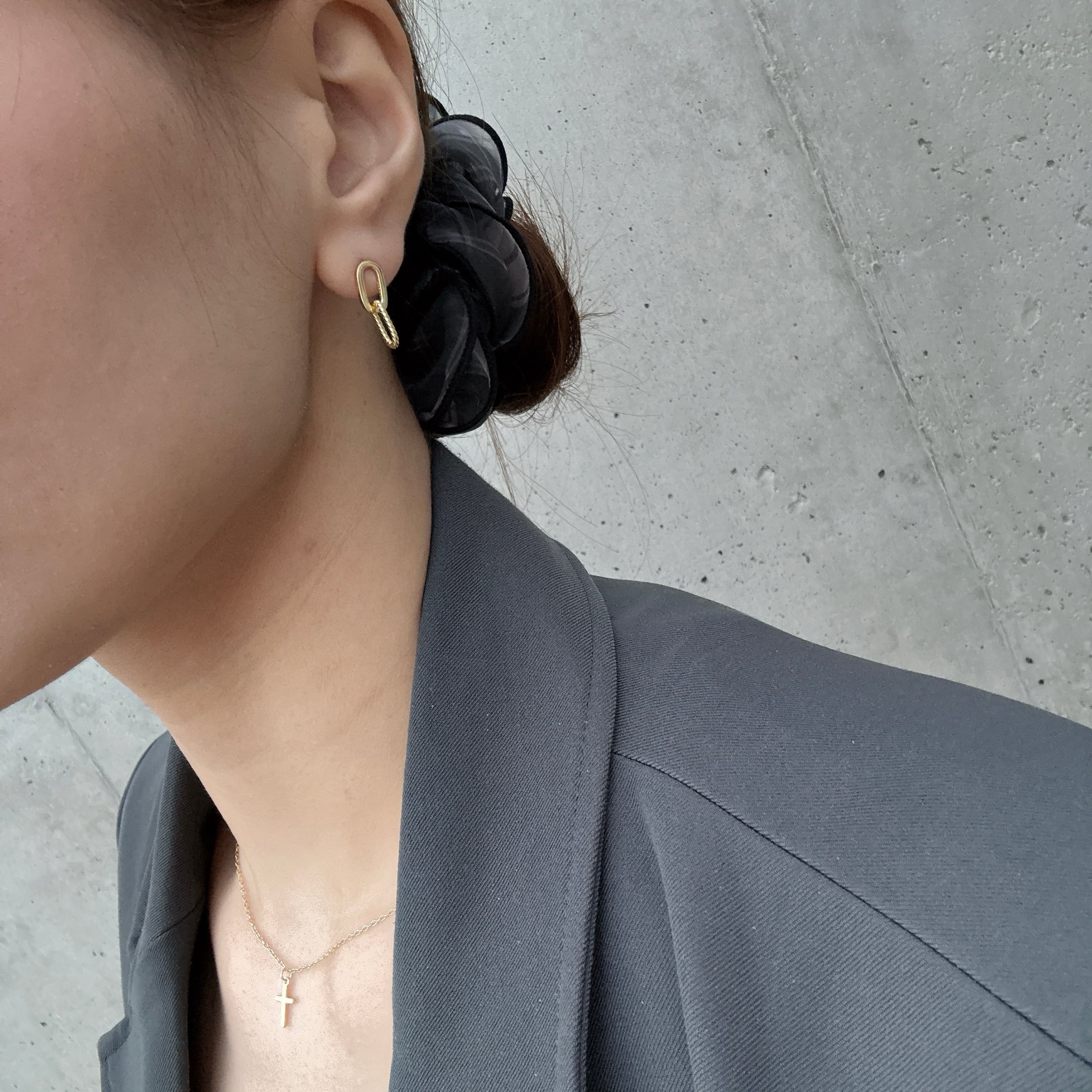 艶感とロープデザインが耳元で揺れることによって顔まわりを華やかにみせ、