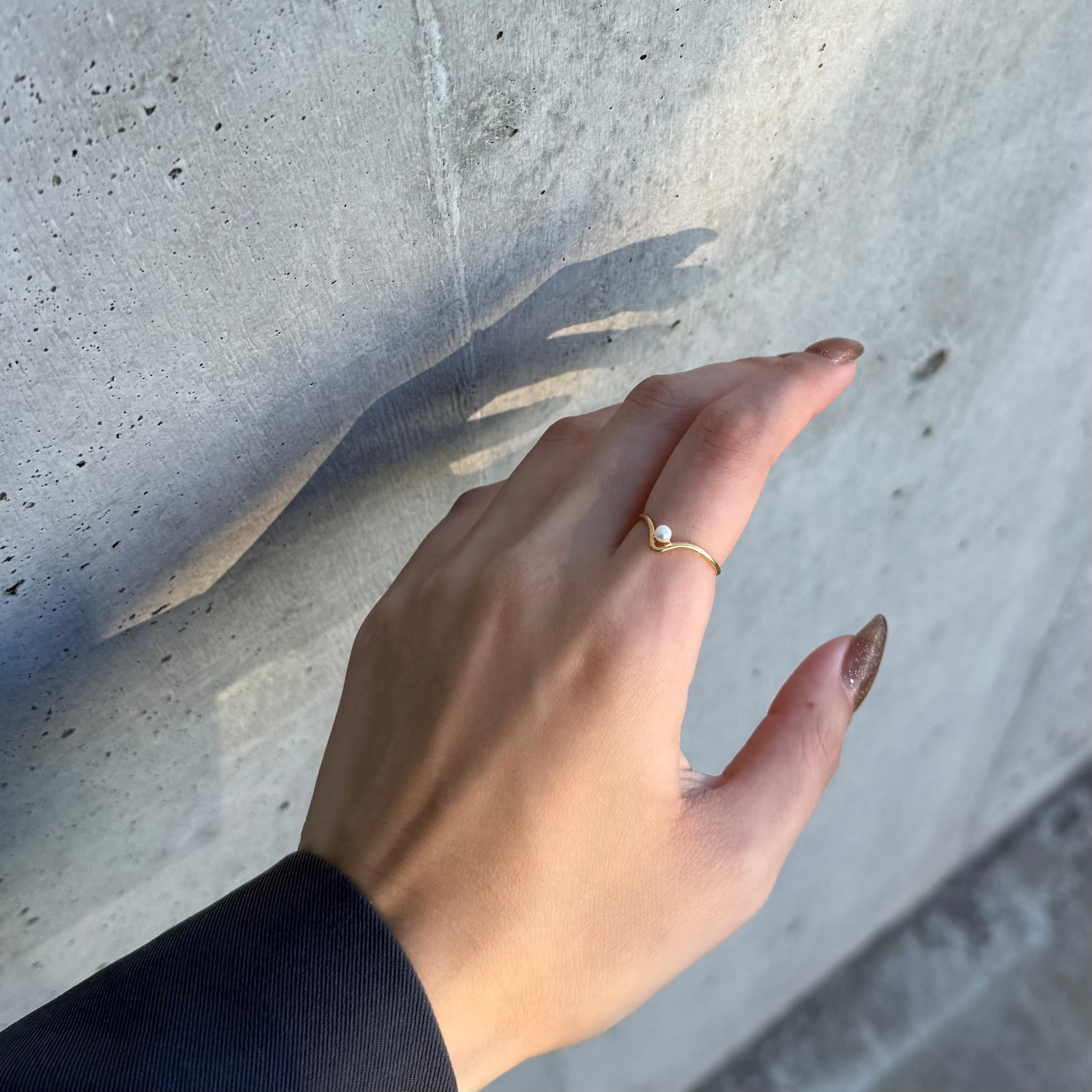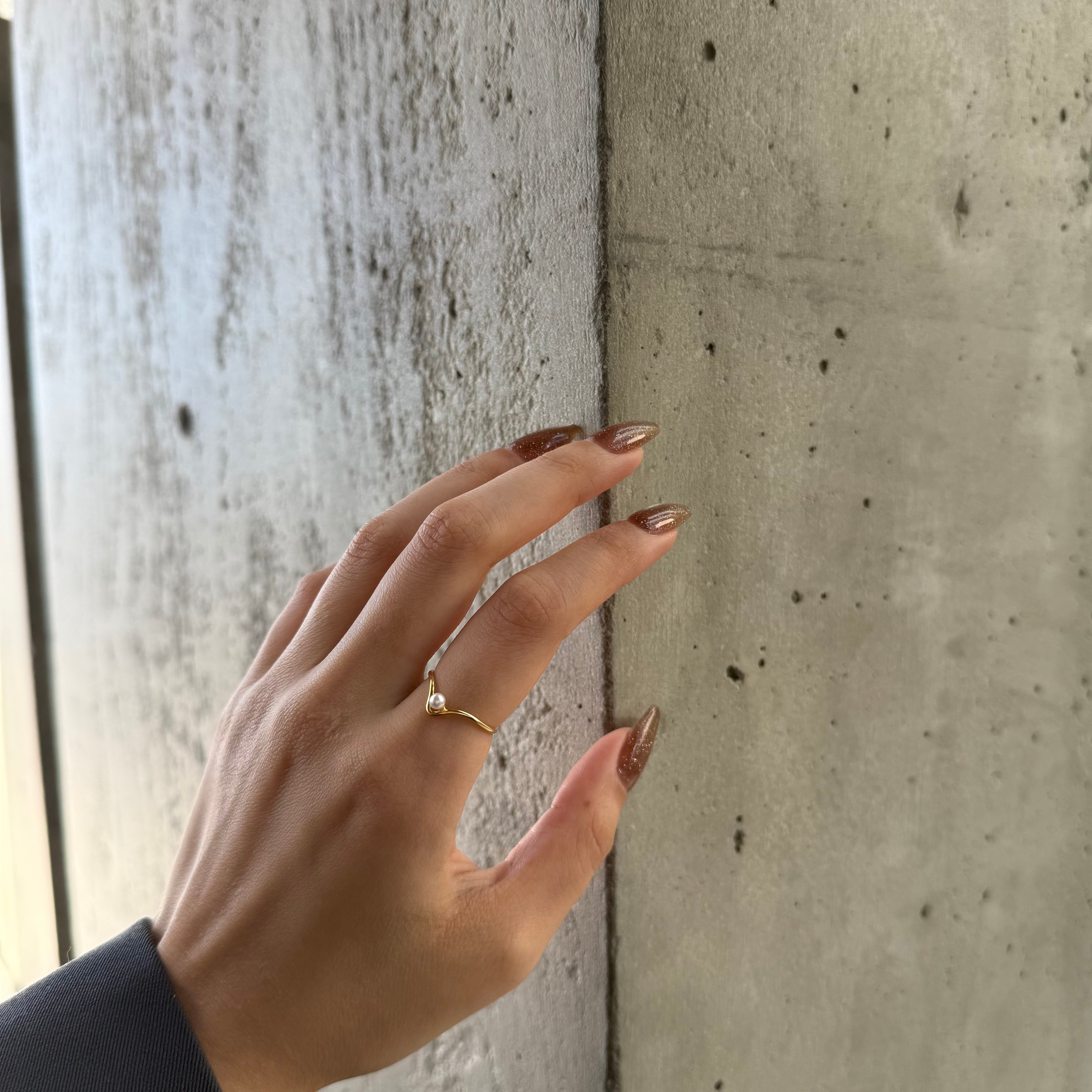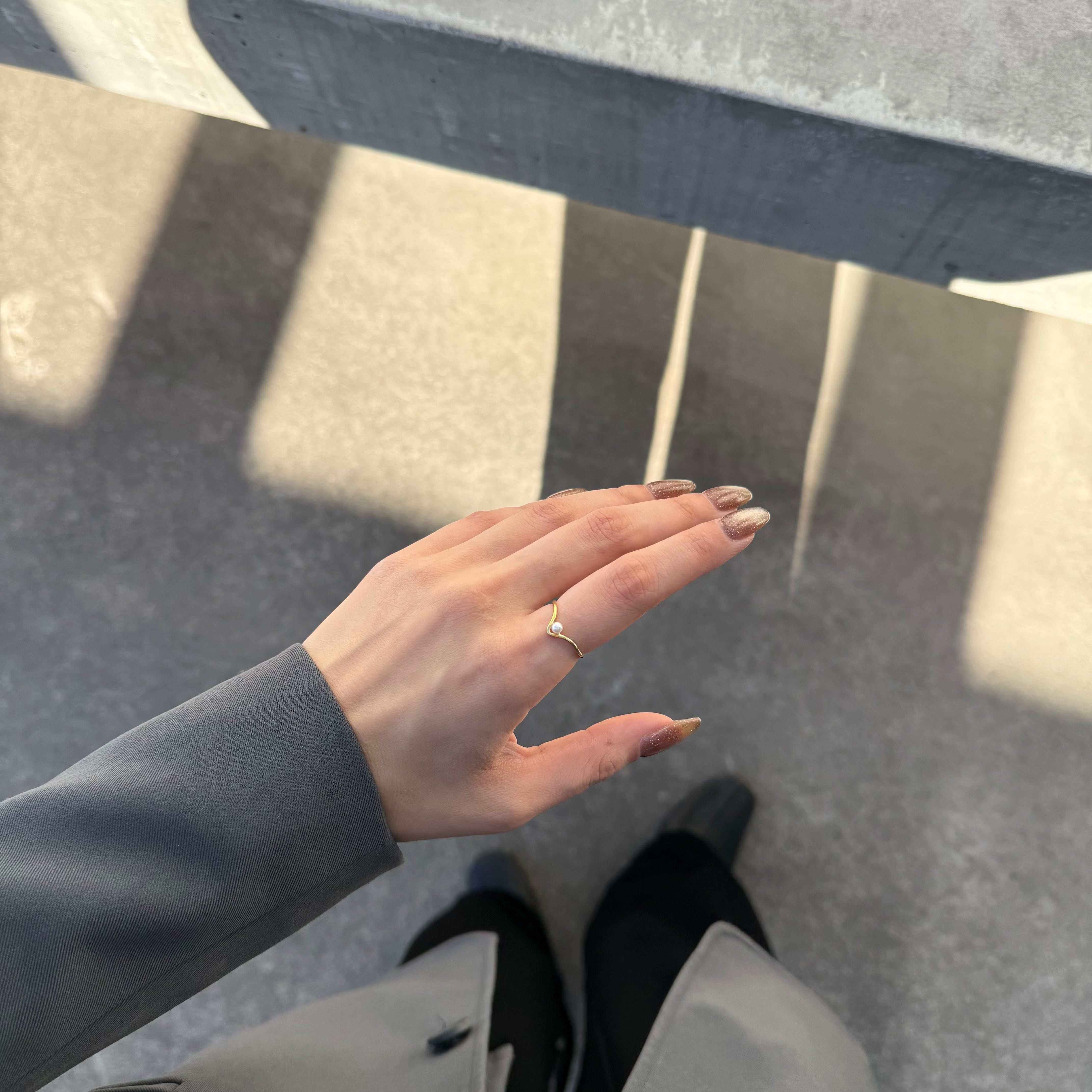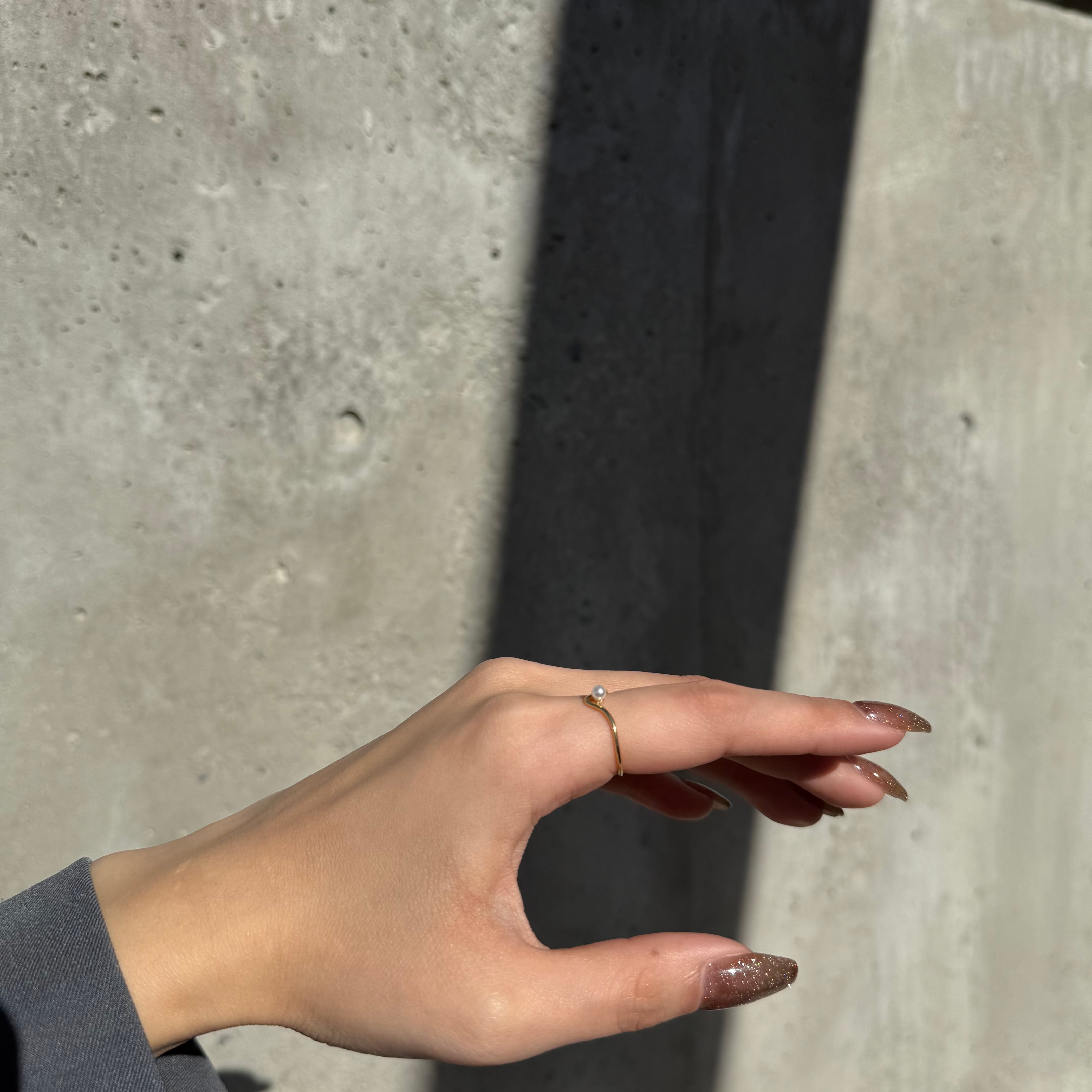 ニュアンス感あるフレームに小粒パールが施された大人かわいい遊び心ある華奢リング