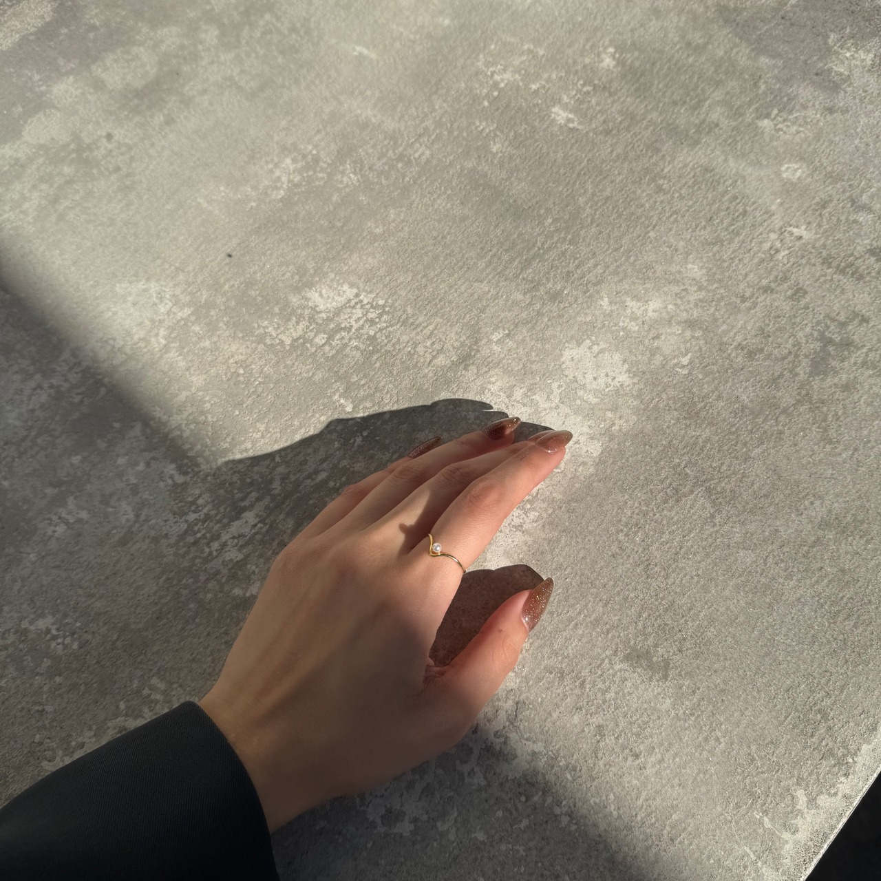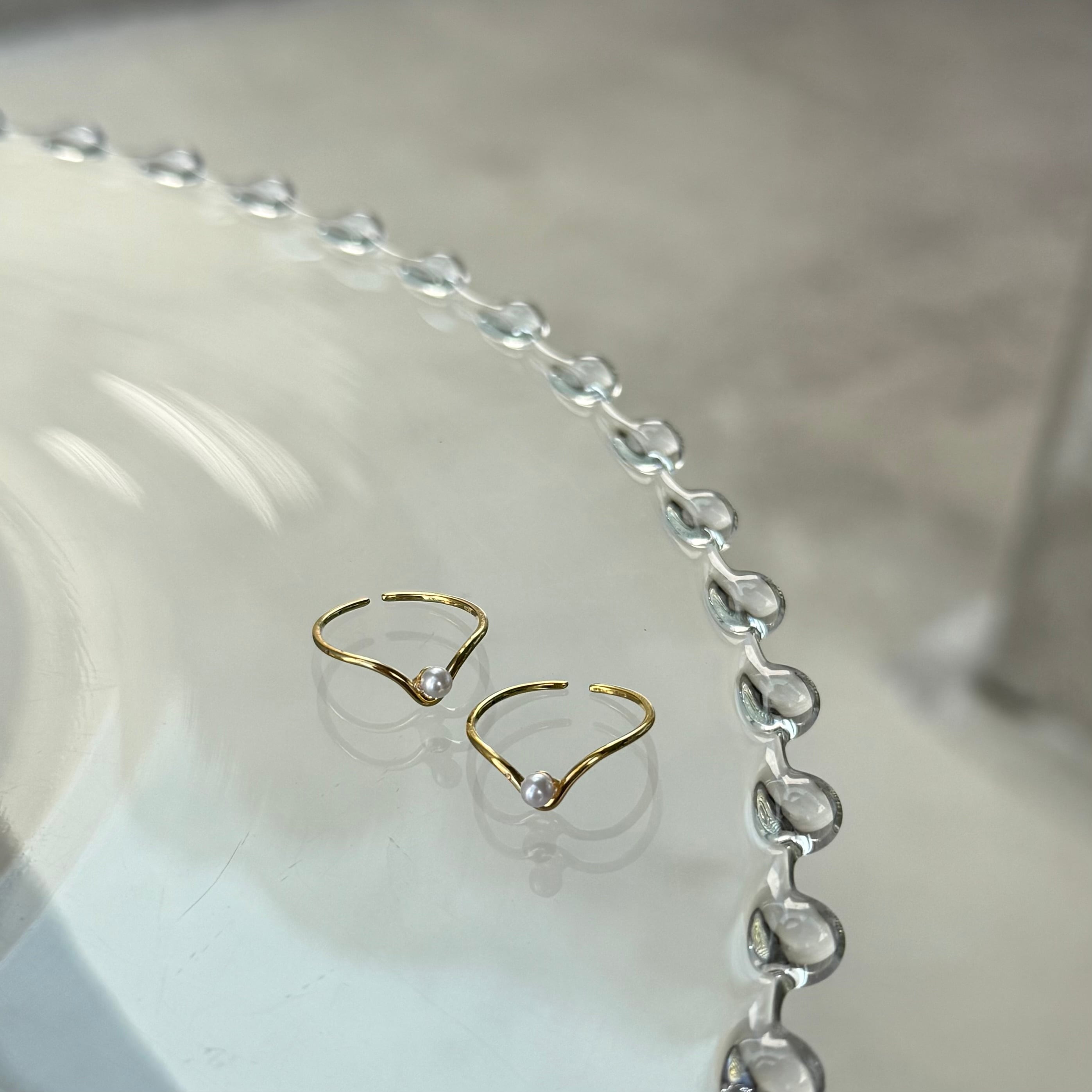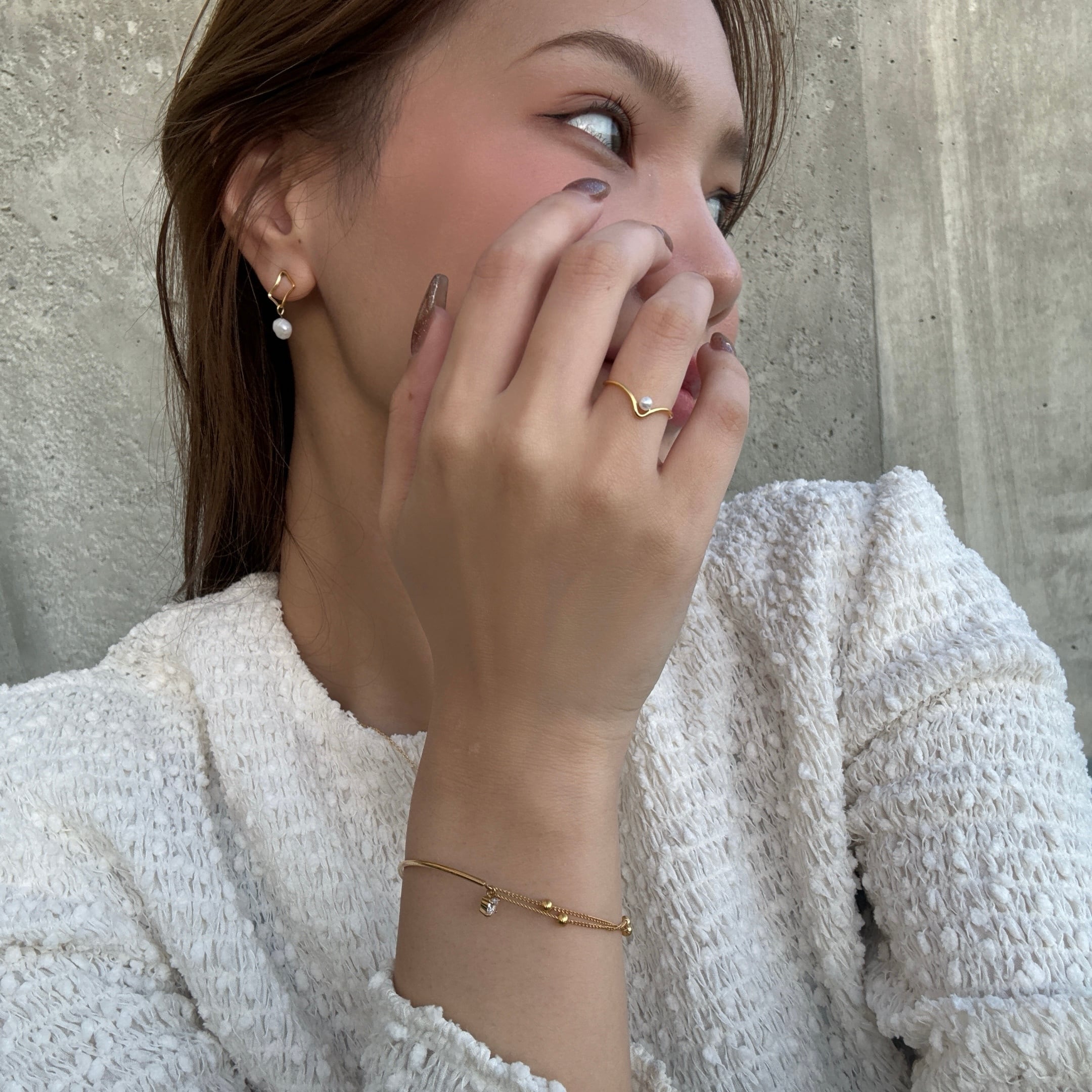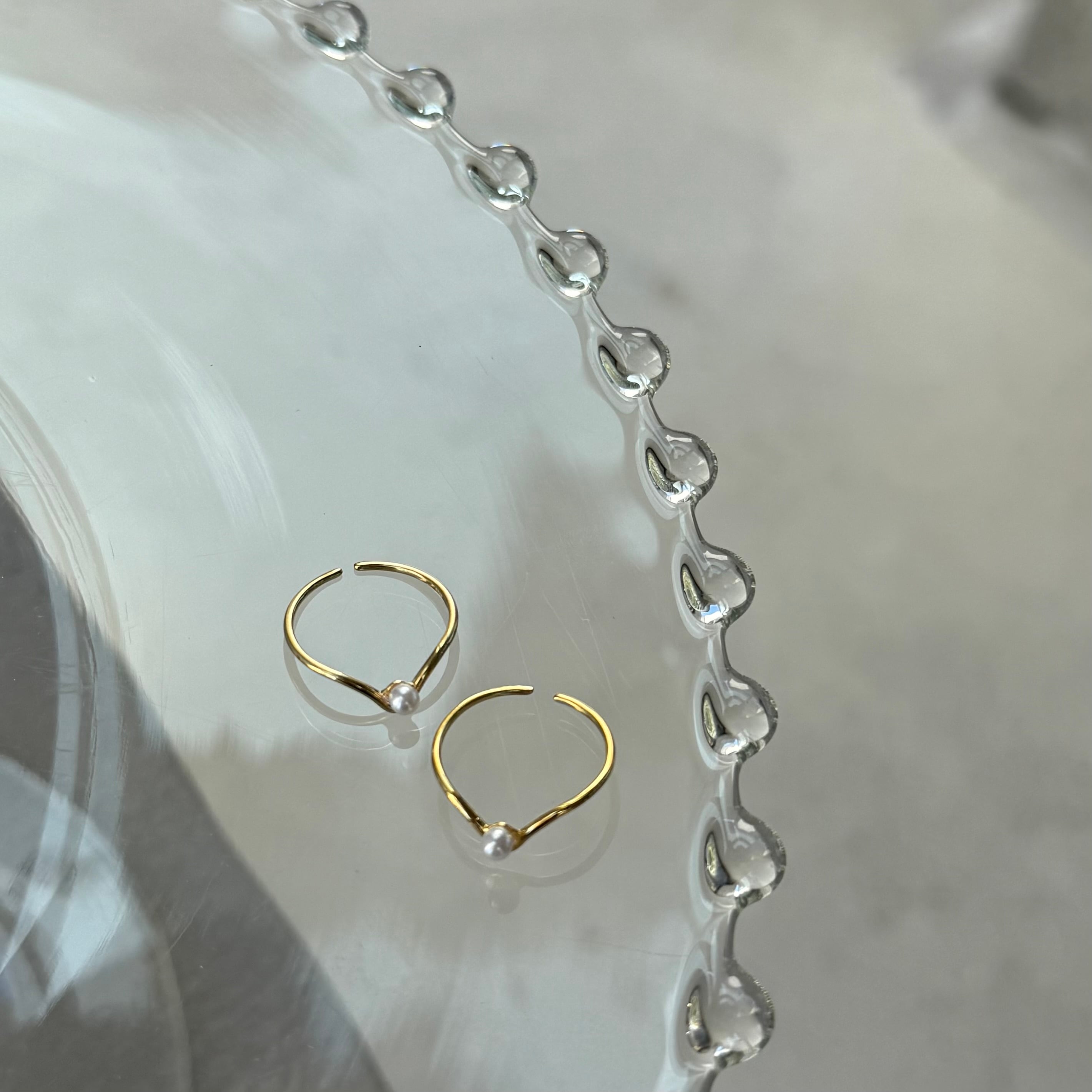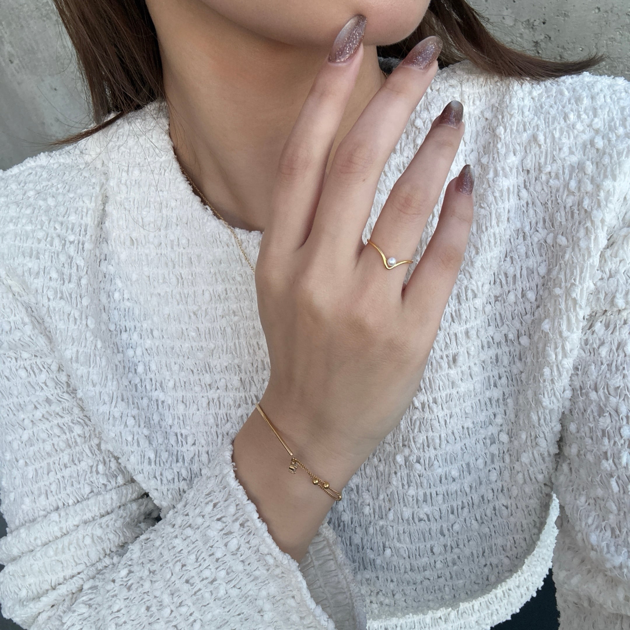 ニュアンス感あるフレームに小粒パールが施された大人かわいい遊び心ある華奢リング