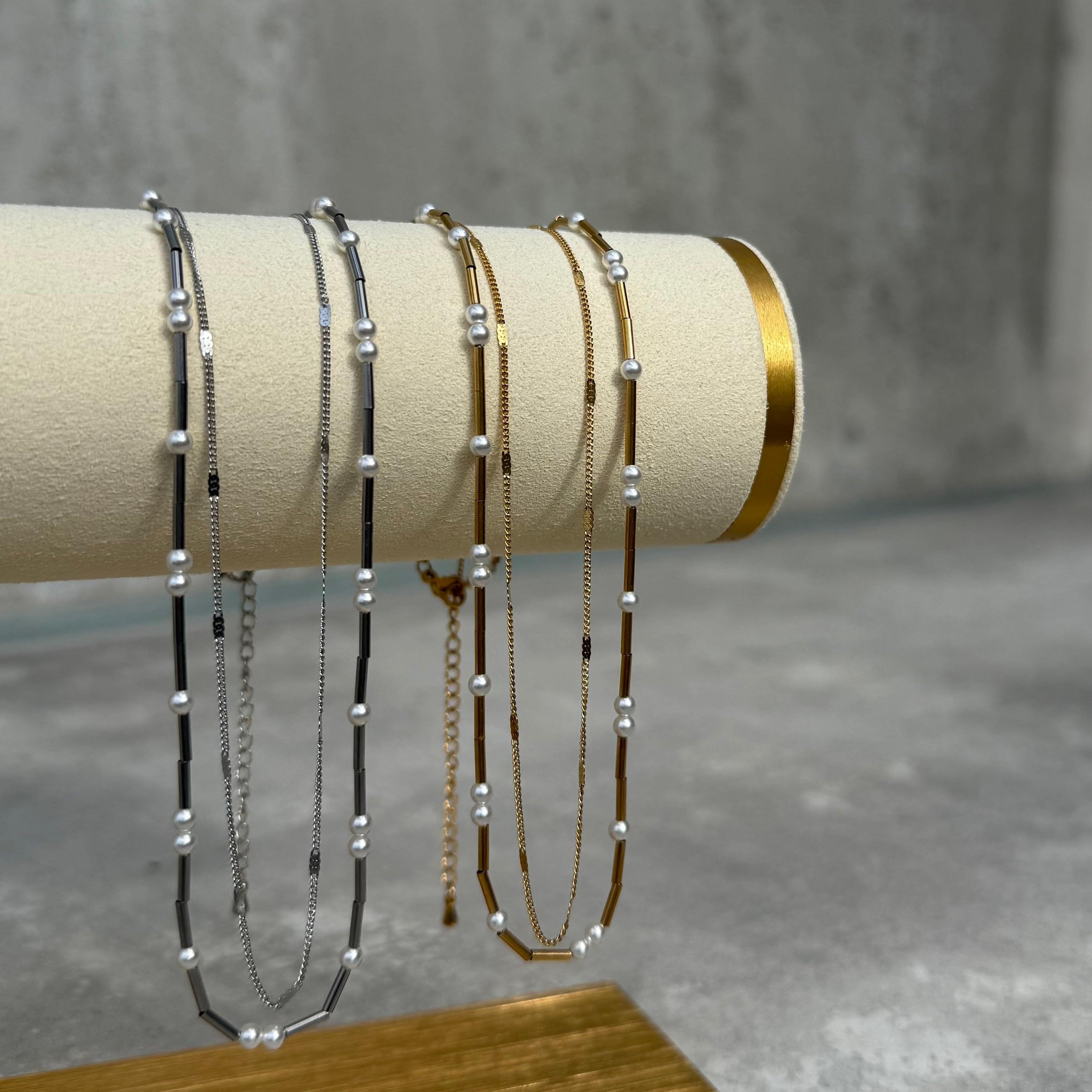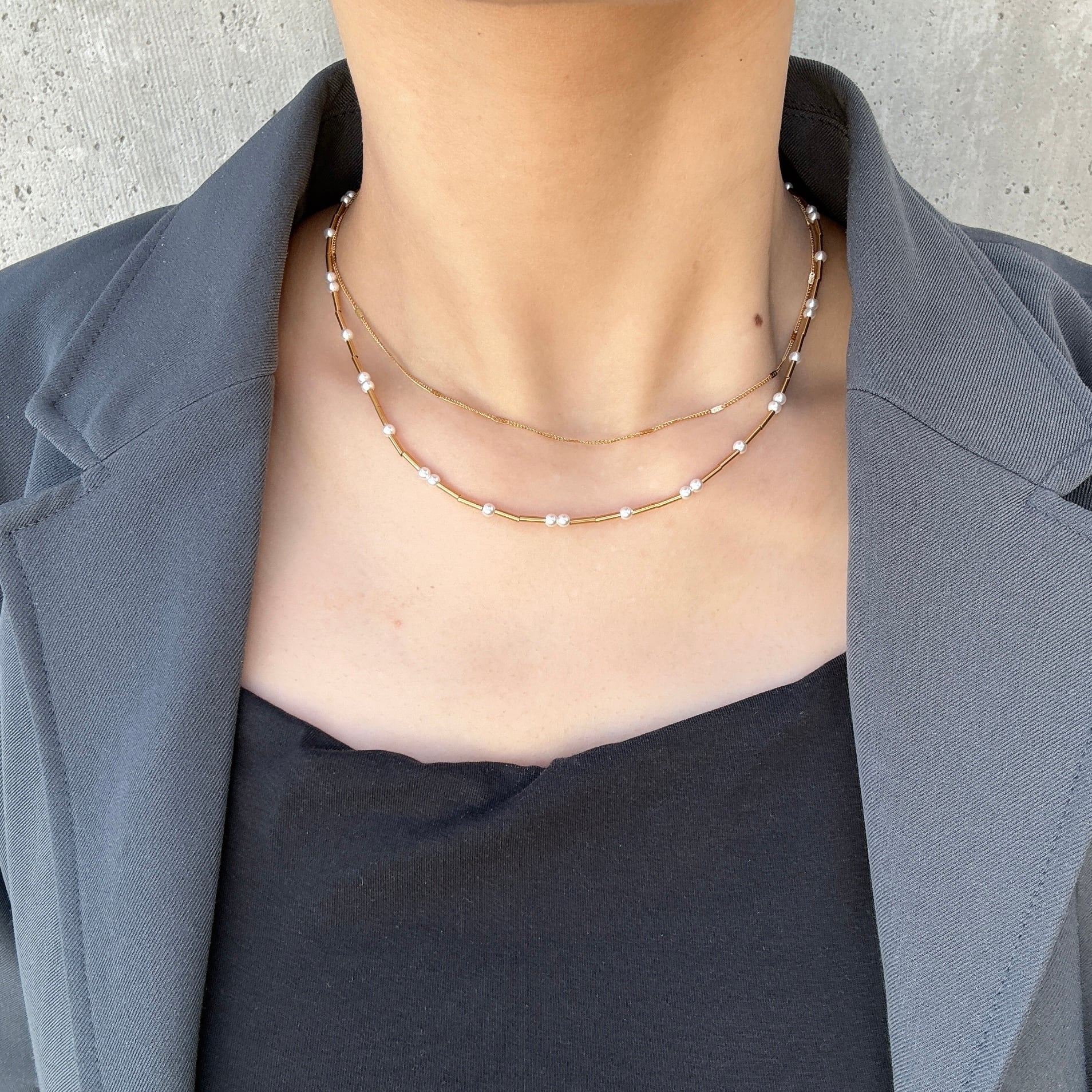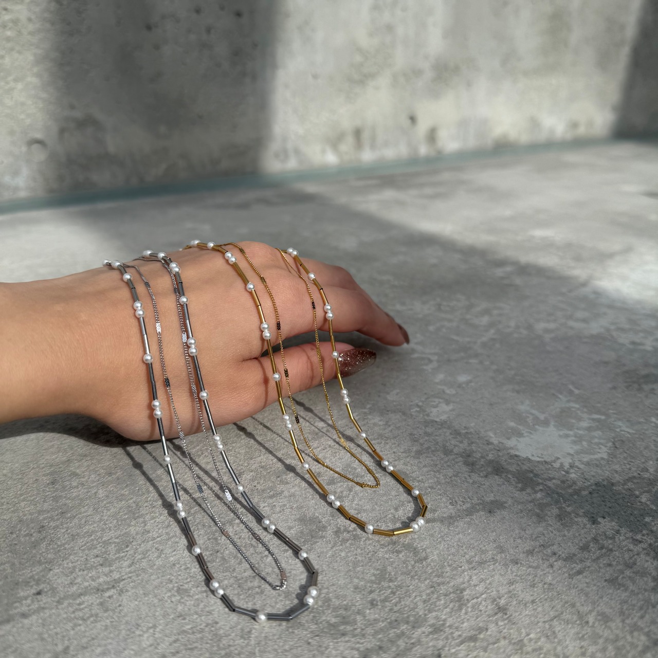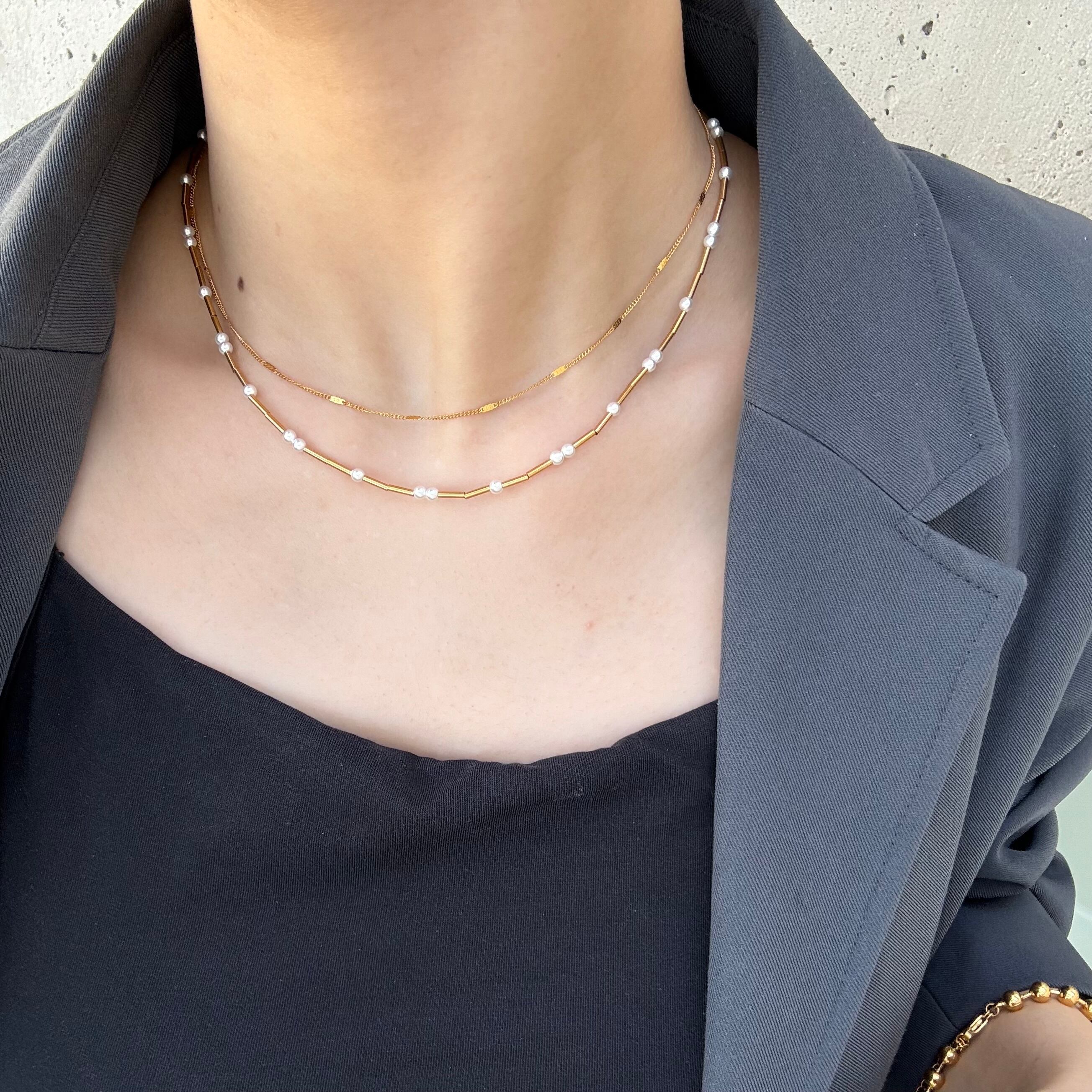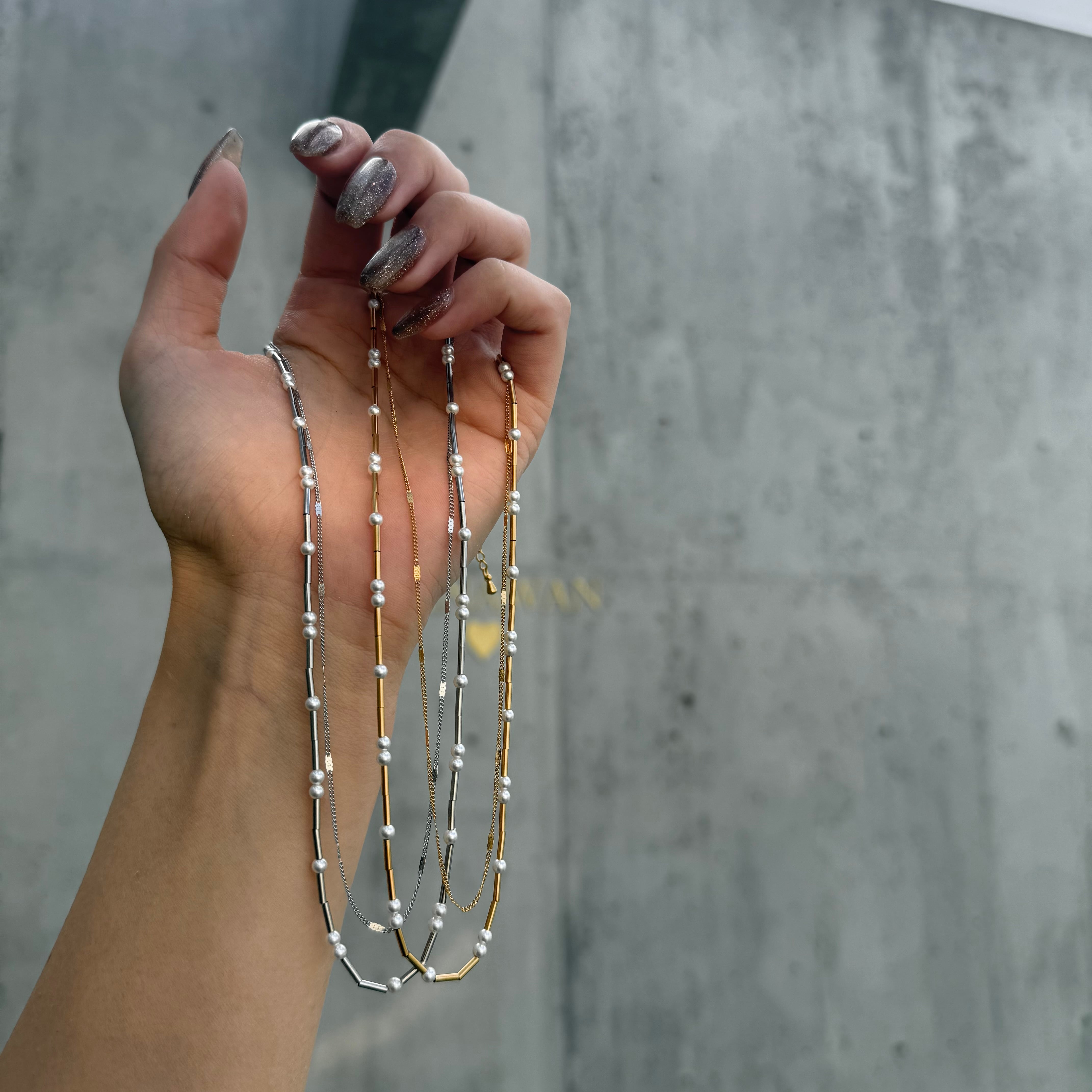 肌馴染みの良いチェーンと存在感のあるパール
