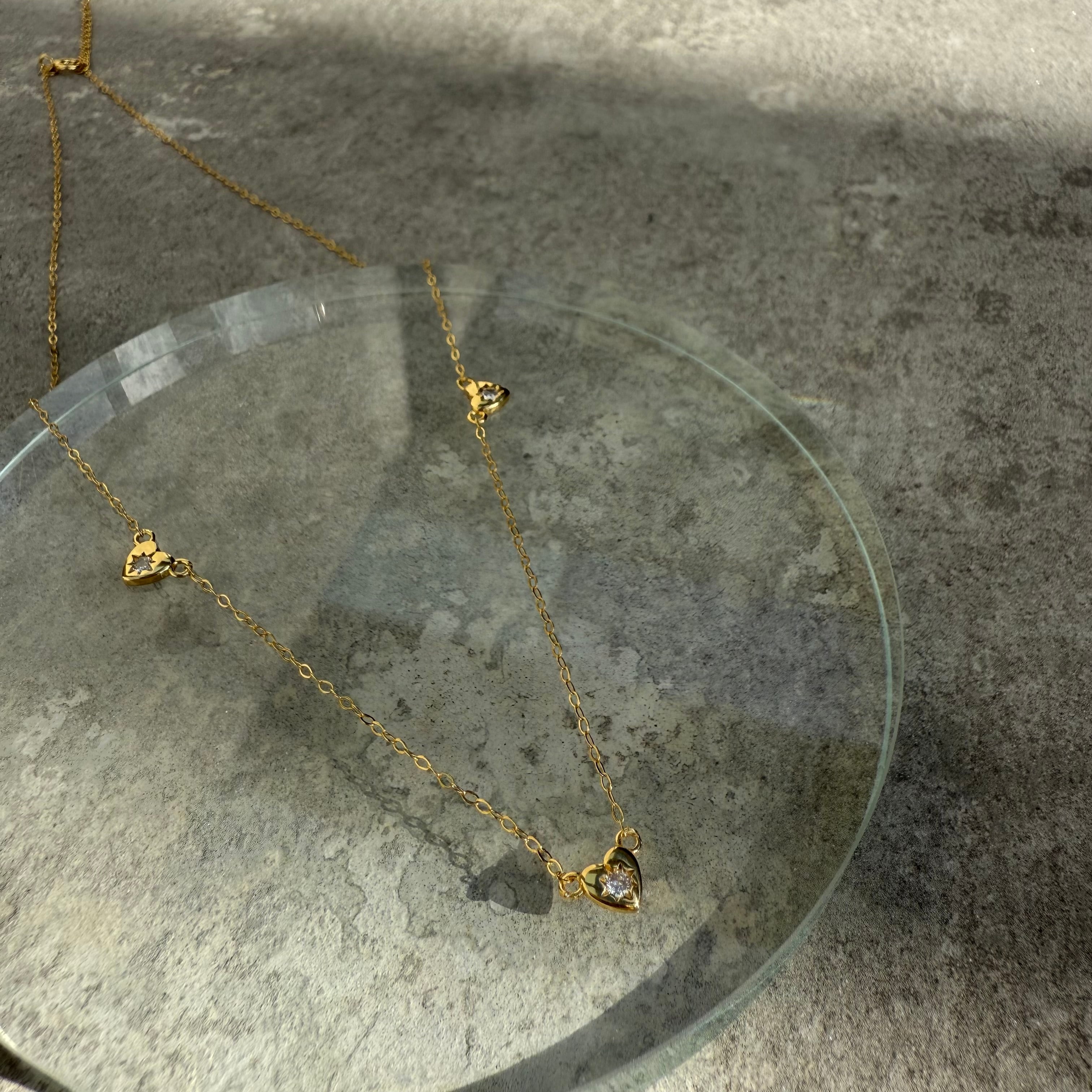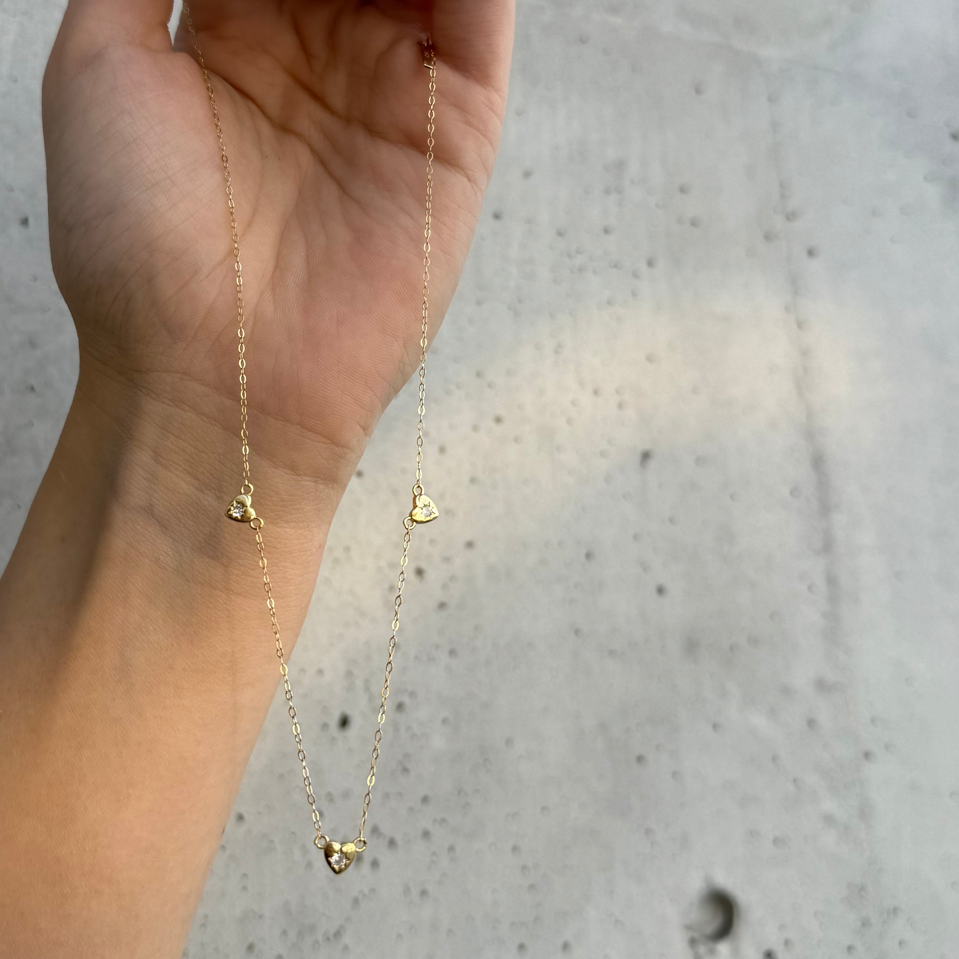 きらっと輝く3つのハートで顔まわりを可愛く演出