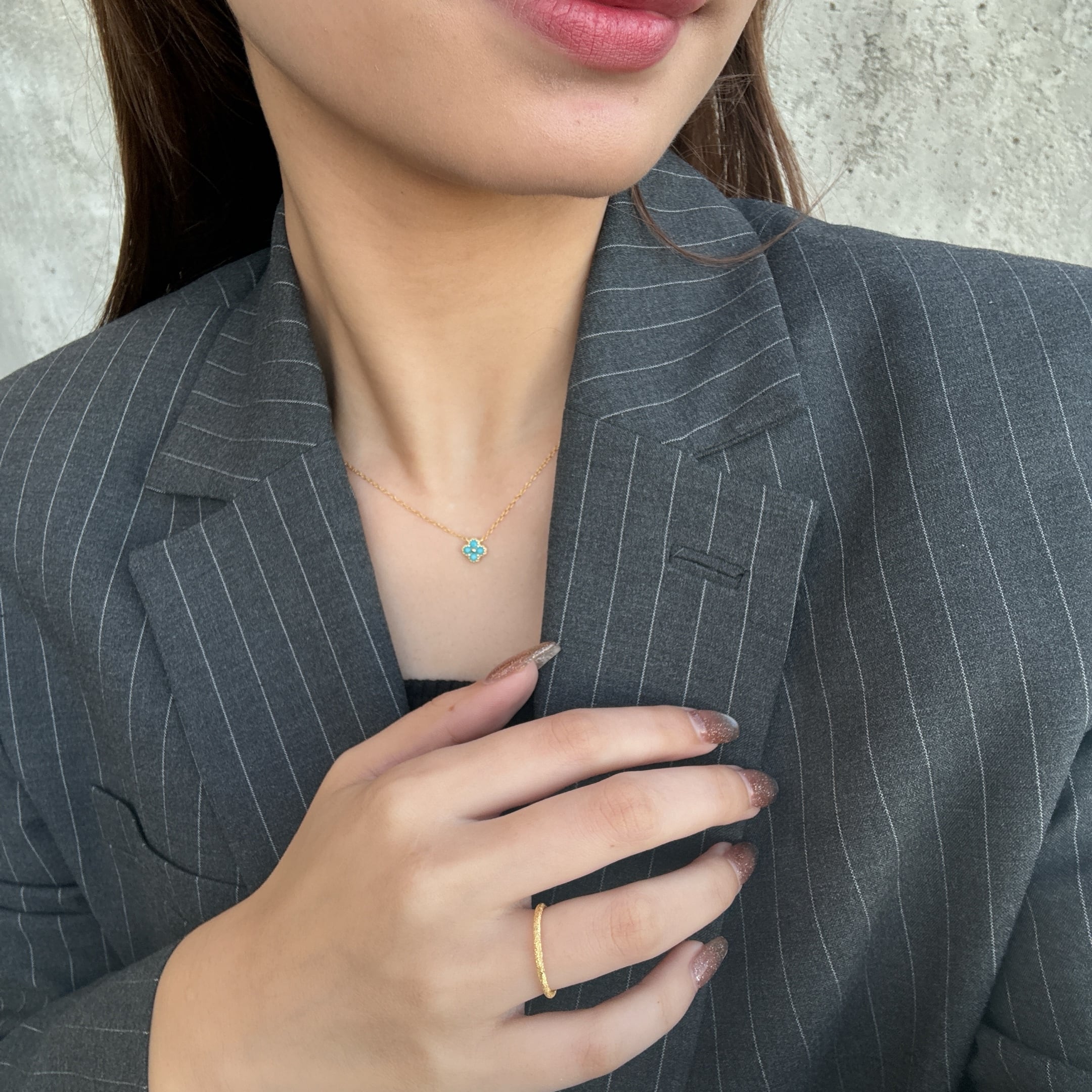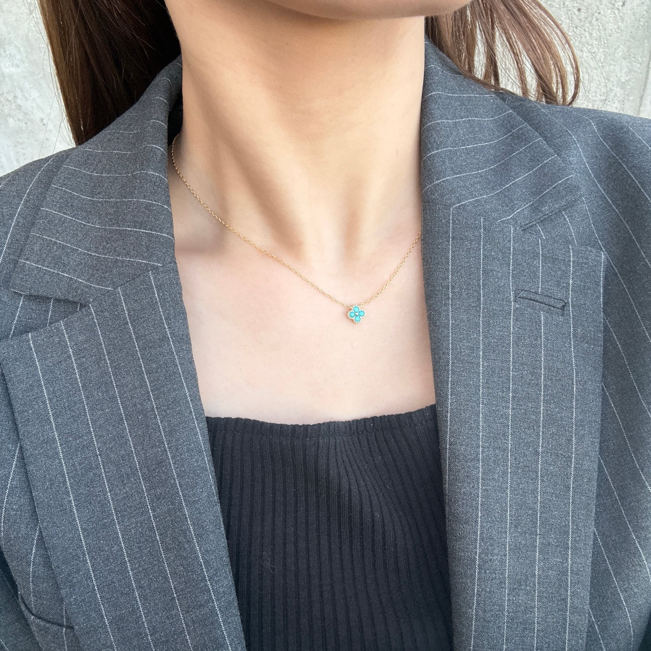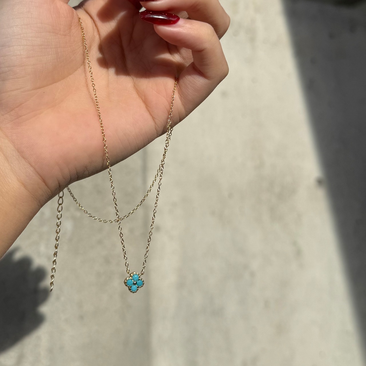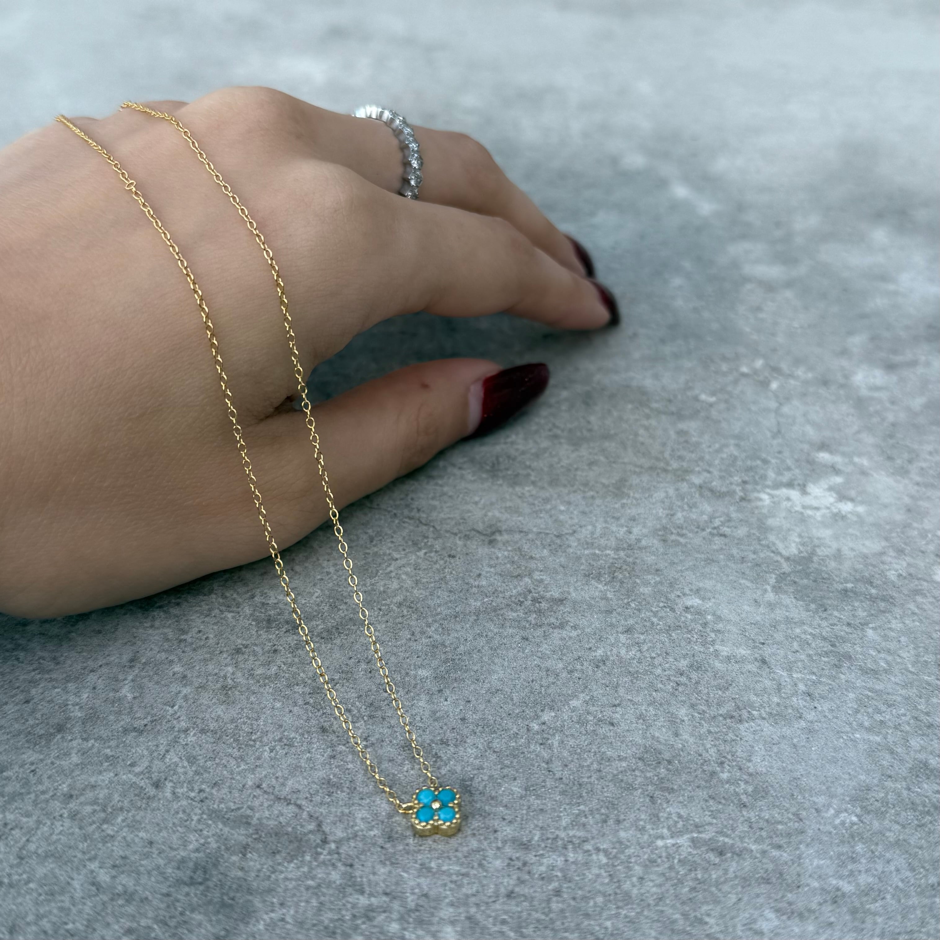 ターコイズカラーのフラワーネックレス