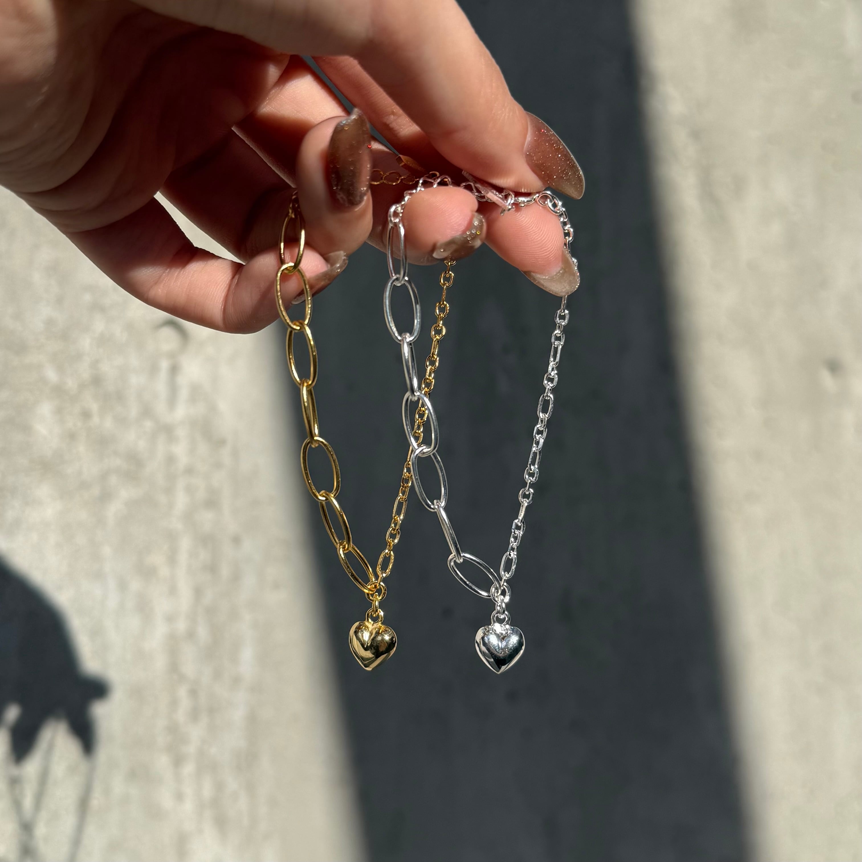 ぷっくりハート×ゴツメチェーンが