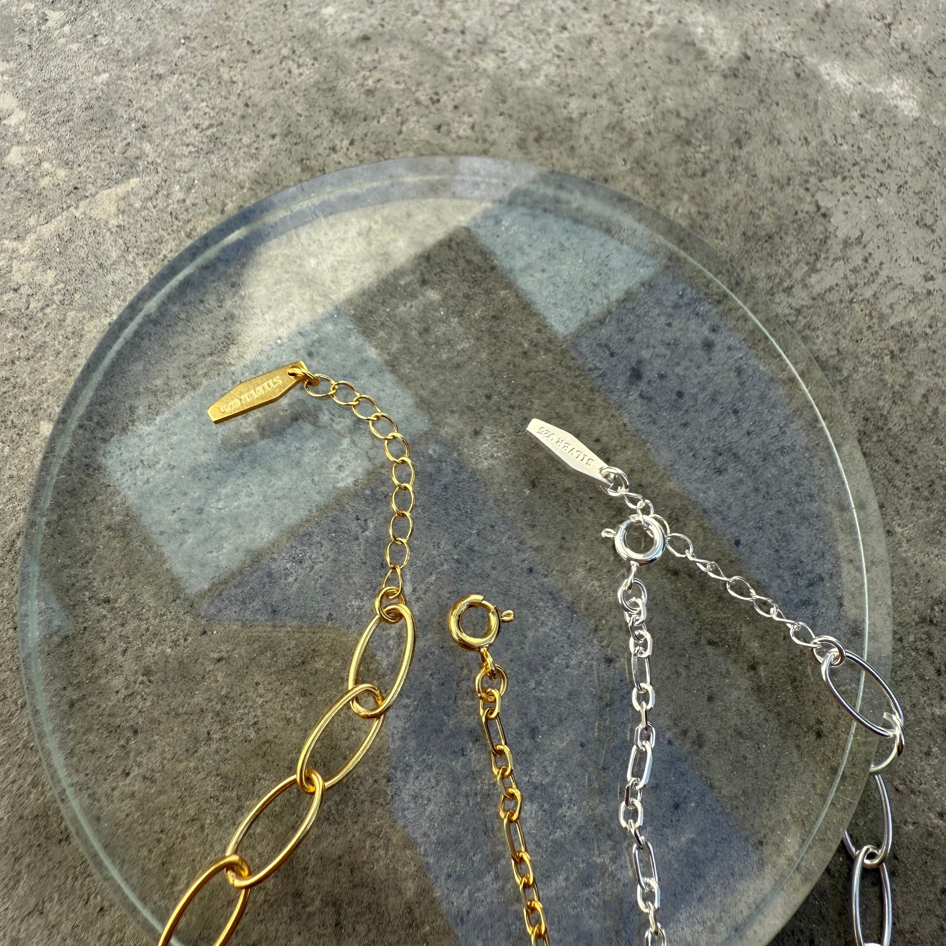 左右でデザインの異なるチェーンに