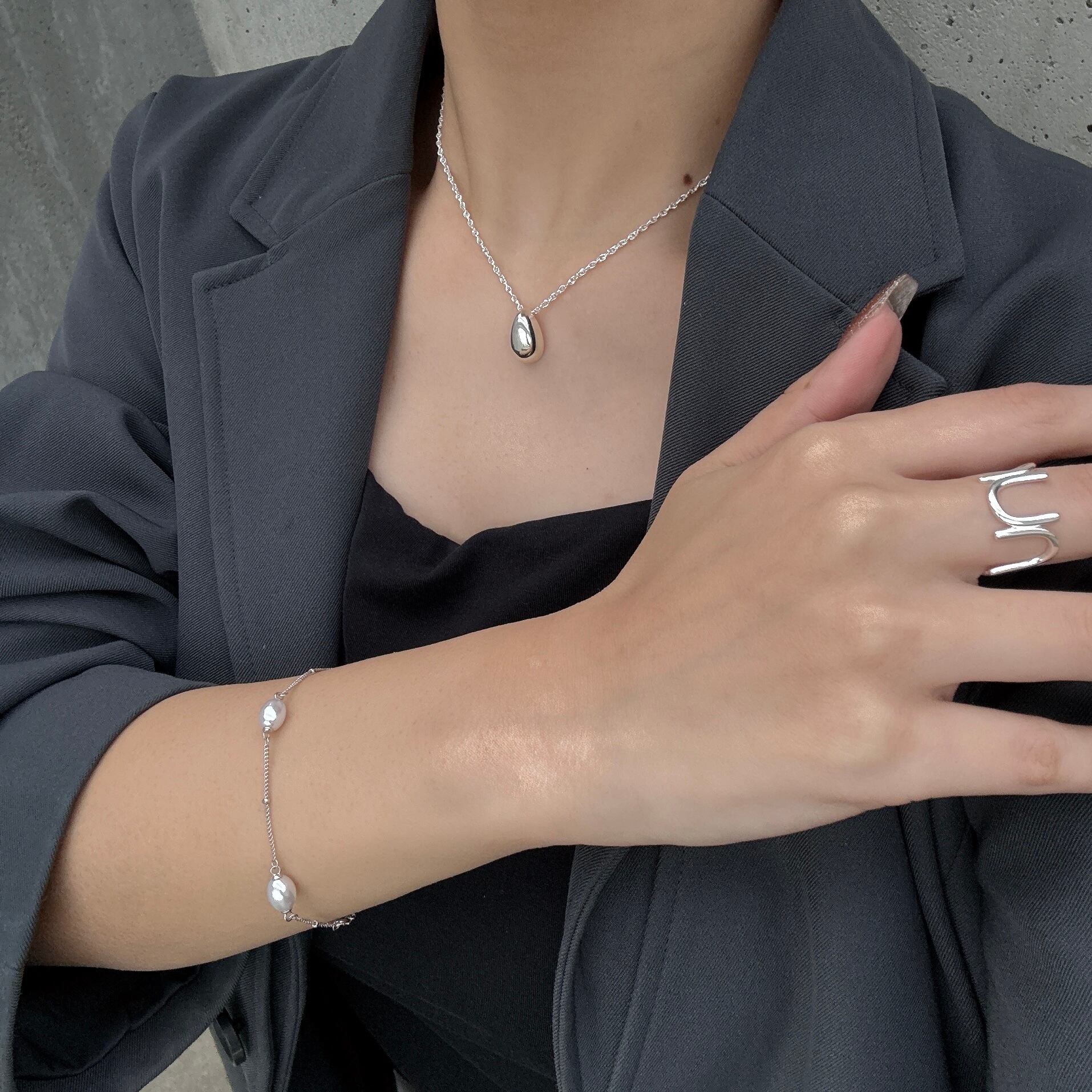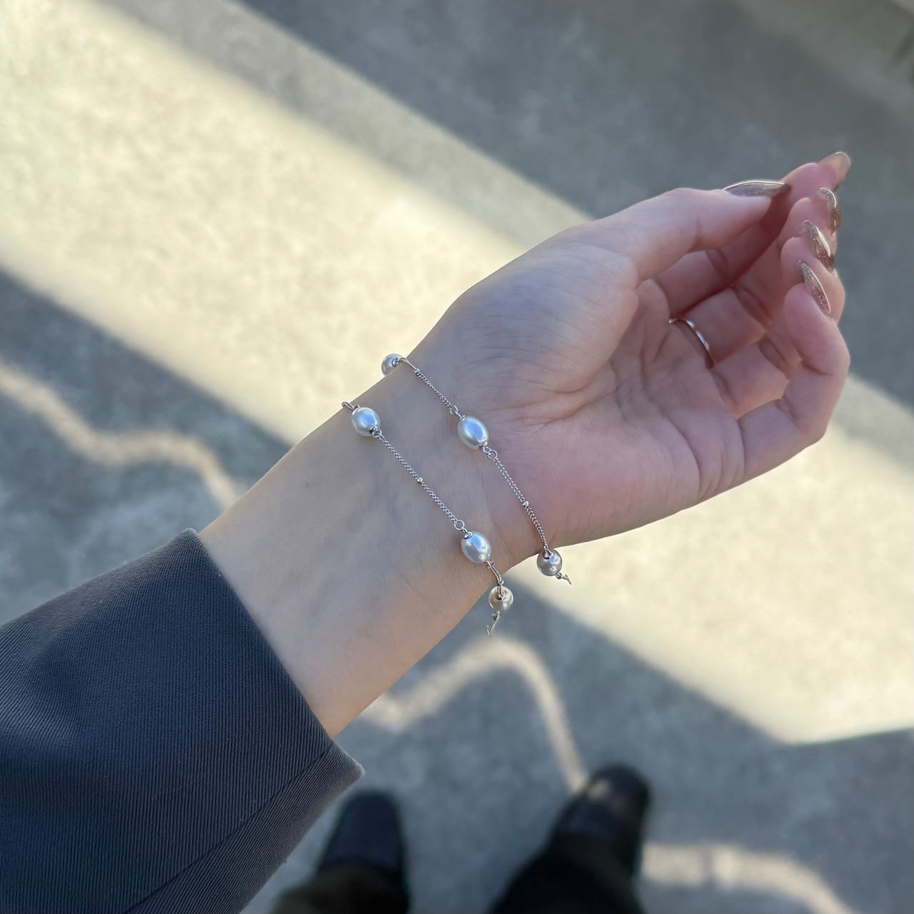 パールの上品な光沢感が、特別な日のスタイルを