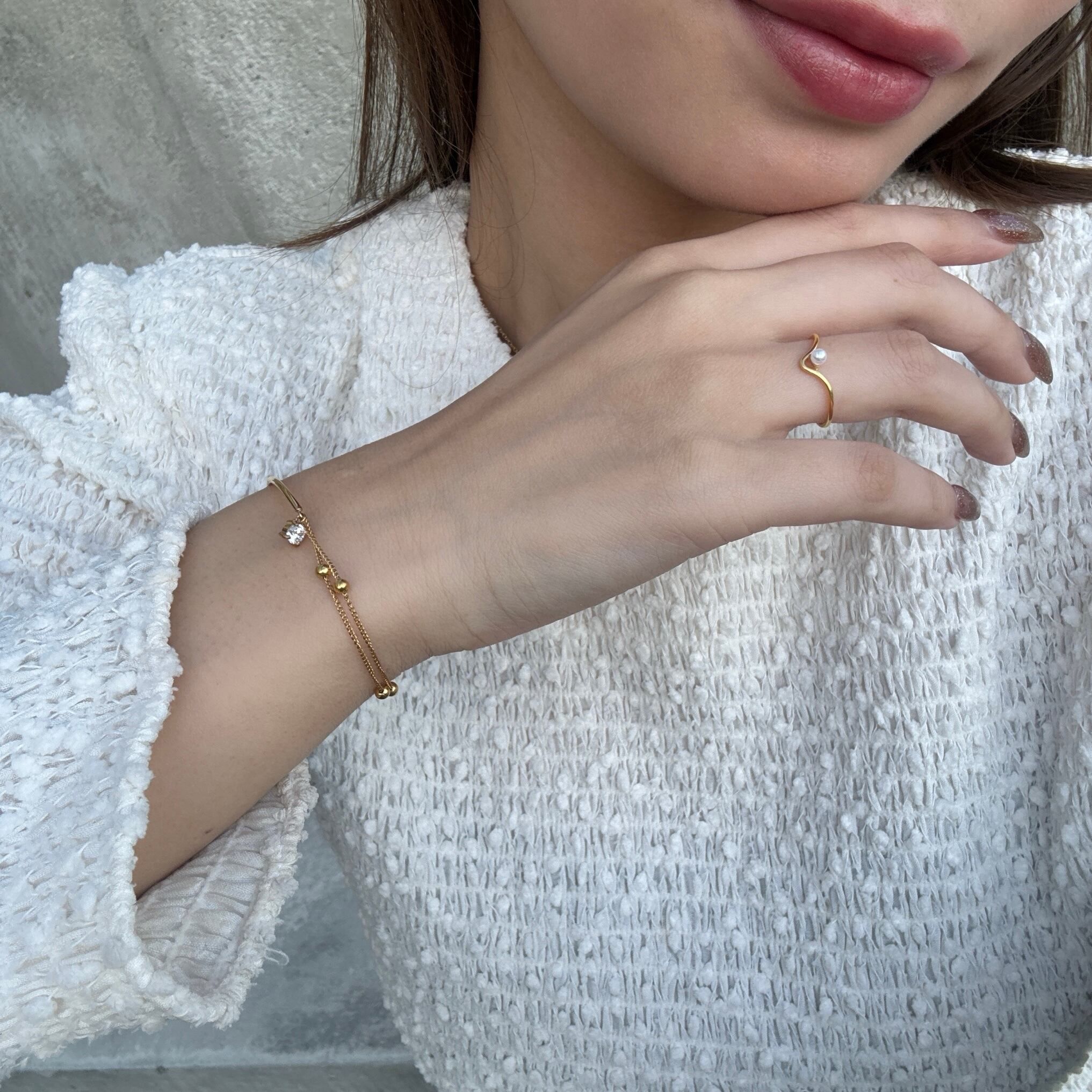 ポイントでついた一粒ジルコニアがきれいにデザインをひきしめてくれています