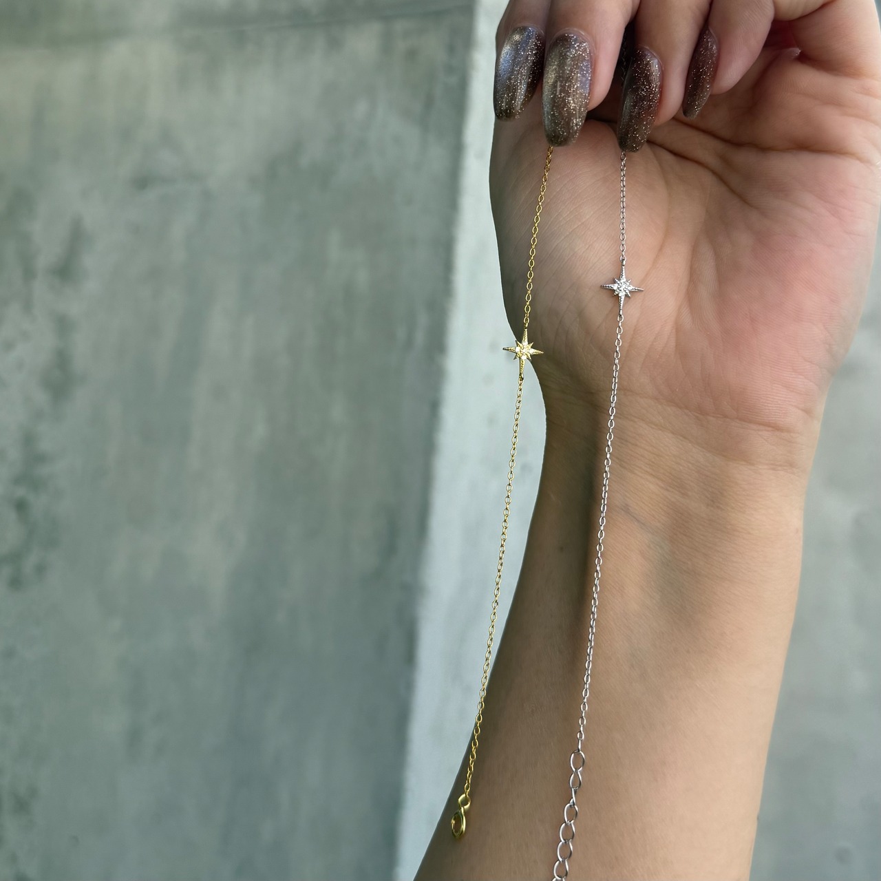 スターモチーフのチャームがさり気なく手元で輝くブレスレット