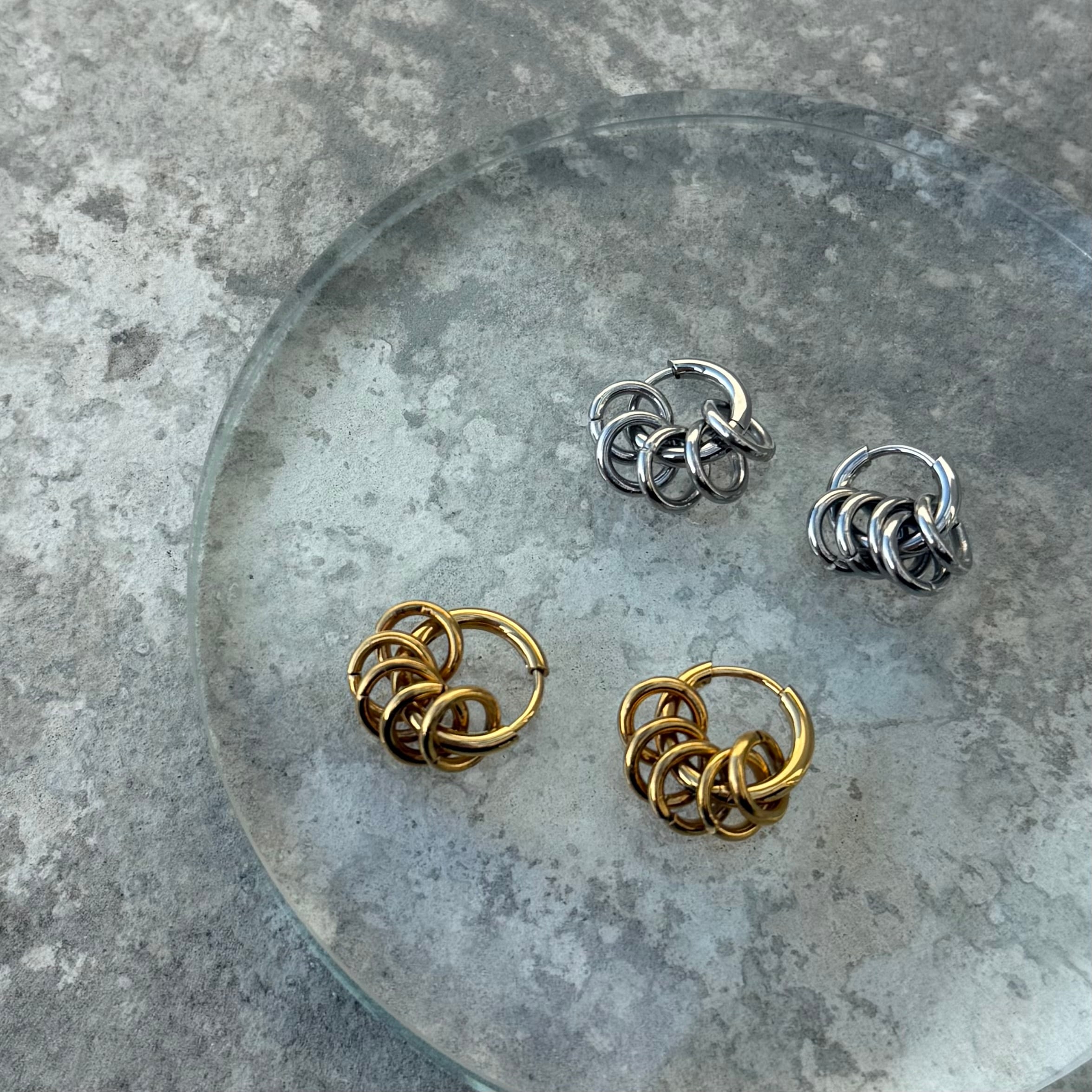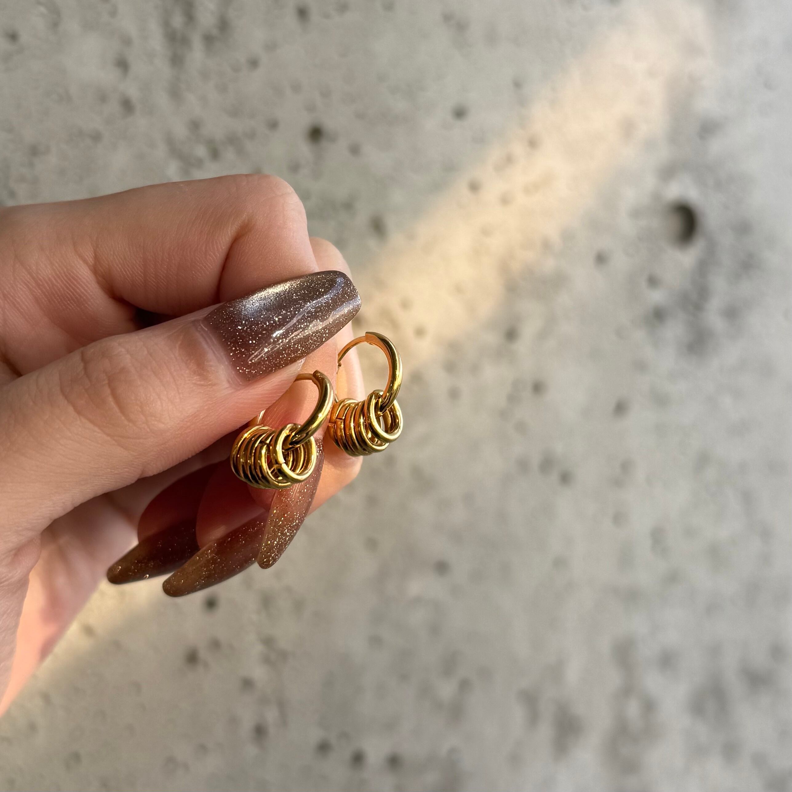 定番のシンプルフープに5つのリングがついたピアス