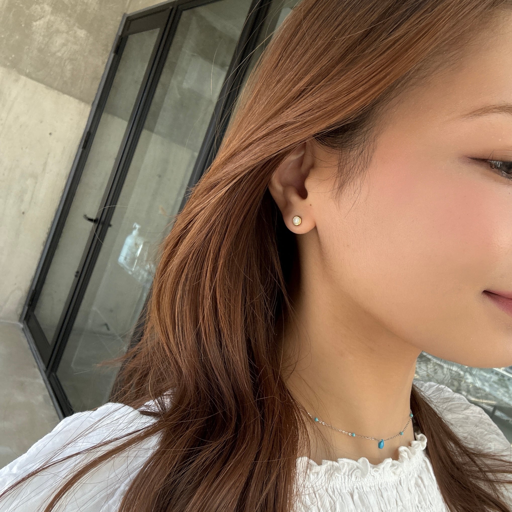 光の当たり具合でオパールがキラキラ顔まわりにさり気ない彩りをプラス