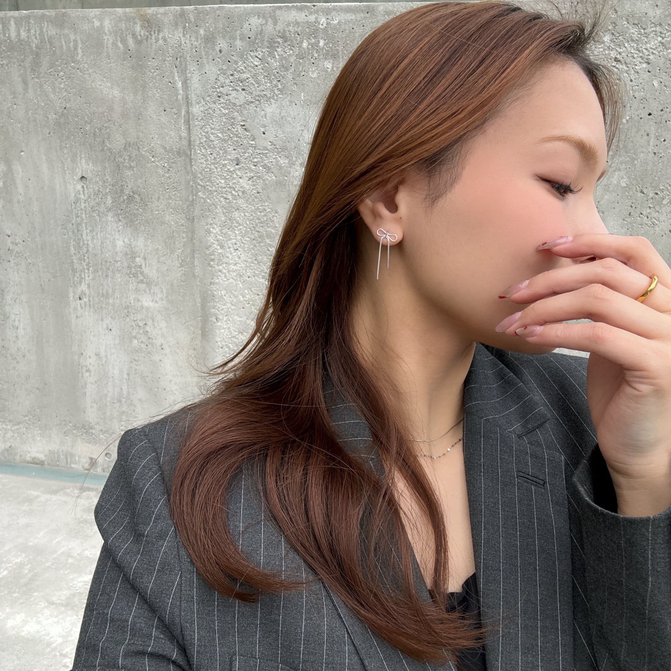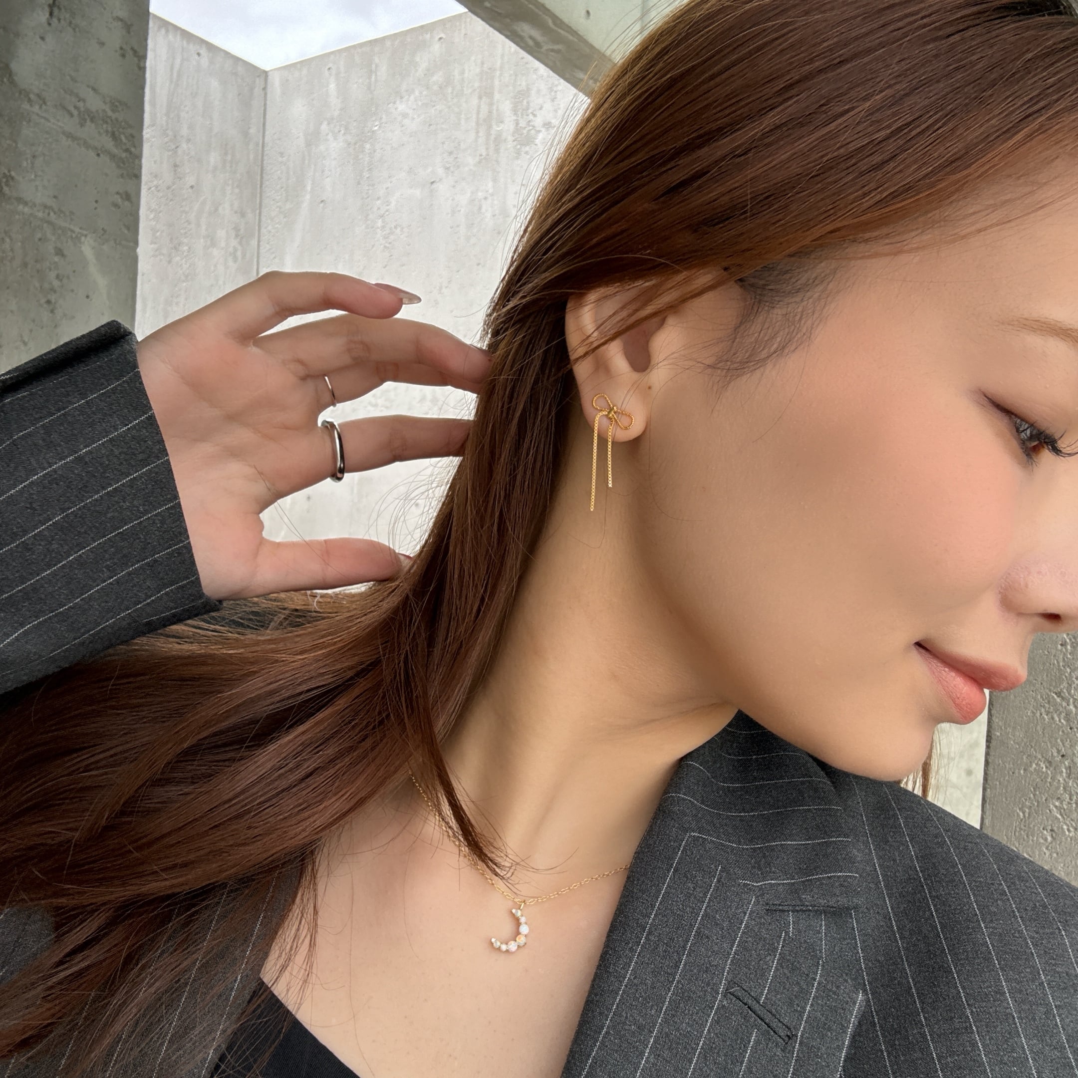 繊細なリボンチェーンがゆらゆらと揺れて顔まわりを華やかに演出してくれます