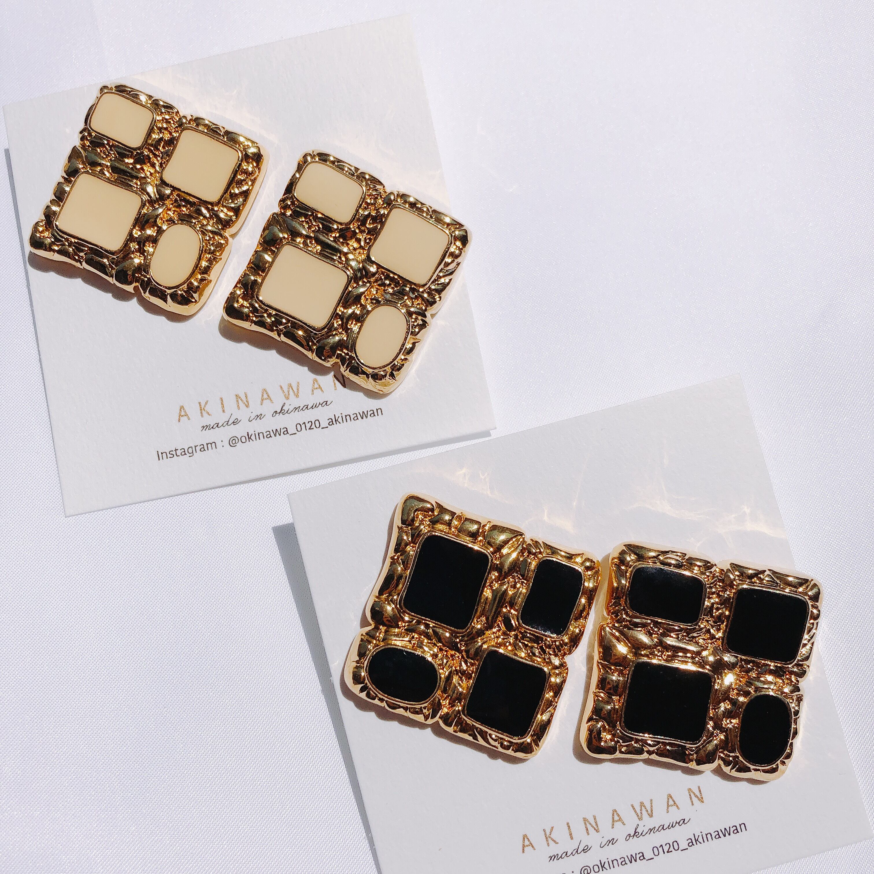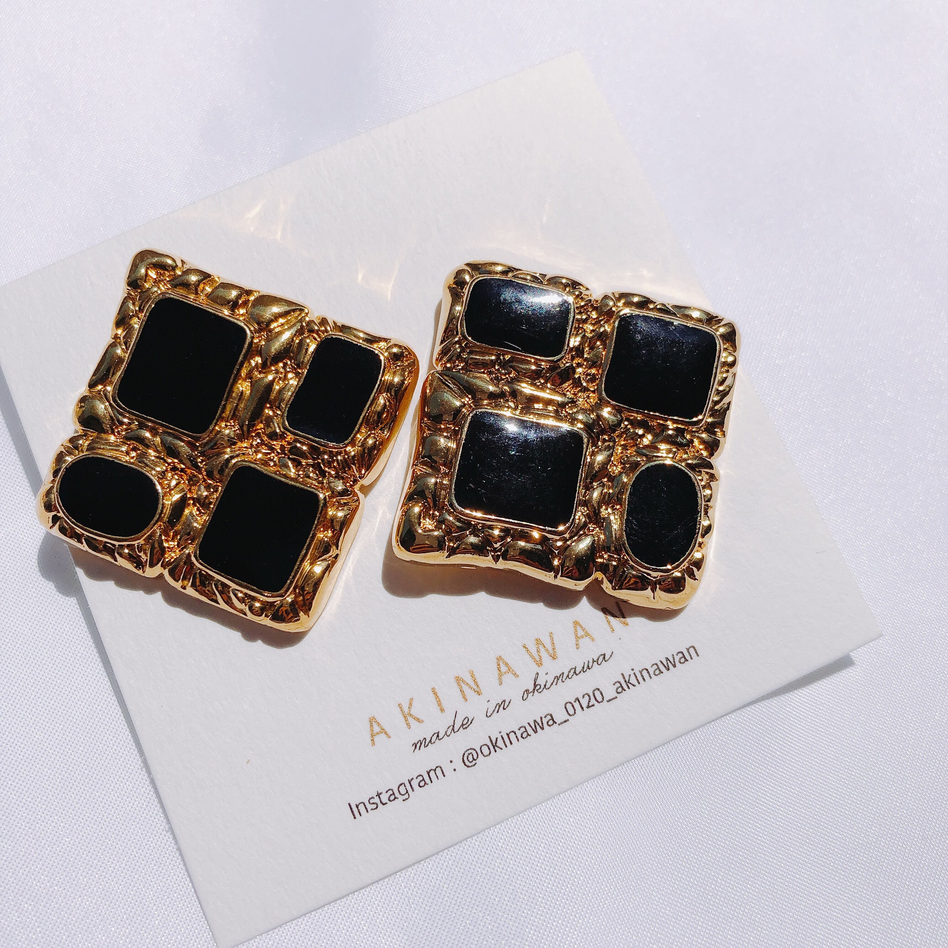 ヴィンテージのレアなボタンで作ったスクエアーピアス♡