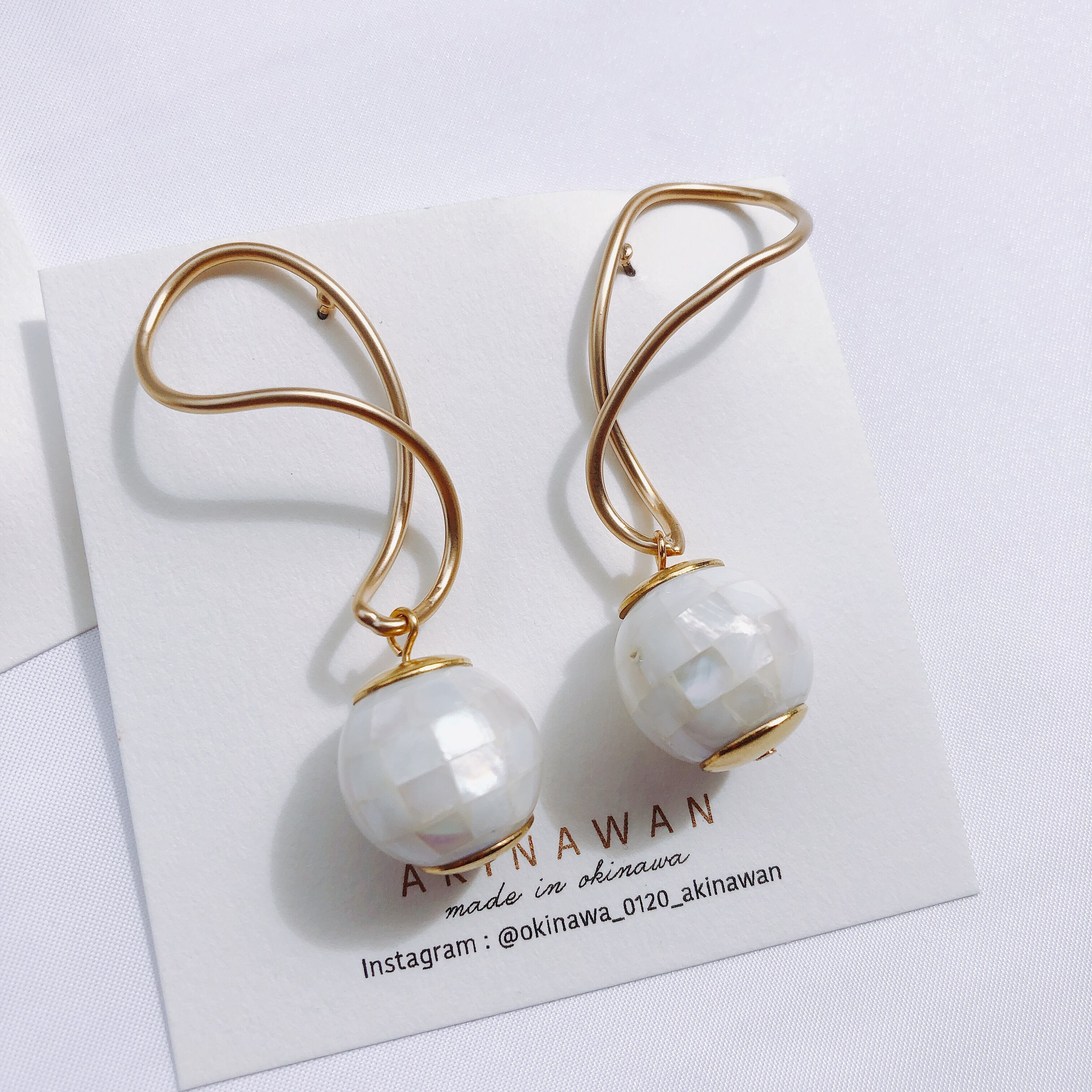 綺麗なモザイク シェルのビーズは光の当たり具合でキラキラ光りますよ♡