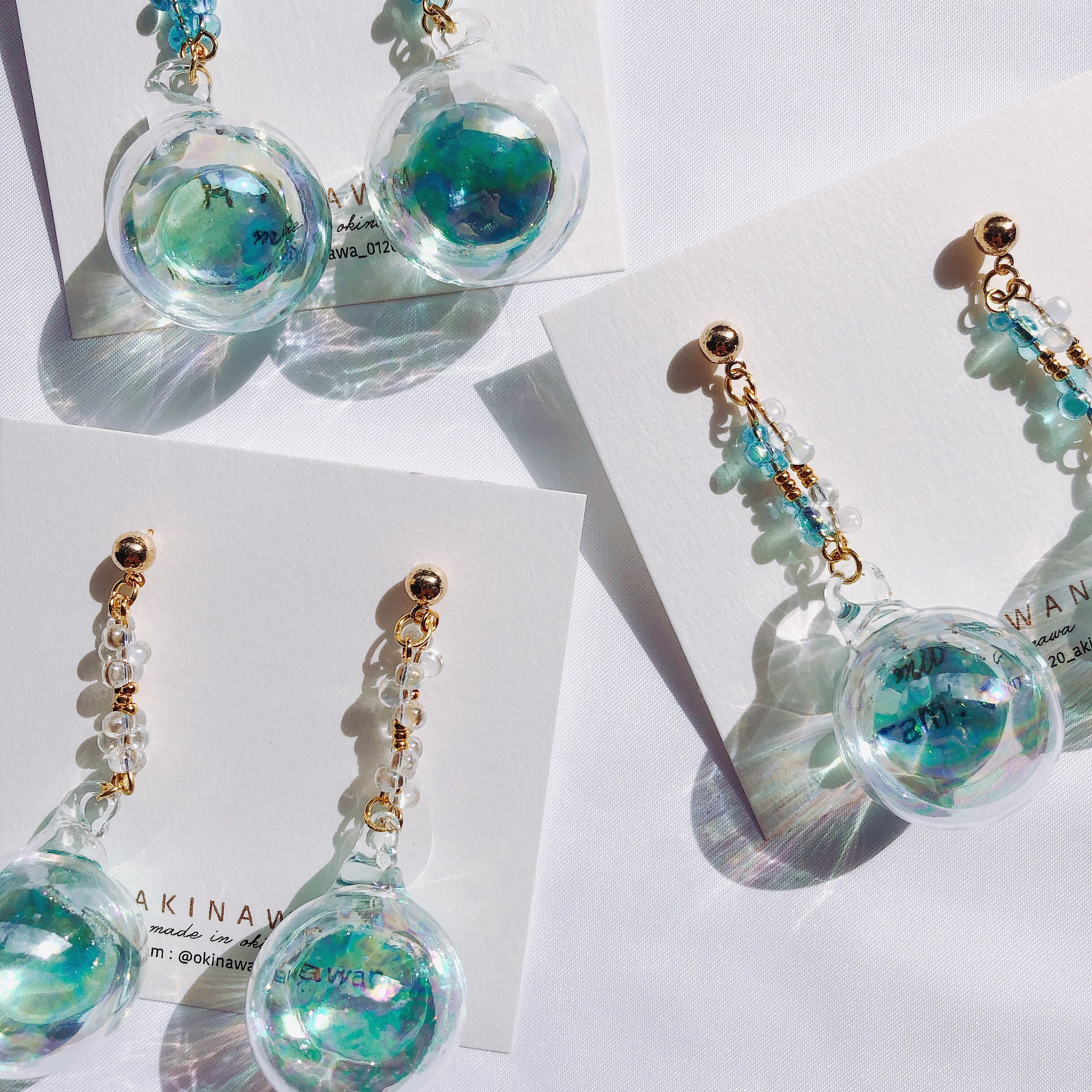 バブルの玉の中には液体とゼリー状の玉が入っていて、太陽や光でオーロラカラーにキラキラと光ってくれてとーっても綺麗です♡