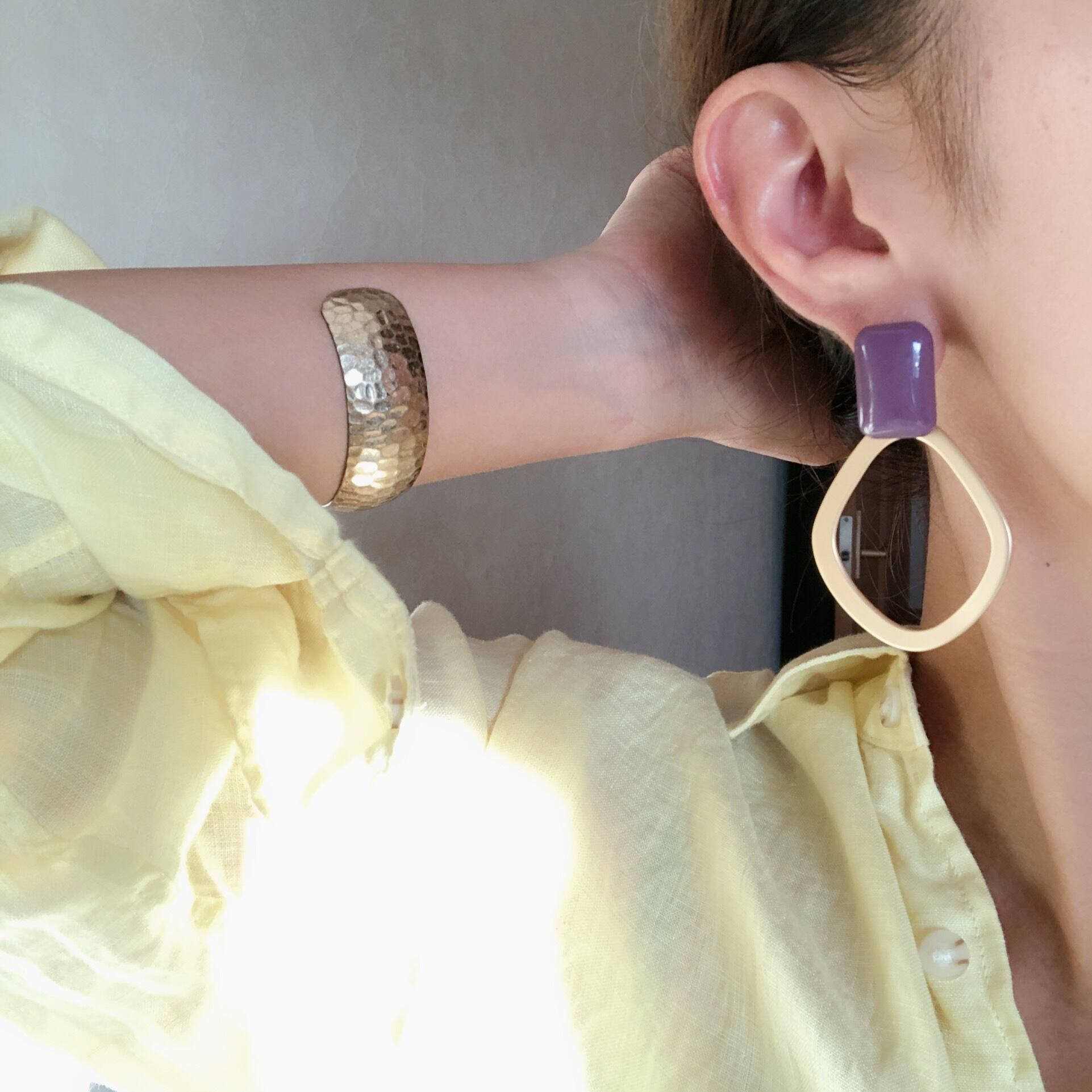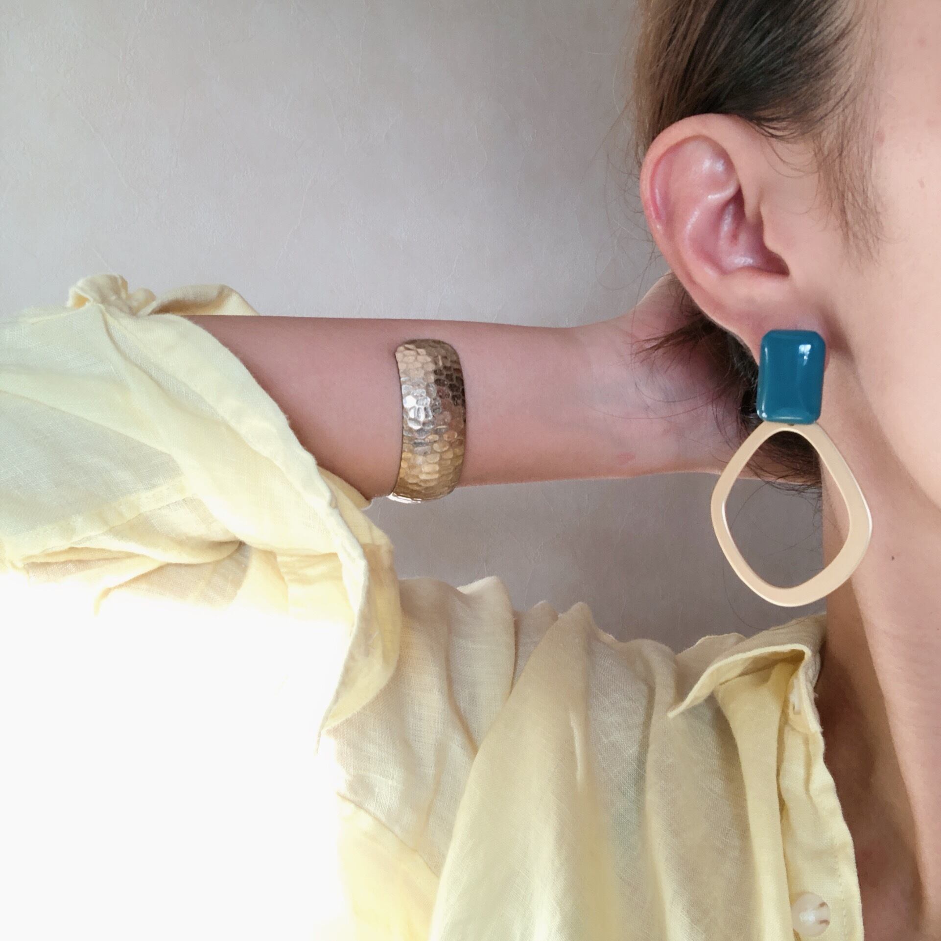ゴールドのフープはマッドな質感で大人っぽい雰囲気です♡