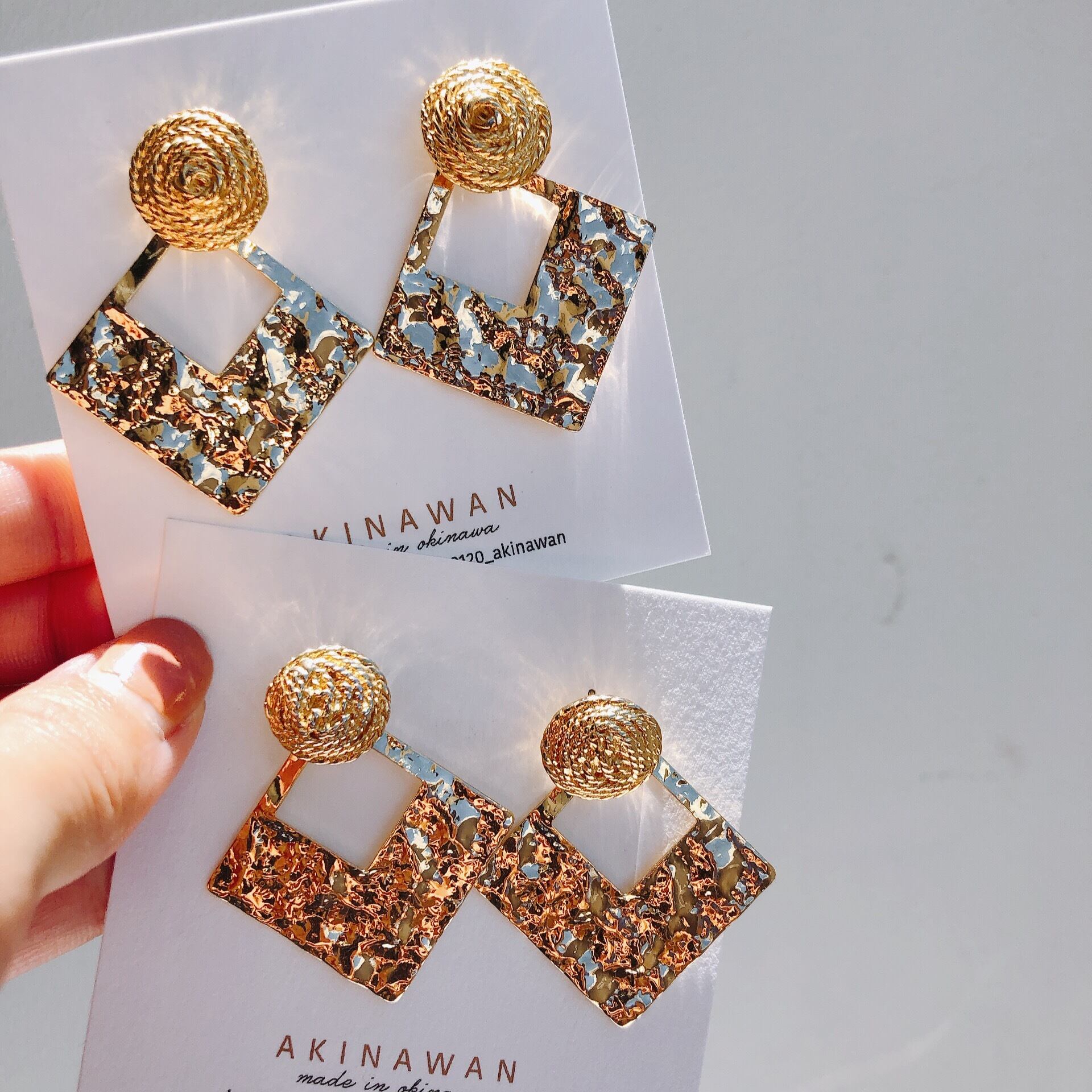 小ぶりで軽くて付けやすいピアスになってます。