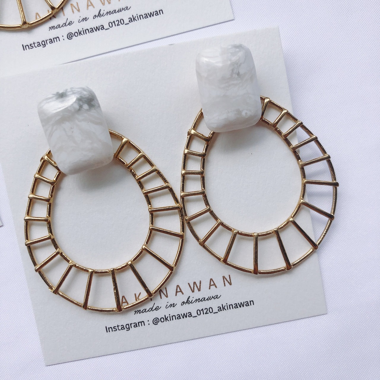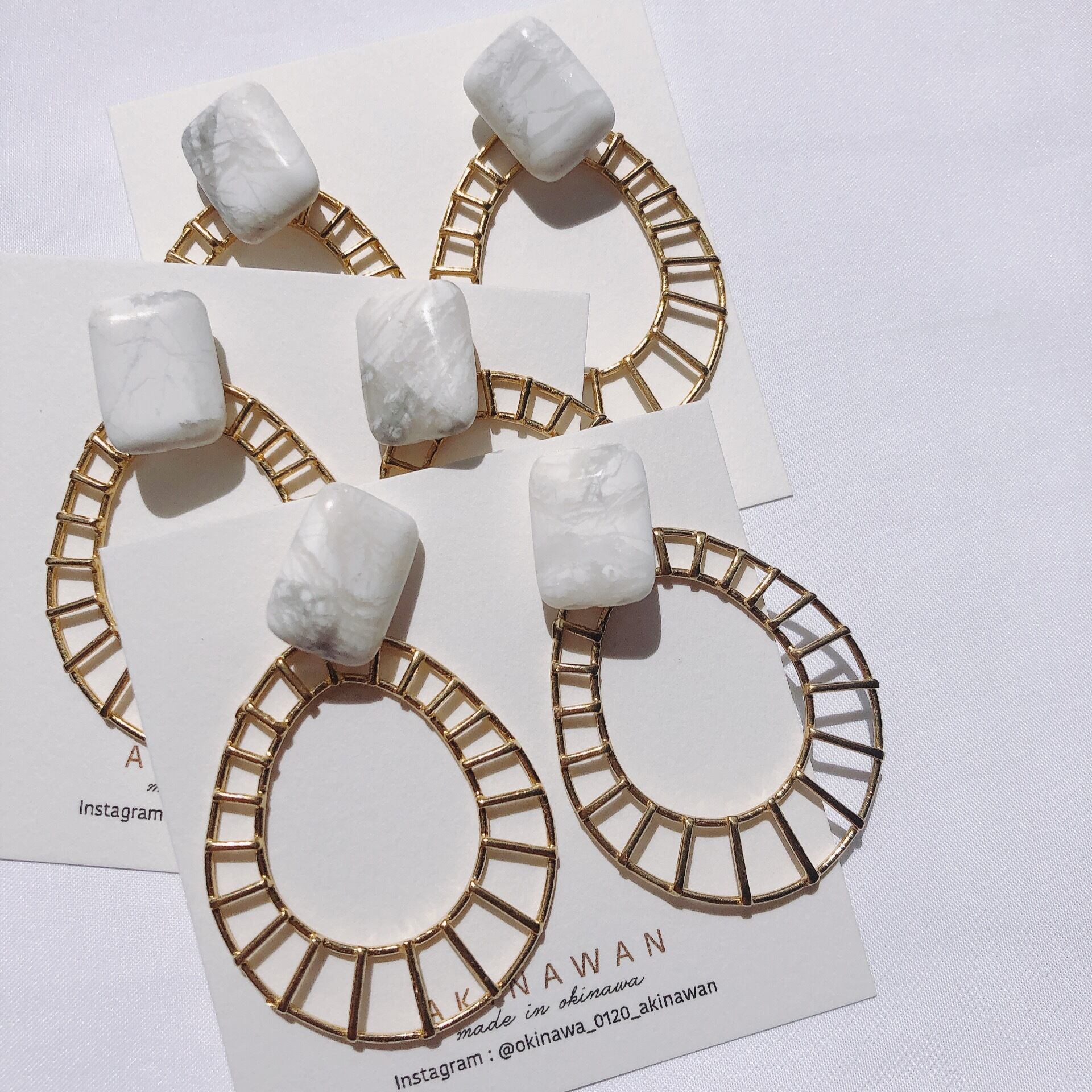 天然石のハウライトに生真鍮の珍しいフープ♡