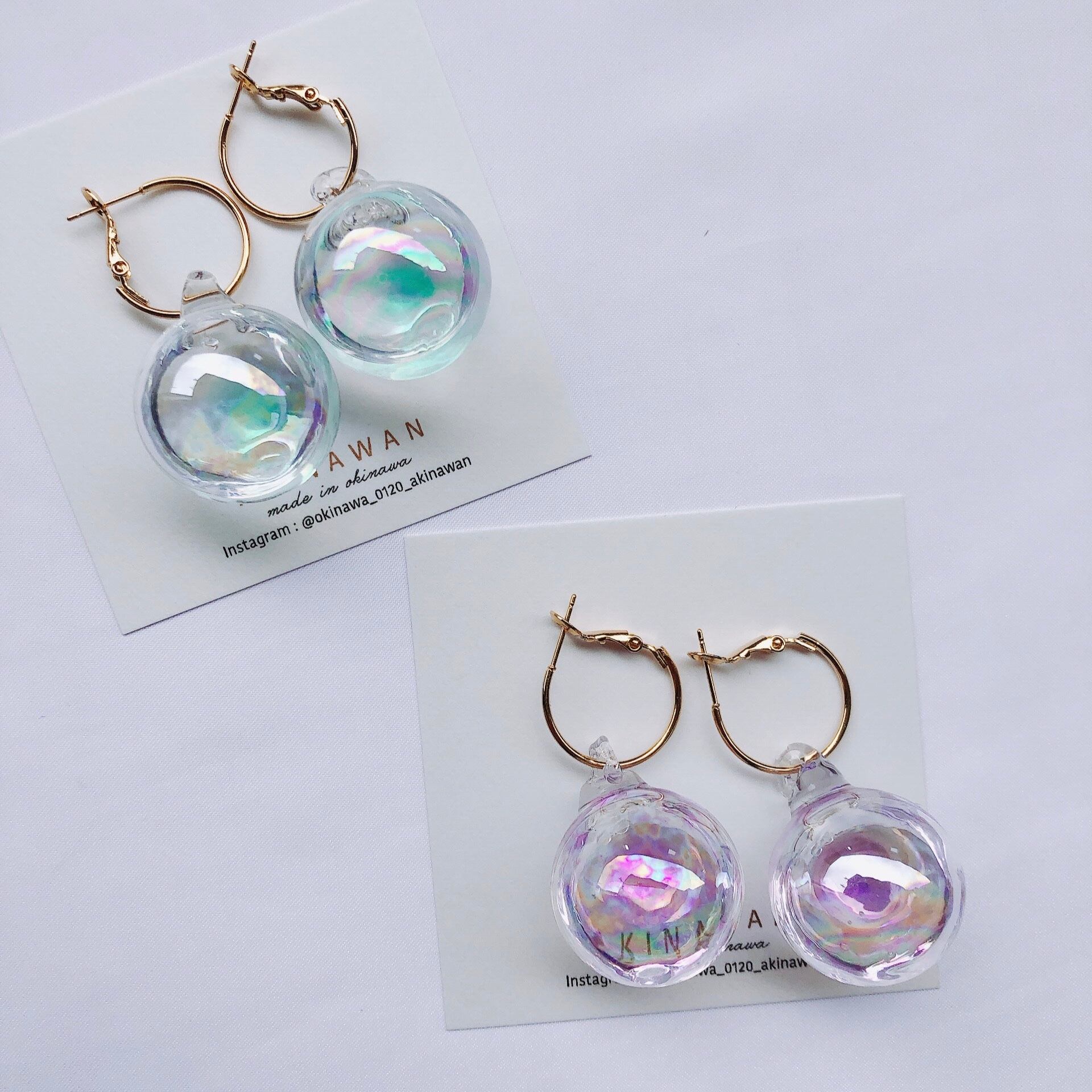 小さめフープに大ぶりなオーロラボールを合わせて付けやすいピアスに仕上げました♡