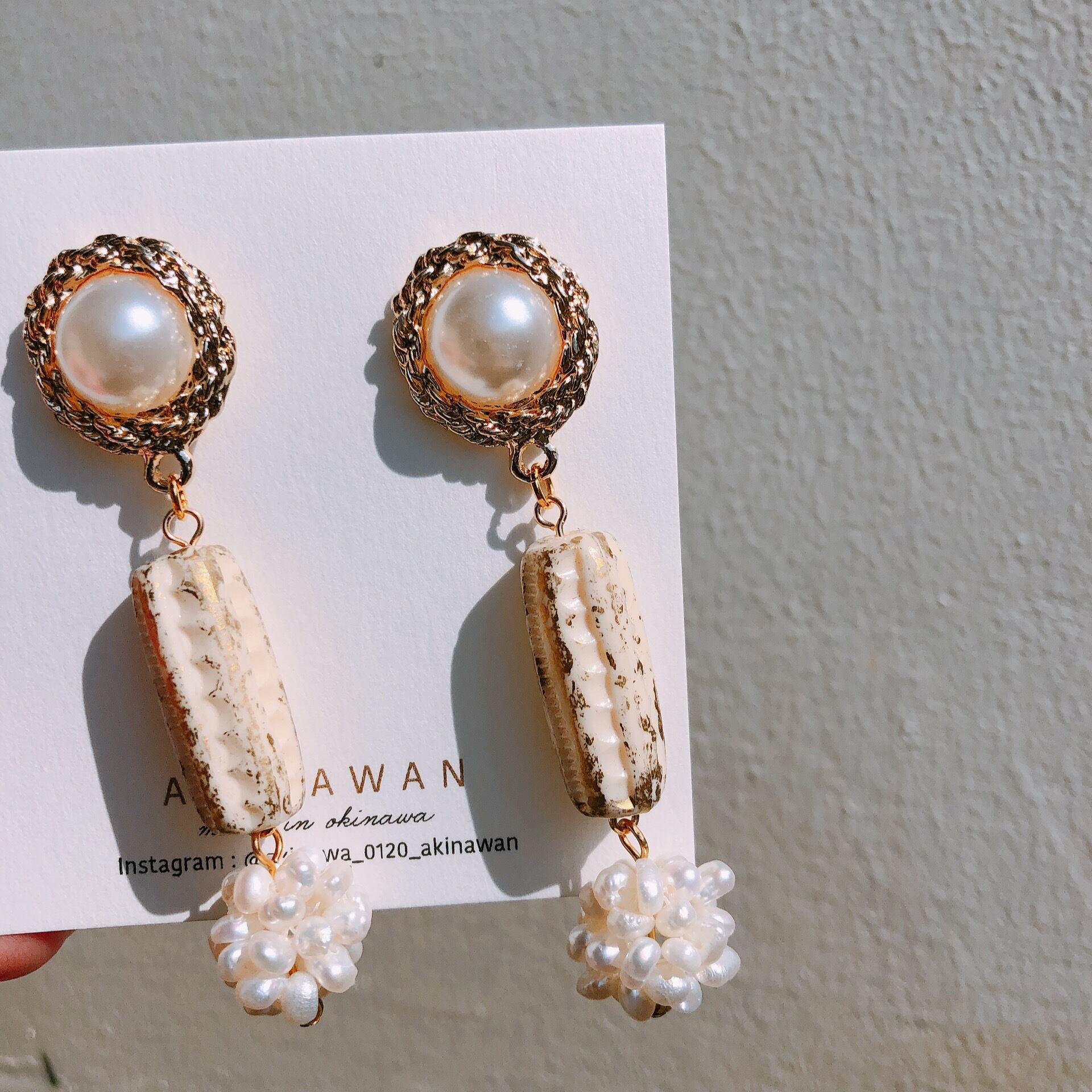 パールカボションは現行品にヴィンテージ のオフホワイトにゴールドの加工されたビーズに淡水パールをふんだんに使った淡水パールボールビーズ♡
