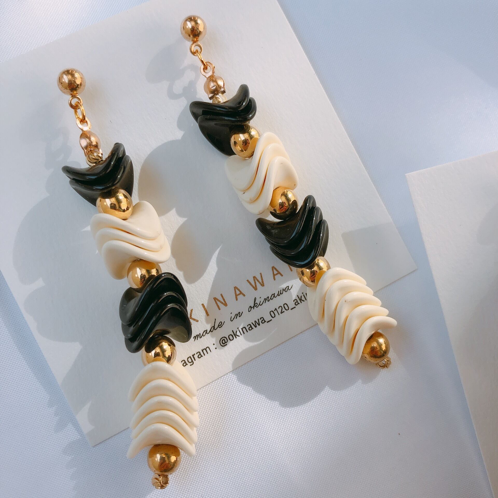 ホワイト×ブラックのピアスは何にでも合わせやすいです♡