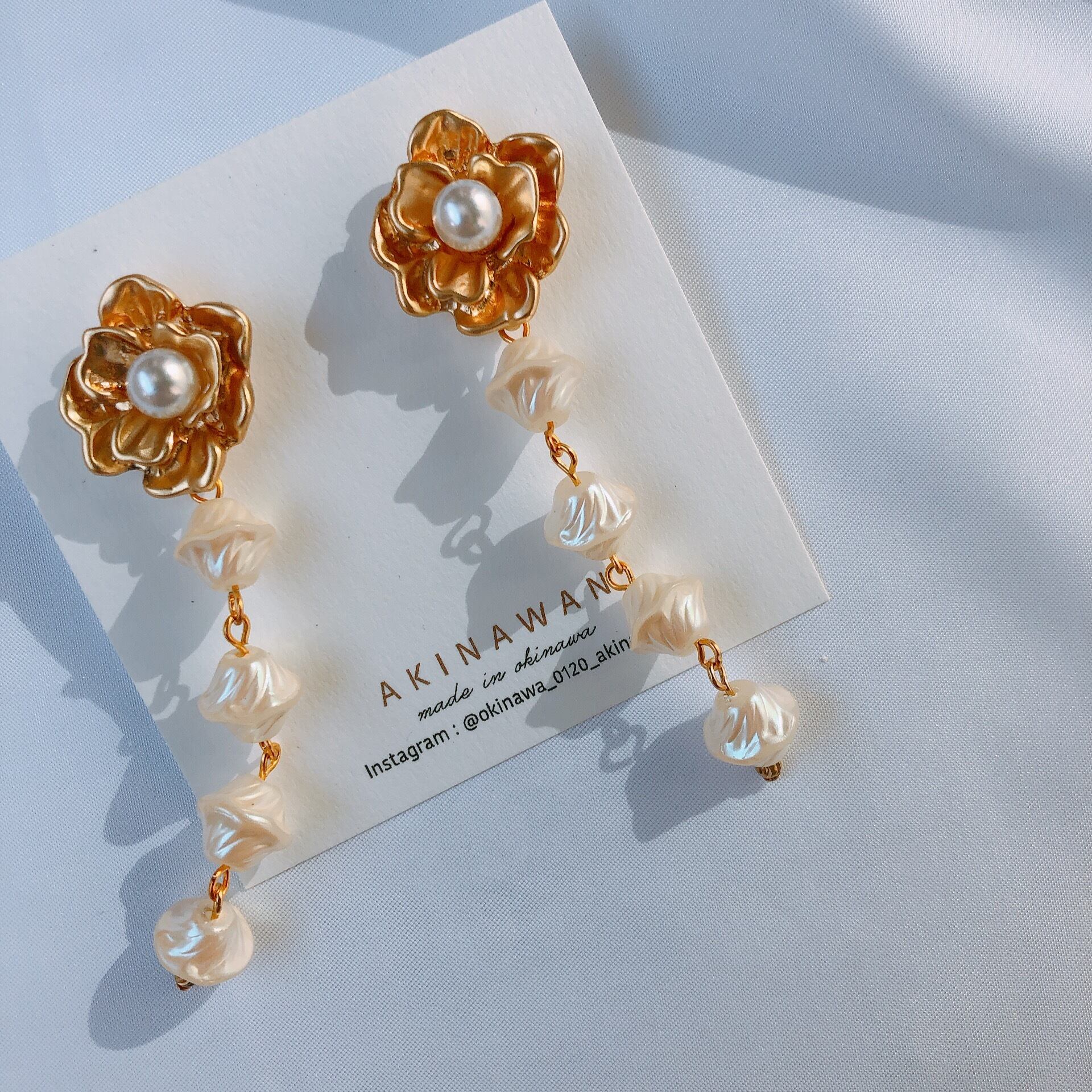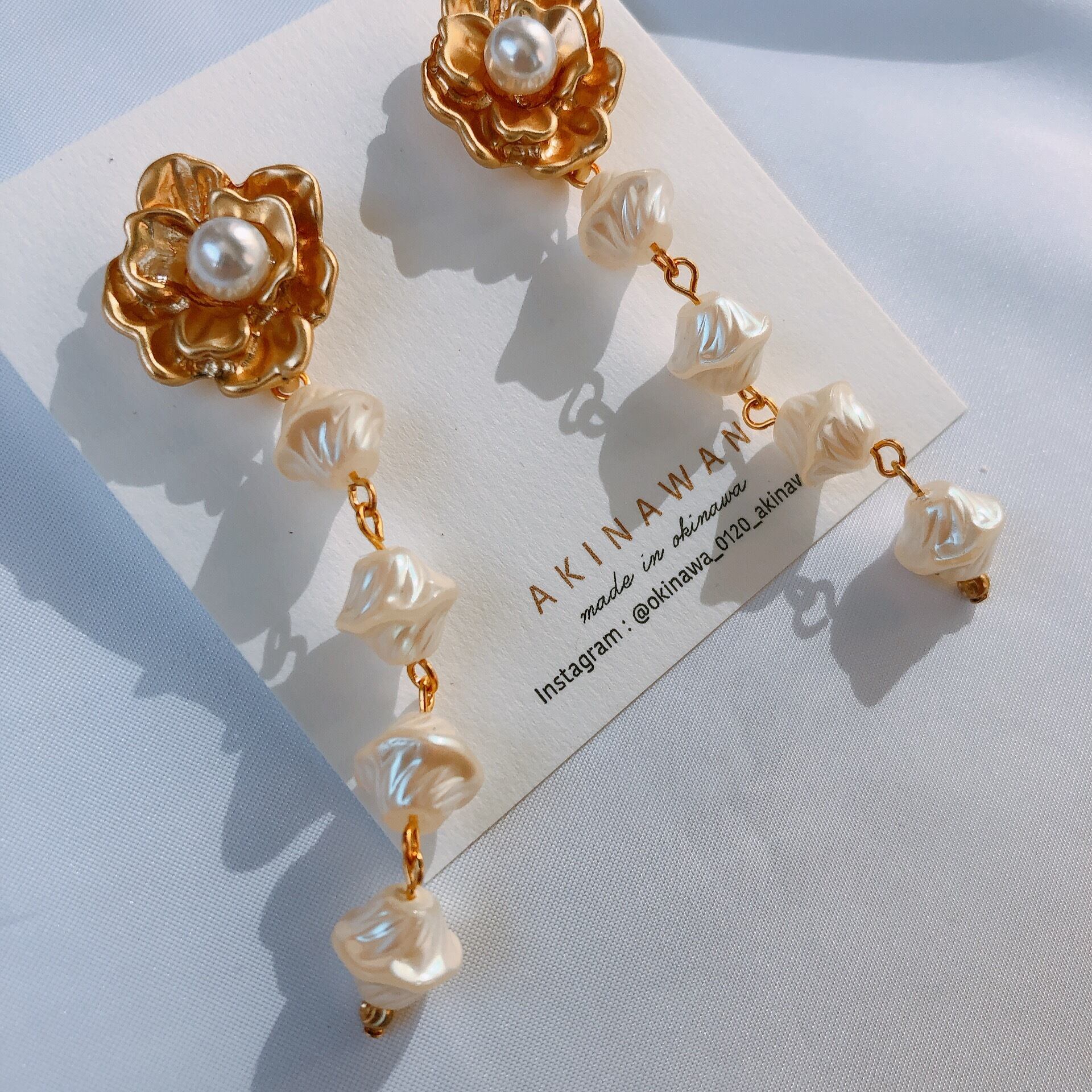 結婚式にも、花嫁さんにも、ウェディングをイメージして作ったピアスです♡