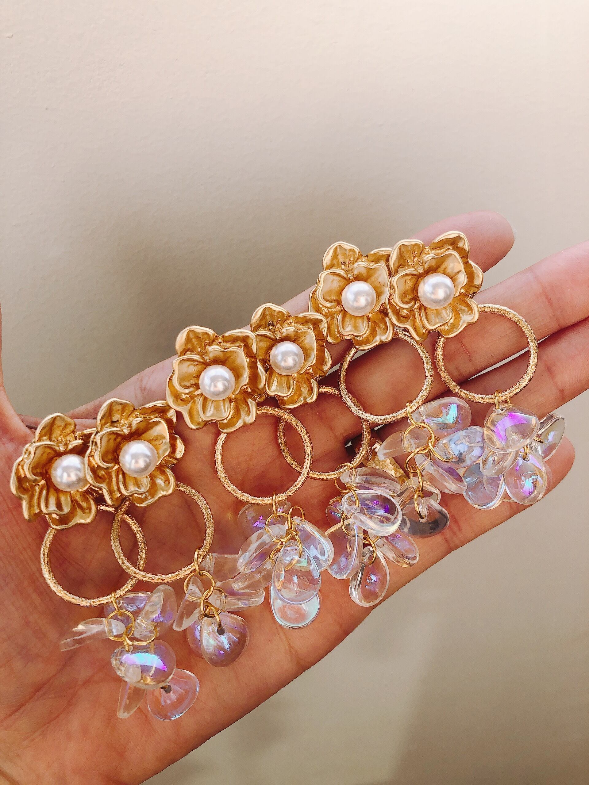 光具合でオーロラカラーの花びらの形をしたビーズがキラキラ煌めきます♡