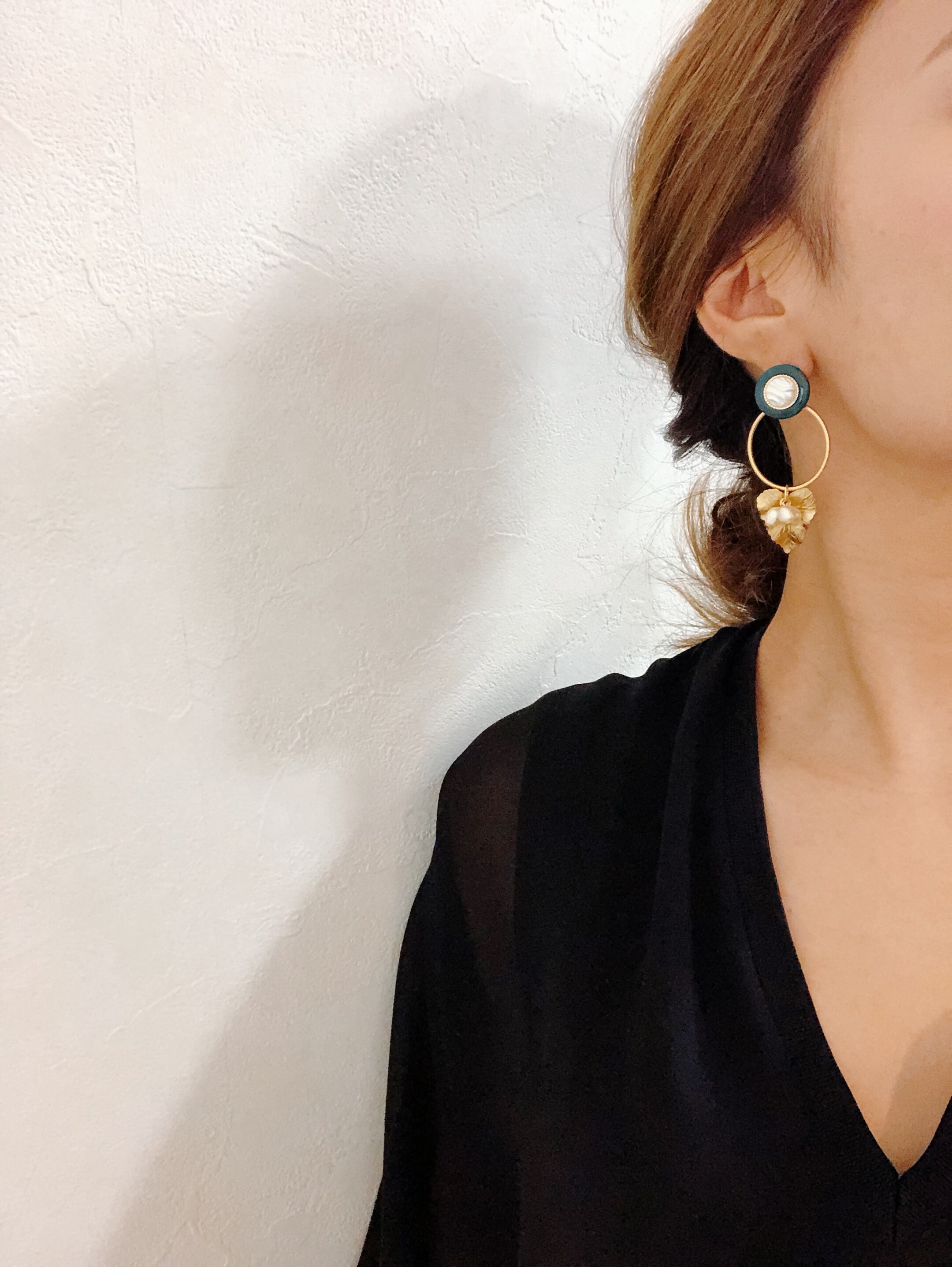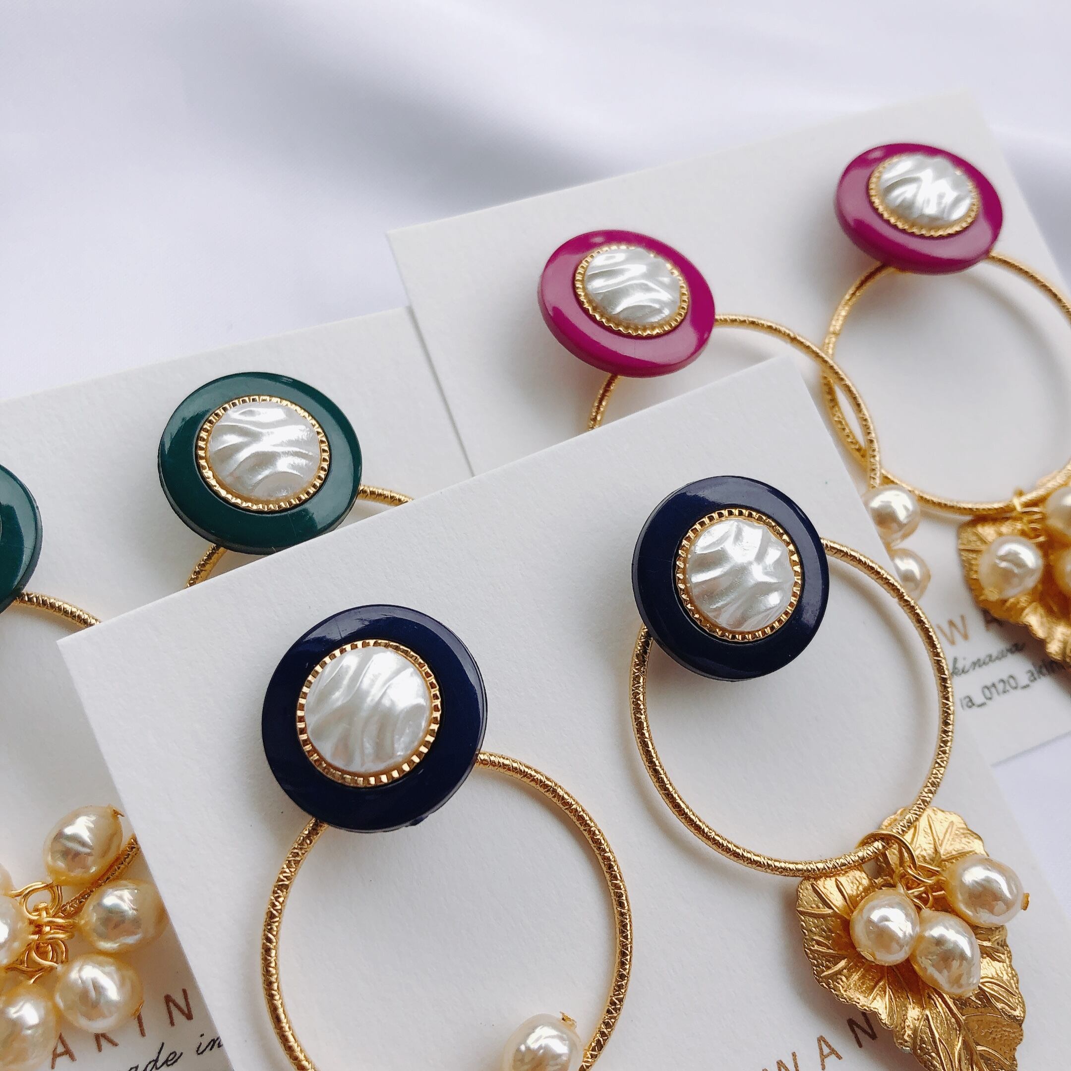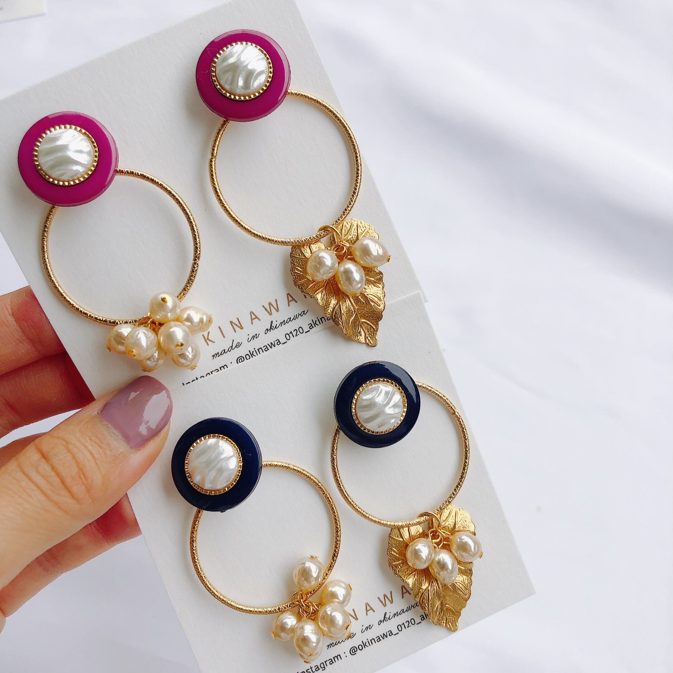 イギリスから届いたらボタンにヴィンテージ のガラスパール 、ブラスのリーフを
