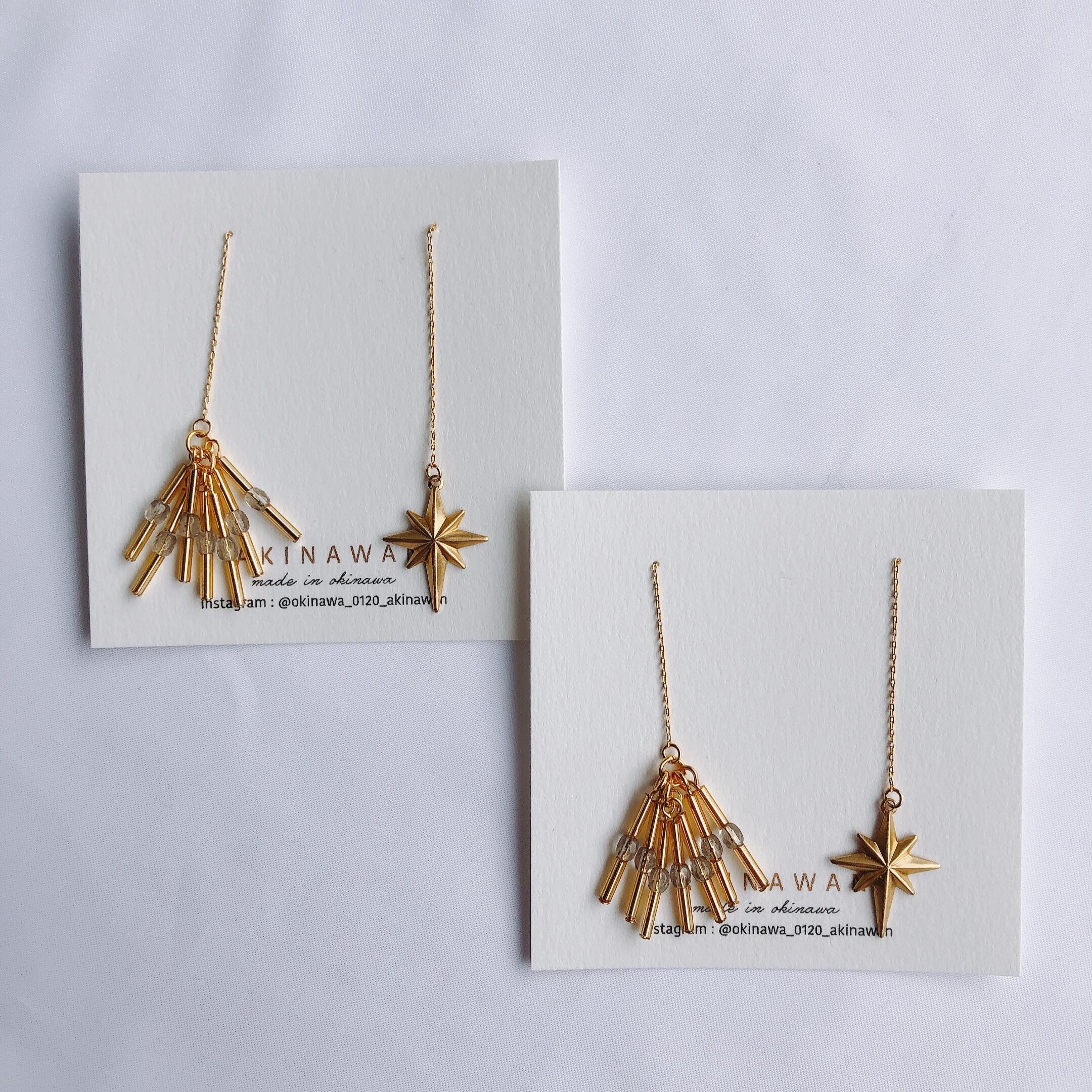 もう片方にはゴールド×クリアの小さなビーズを沢山付けました